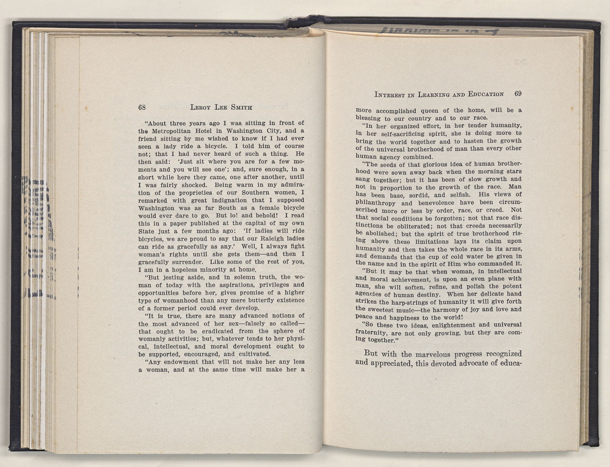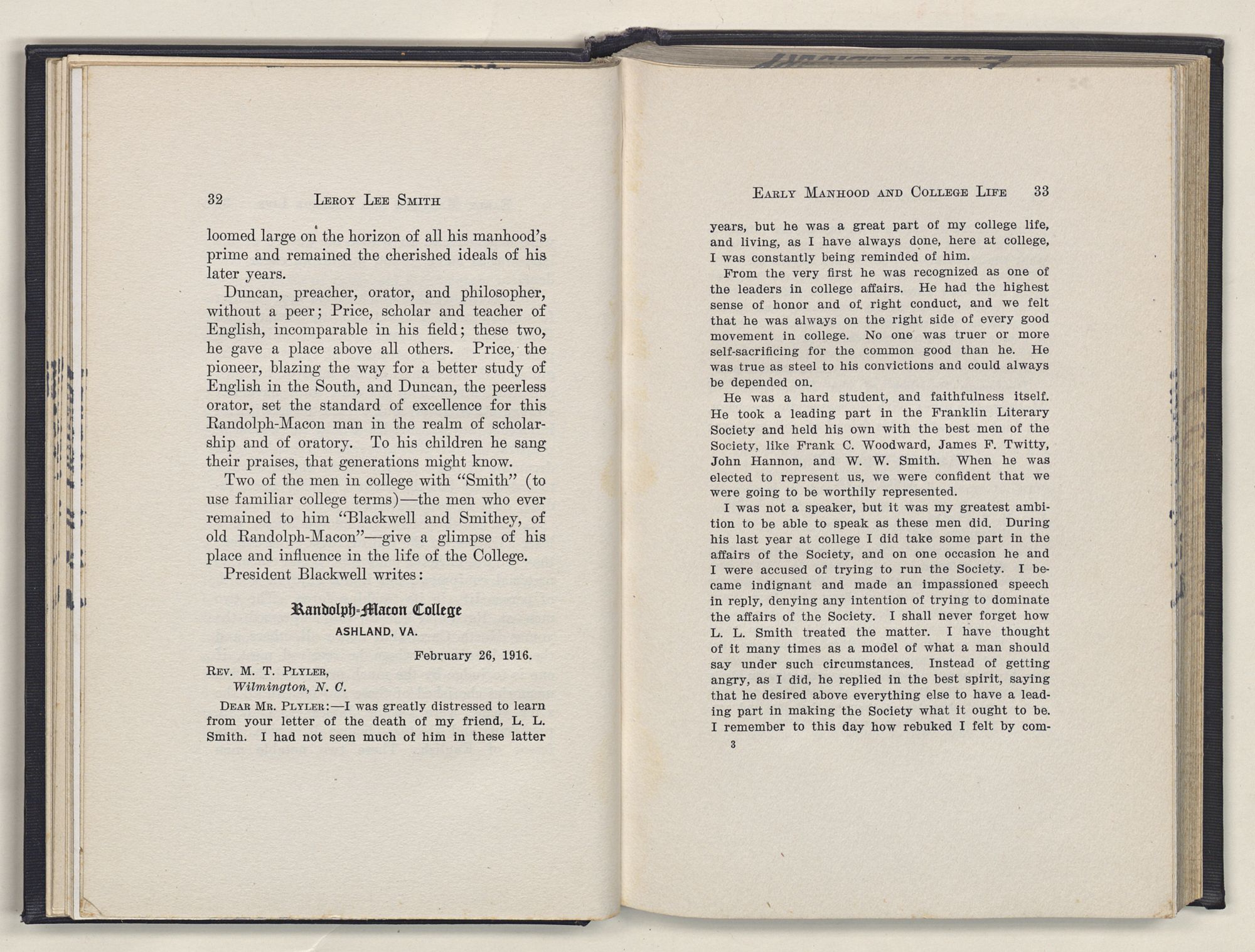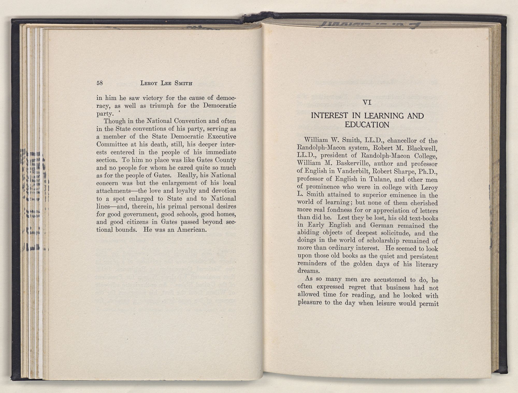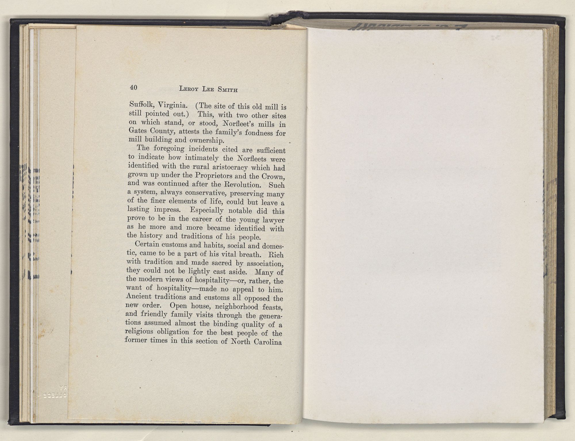 Leroy Lee Smith was born February 8, 1847, on a farm six miles from Gatesville, North Carolina, and twelve miles from Somerton, Virginia. Neither of these places ever gained importance commercially, but they assumed large proportions in the life of the boy and later of the man. Gatesville went back to the times of the Revolution, getting its name from General Gates, before his star had waned, and Somerton began with the early settlements of Virginia. About these community centers in the midst of a large rural section clustered the life of his people. The traditions of his family gathered around Somerton, and his later life centered at Gatesville. The one recalled the past; the other filled full the present.
