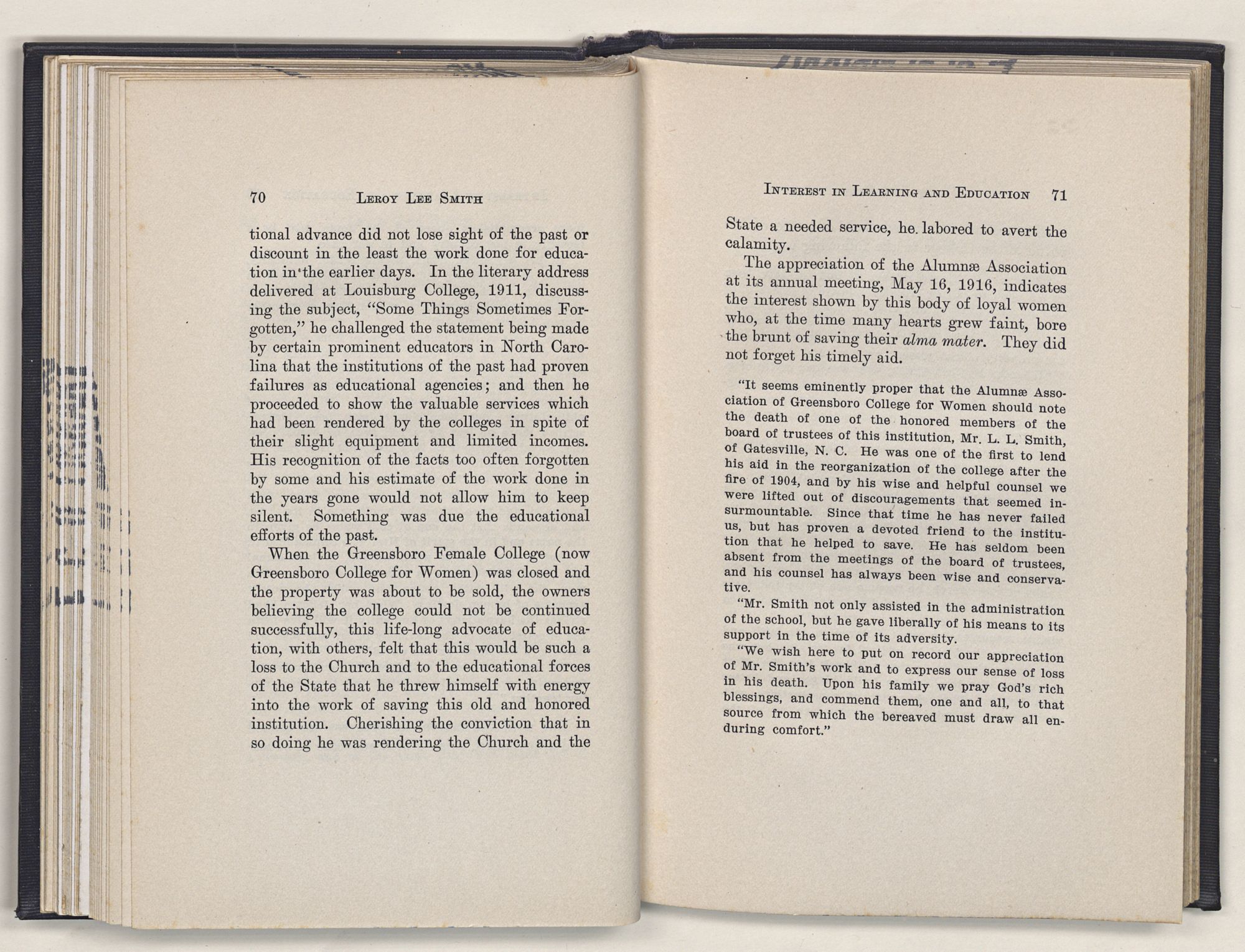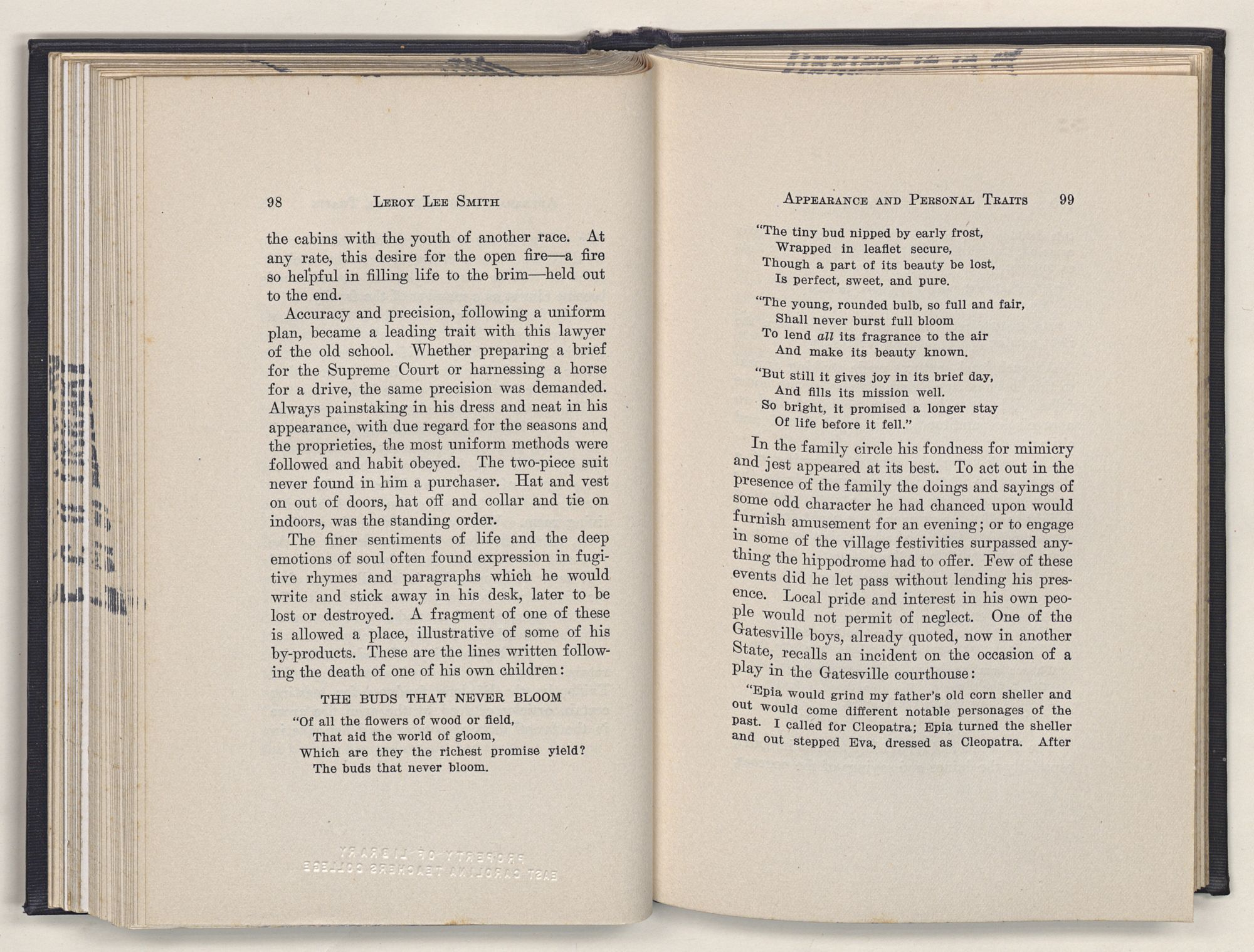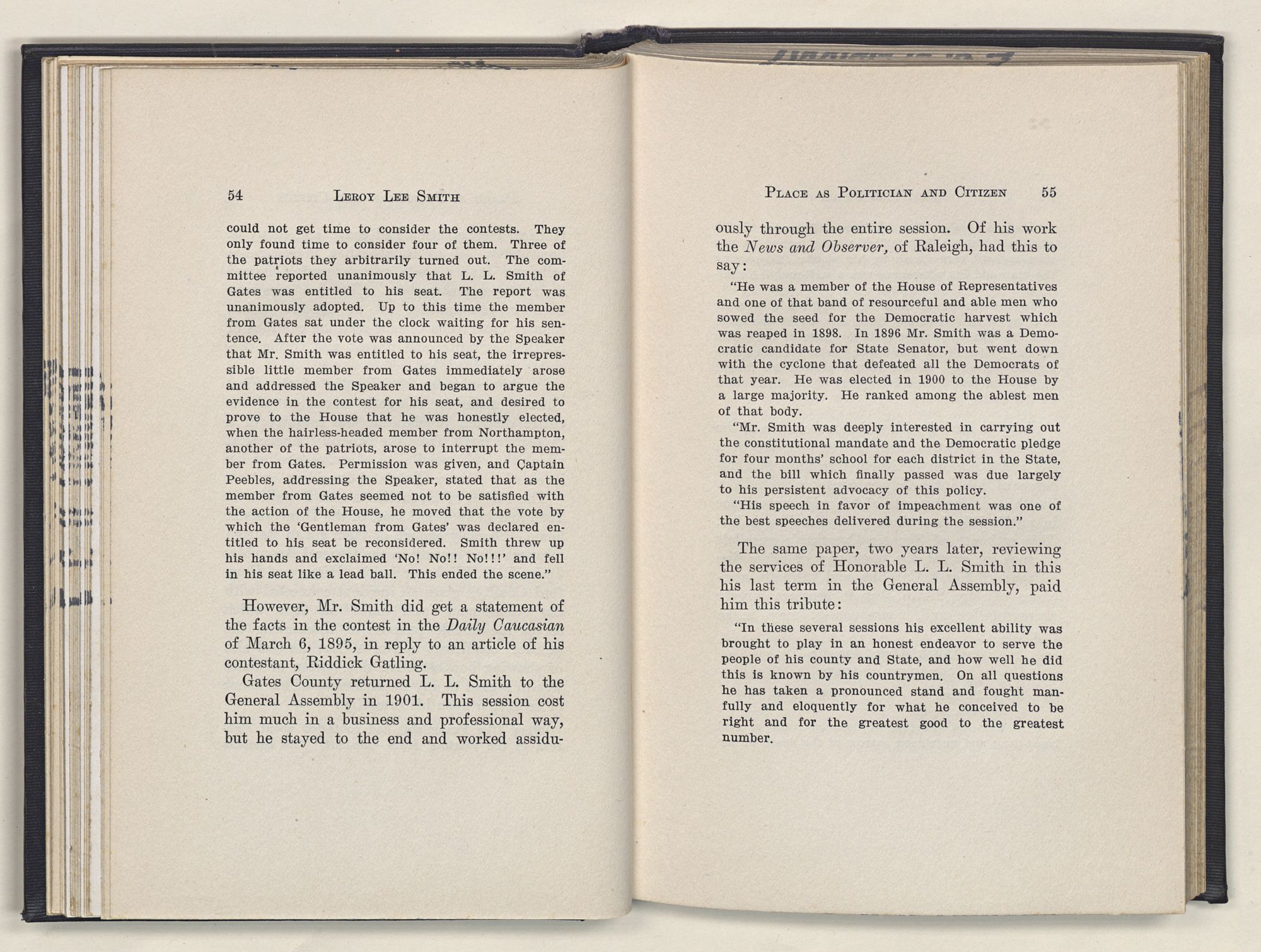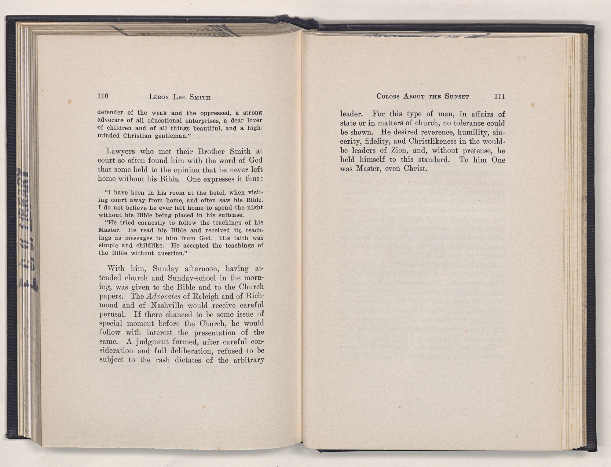 Leroy Lee Smith was so genuinely a product of his people and his times, and lived so intimately with the traditions of the past and the spirit of the present, that all these must be reckoned with in any estimate of his life.