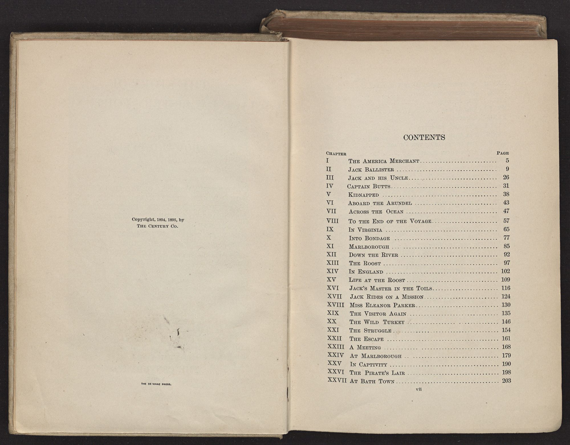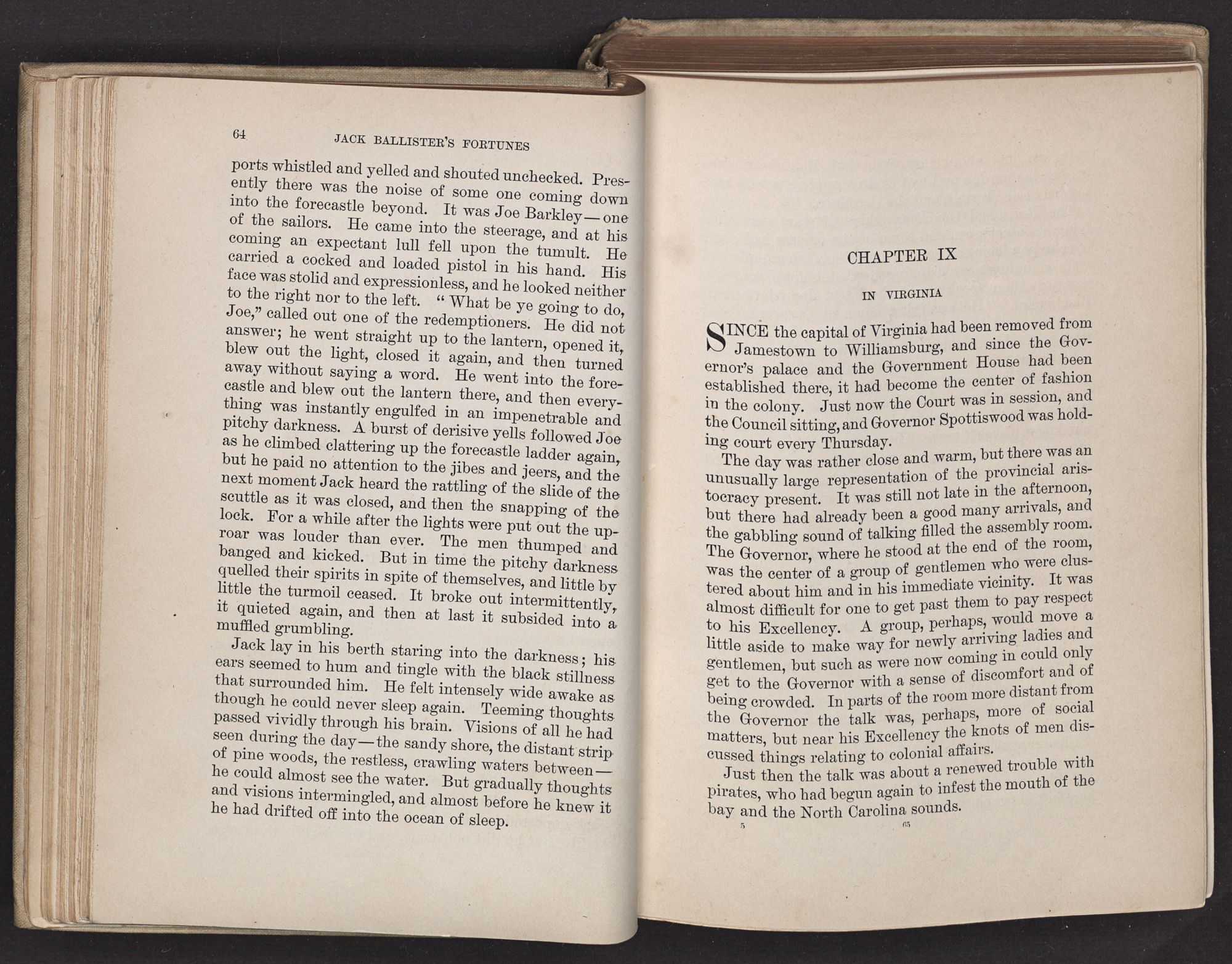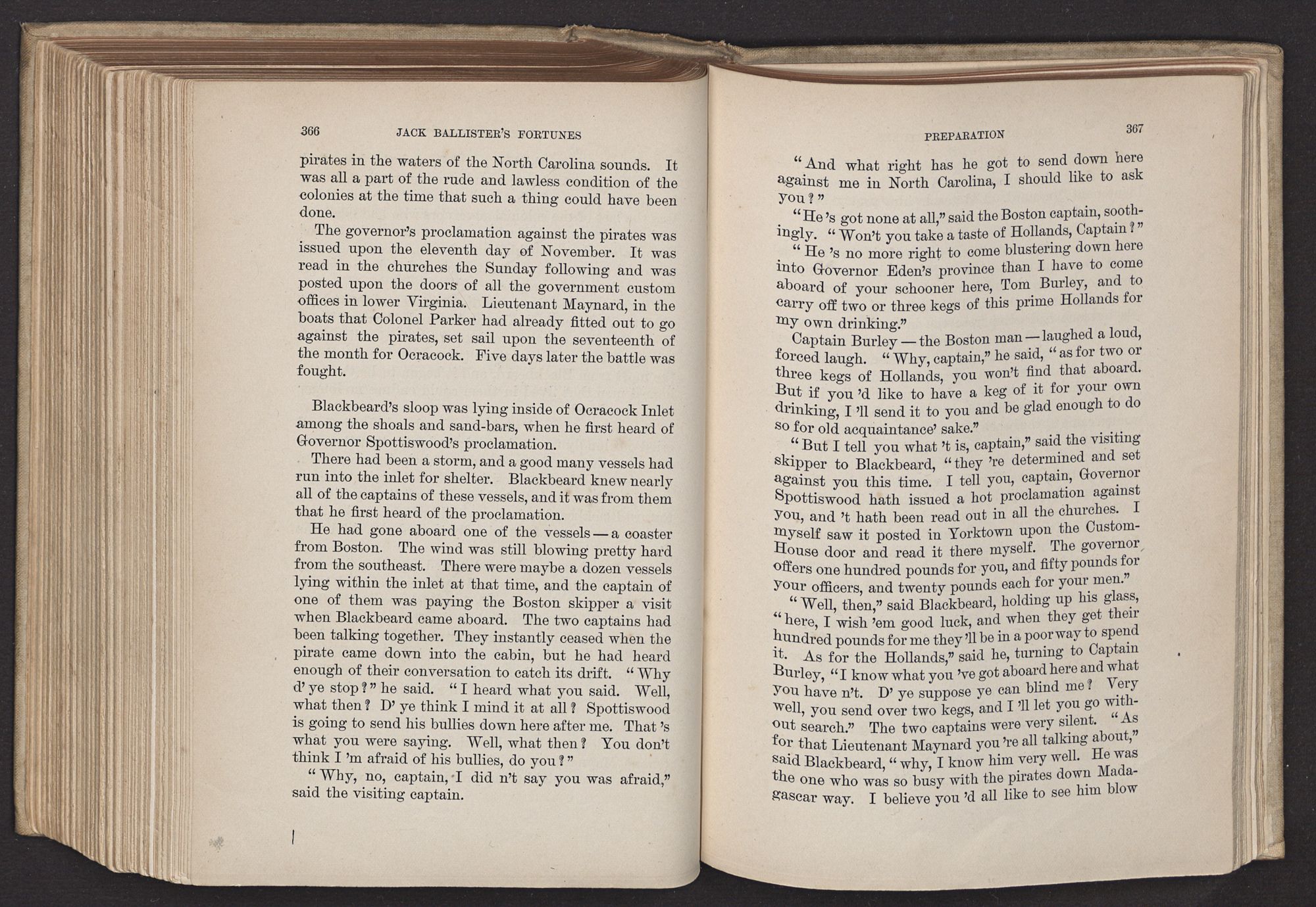 THE STORY OFJACK BALLISTER'S FORTUNESBYHOWARD PYLE BEING THE NARRATIVE OF THE ADVENTURES OF A YOUNG GENTLEMAN OF GOOD FAMILY, WHO WAS KIDNAPPED IN THE YEAR 1719 AND CARRIED TO THE PLANTATIONS OF THE CONTINENT OF VIRGINIA, WHERE HE FELL IN WITH THAT FAMOUS PIRATE CAPTAIN EDWARD TEACH, OR BLACKBEARD: OF HIS ESCAPE FROM THE PIRATES AND THE RESCUE OF A YOUNG LADY FROM OUT THEIR HANDS