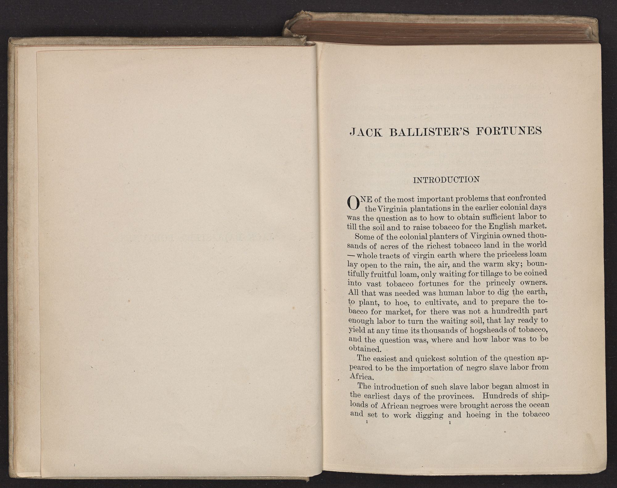 Some of the colonial planters of Virginia owned thousands of acres of the richest tobacco land in the world — whole tracts of virgin earth where the priceless loam lay open to the rain, the air, and the warm sky; bountifully fruitful loam, only waiting for tillage to be coined into vast tobacco fortunes for the princely owners. All that was needed was human labor to dig the earth, to plant, to hoe, to cultivate, and to prepare the tobacco for market, for there was not a hundredth part enough labor to turn the waiting soil, that lay ready to yield at any time its thousands of hogsheads of tobacco, and the question was, where and how labor was to be obtained.
