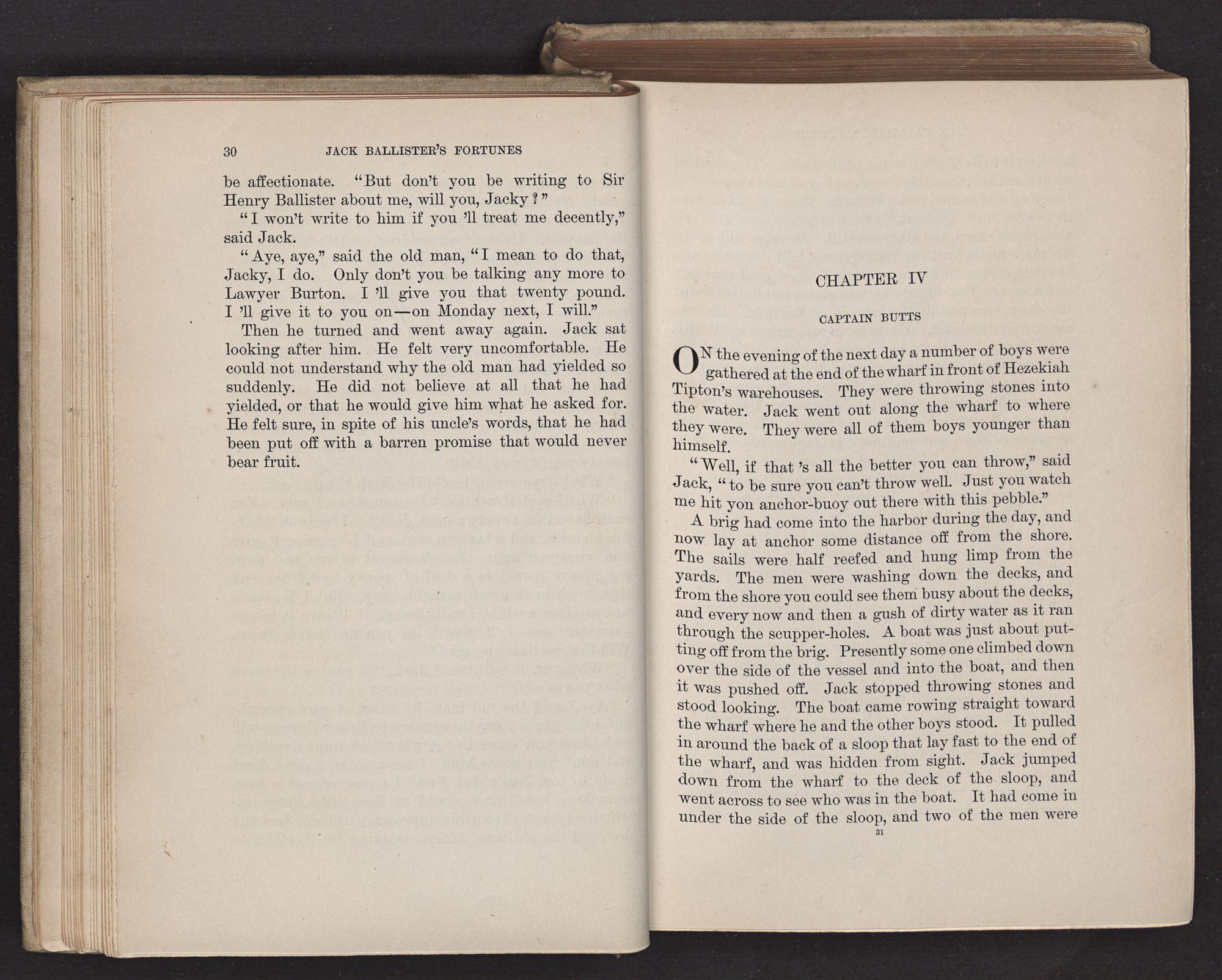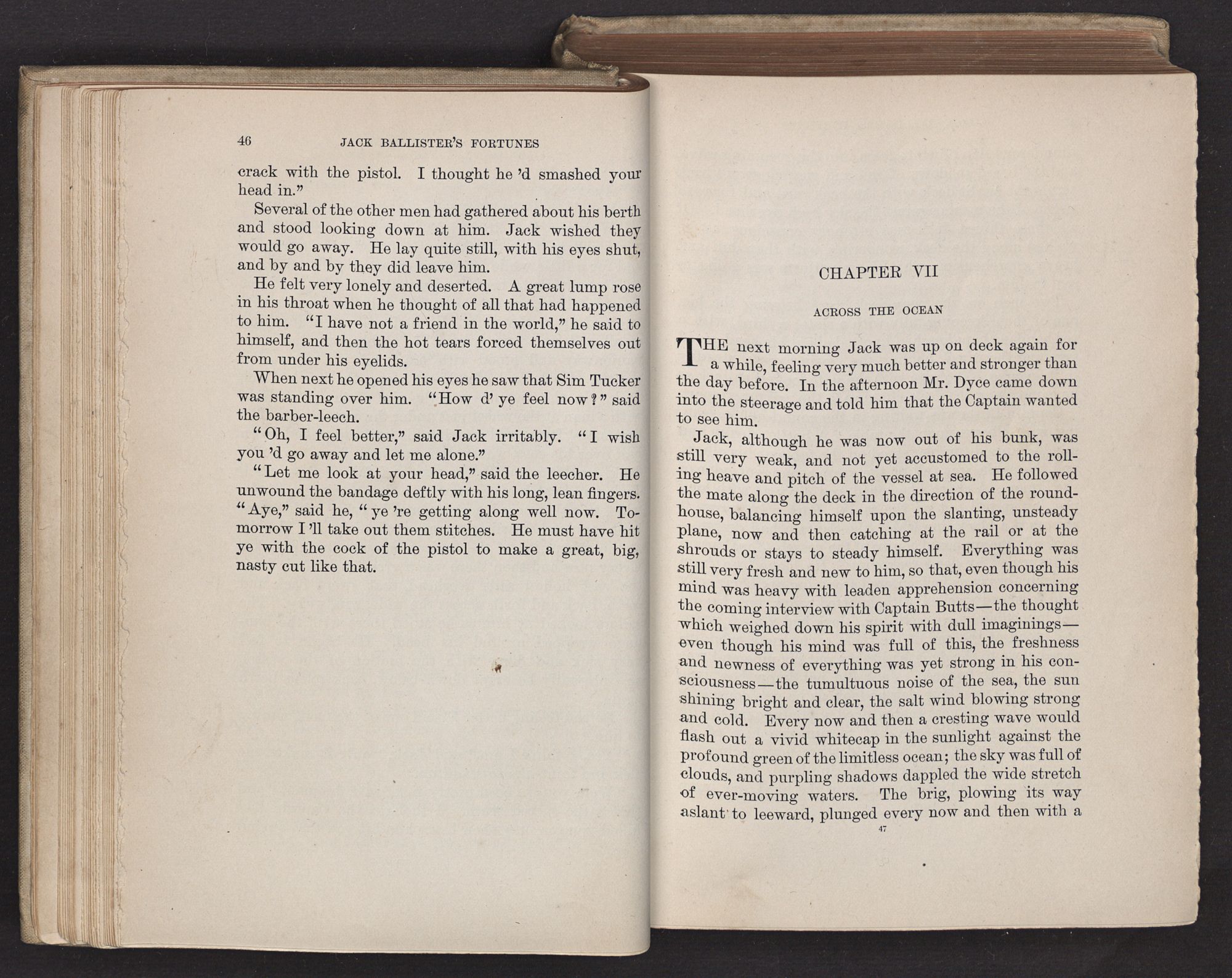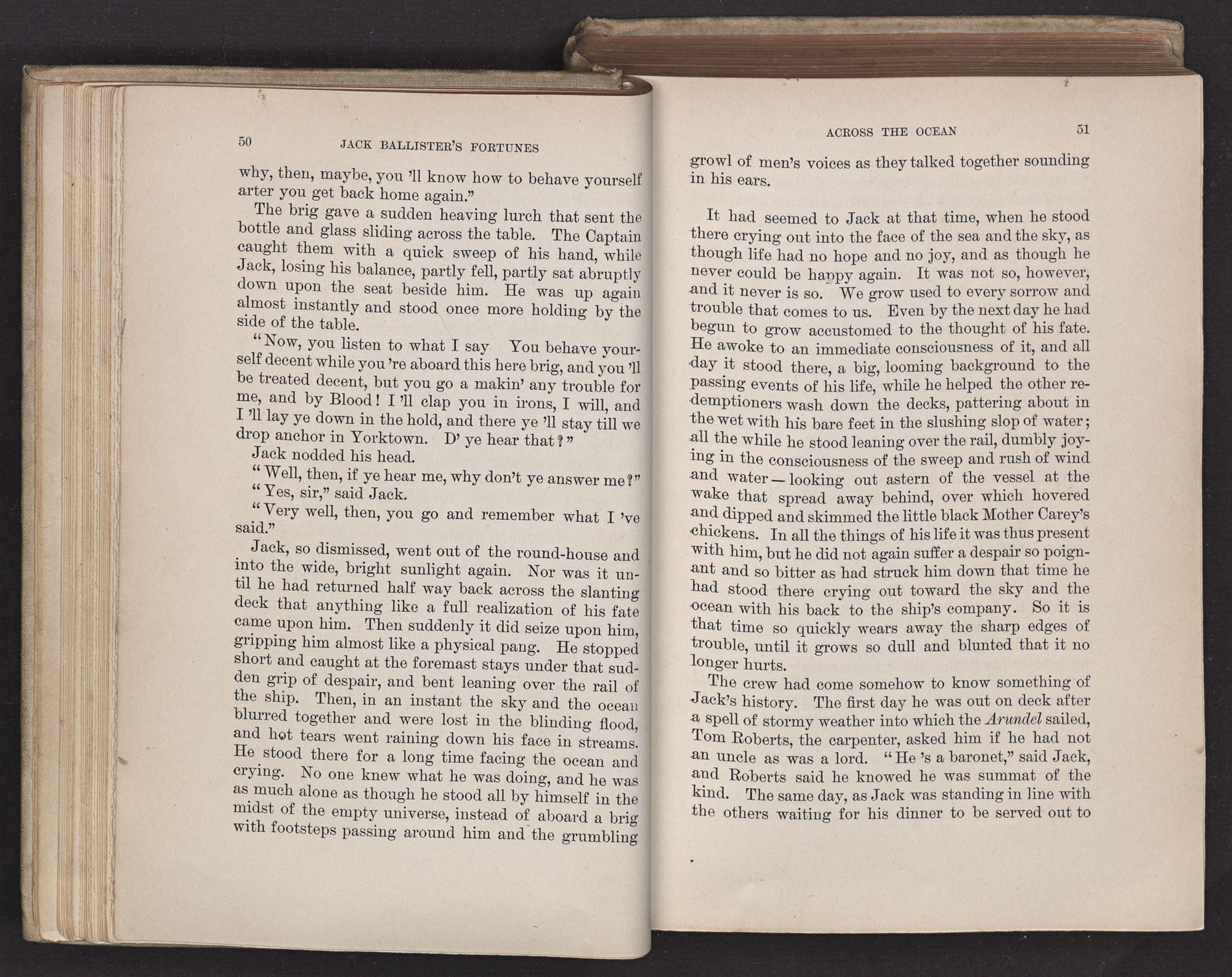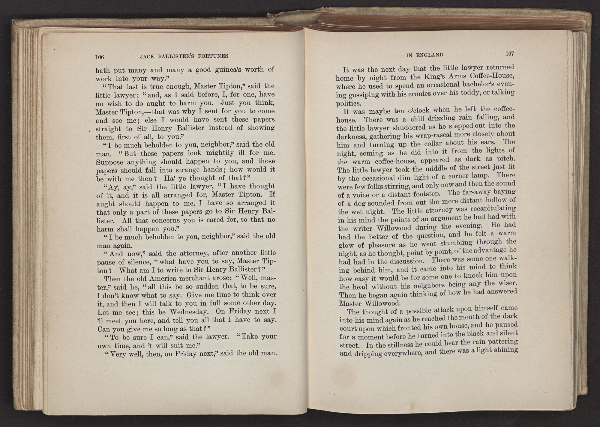 “Here's a letter to Captain Northam,” said Colonel Parker. “Give it to him as soon as you go aboard the “Richmond Castle,” and he will extend very particular care to you. It gives him full instruction as to all he is to do for you. When you get to Gravesend he will send you up as far as Broadstairs in a wherry, and there you shall get a hackney coach to take you to my agent at Snow Hill. Here is a letter to him and a packet — Ebenezer Bilton, Esquire. This packet of letters you shall use while you are in London as you need them. You will see by the addresses who they are for. Here is this large packet to give to your uncle. You had better put these larger packets into your chests, but carry the captain's letter in your pocket-book, so you may give it to him as soon as you get aboard.”