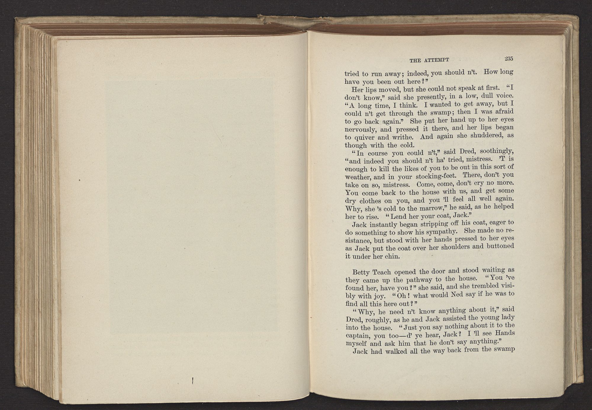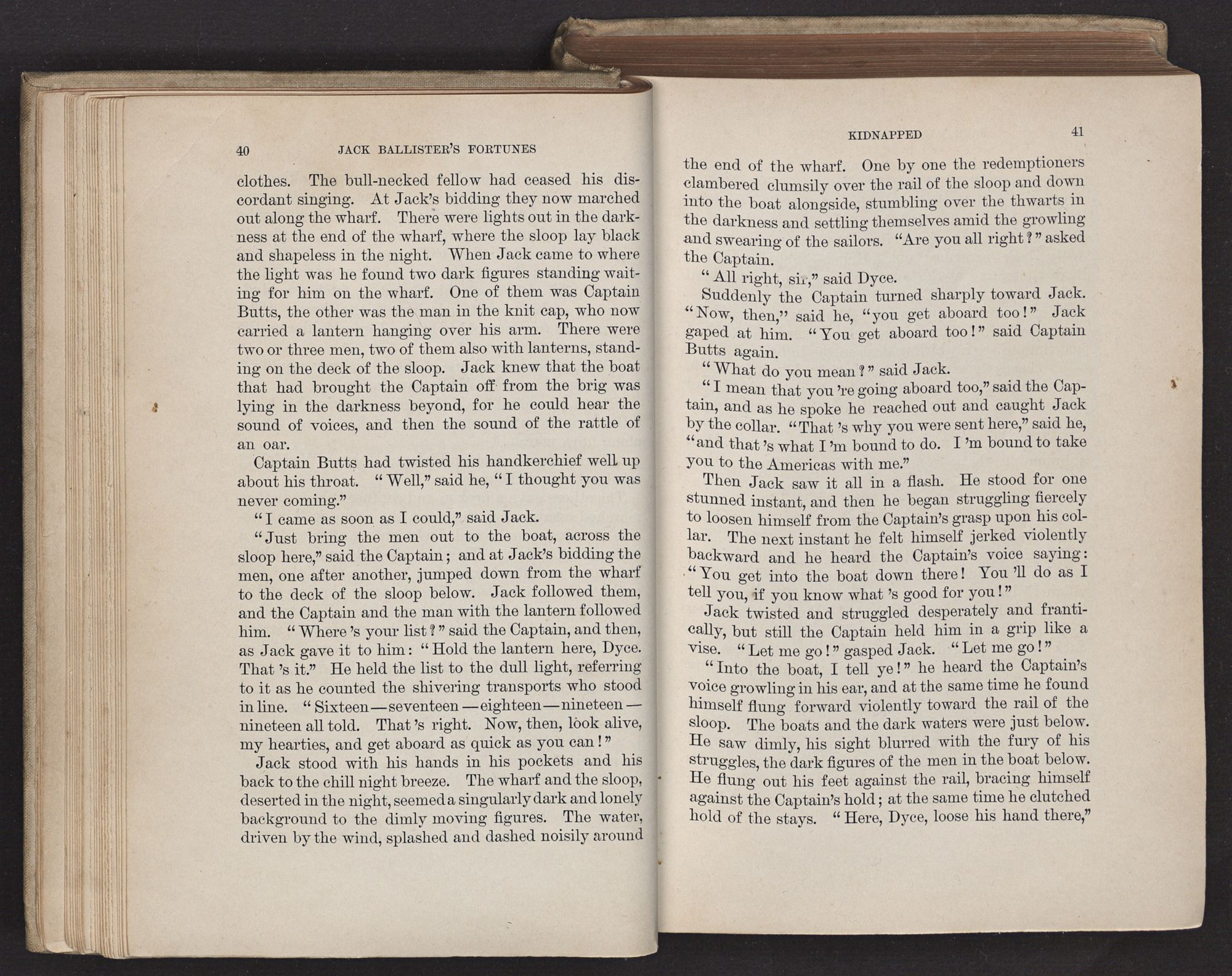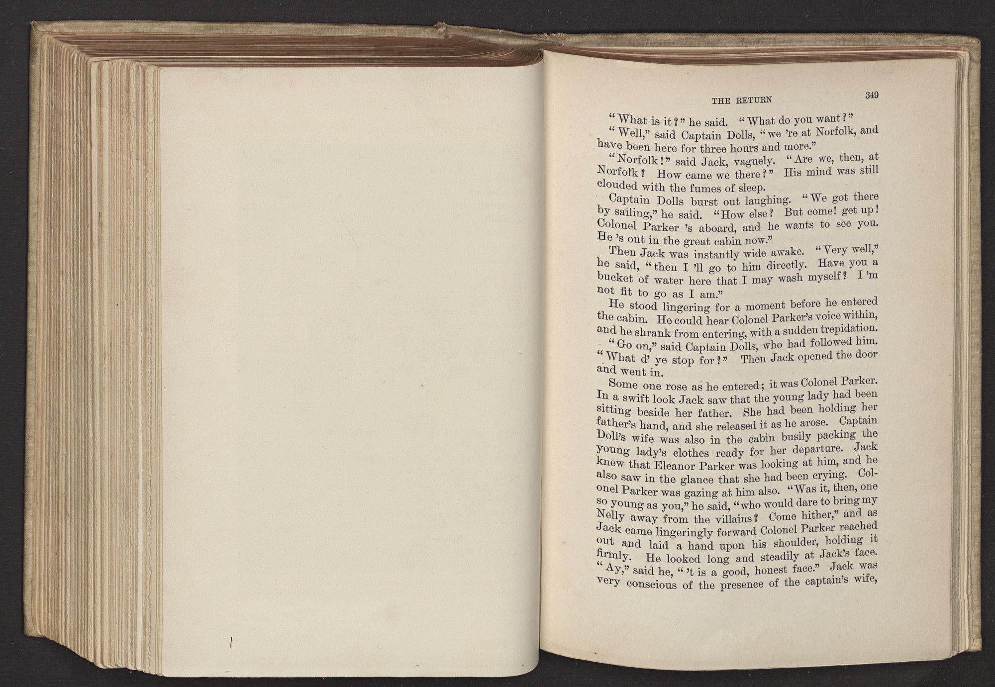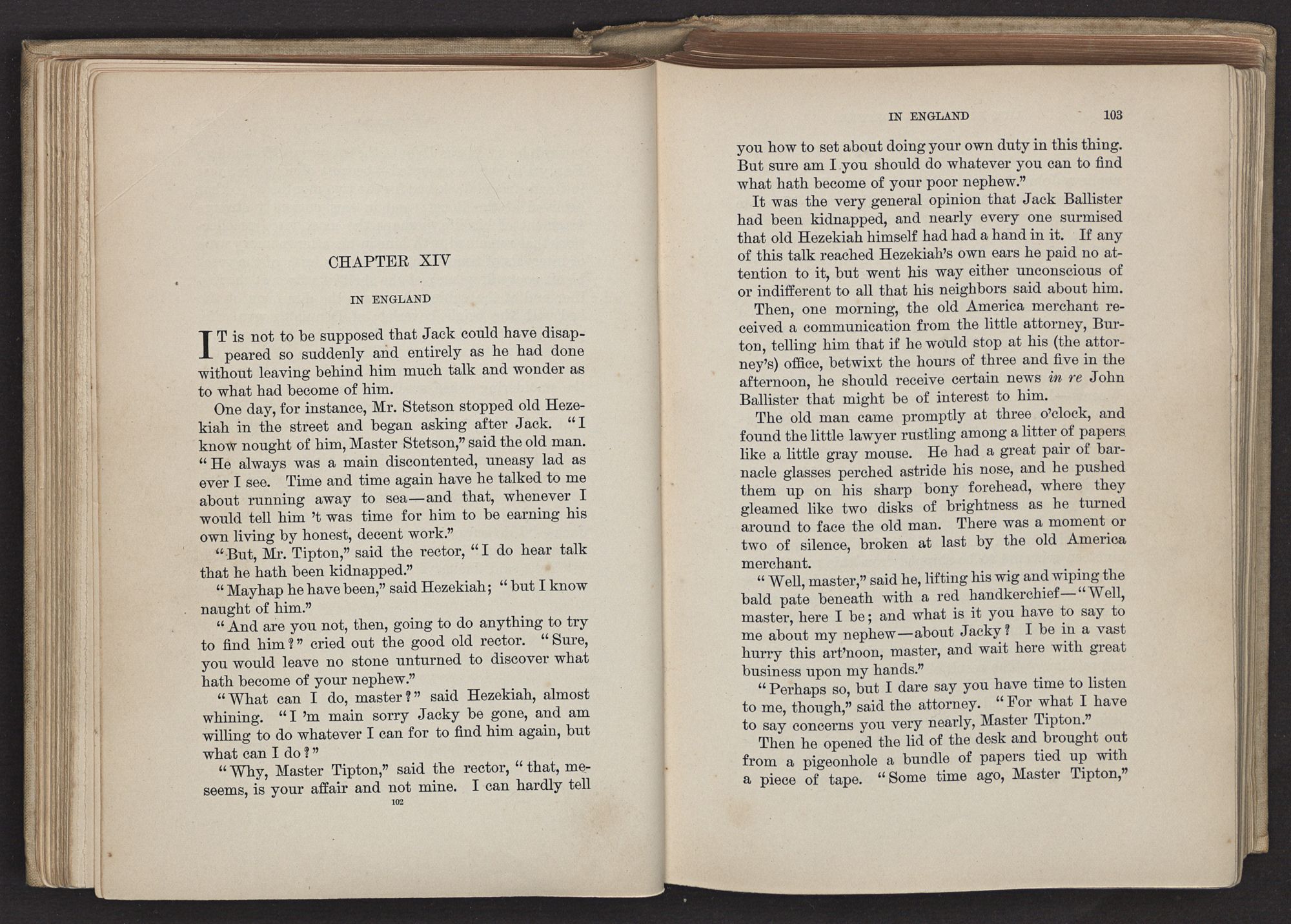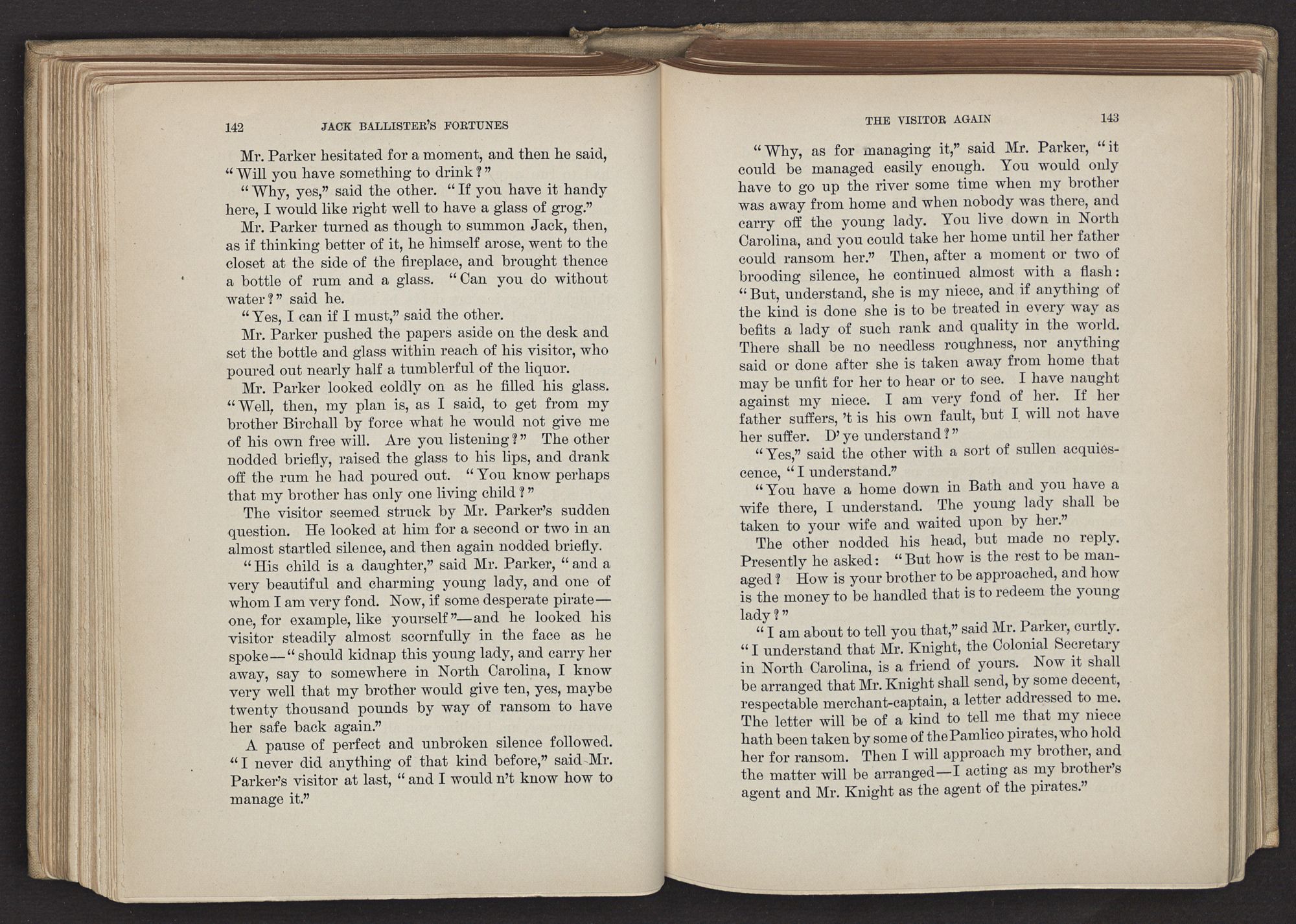 “I heard Blackbeard say over and over again that it was Mr. Parker had planned how she should be taken, and that he was to get you to pay for bringing her back again. Mr. Knight the secretary writ three or four letters, too, and sent ’em to Mr. Parker, and ’t was said that Mr. Parker was to show the letters to you. But no answer could be got to any of them. Then, by and by, they all began to think that maybe he—Mr. Parker, that is—intended that she should n't come back again at all.”