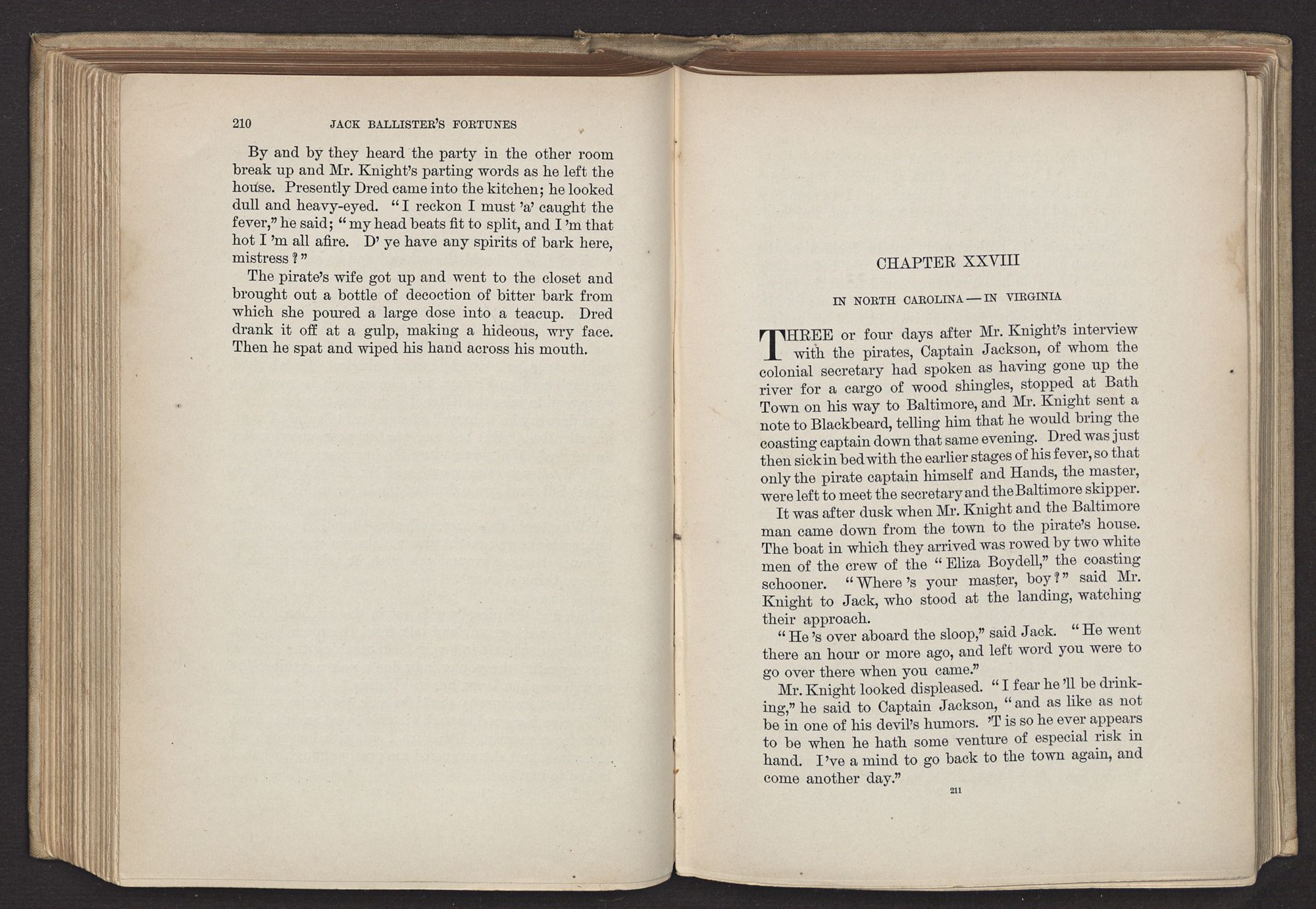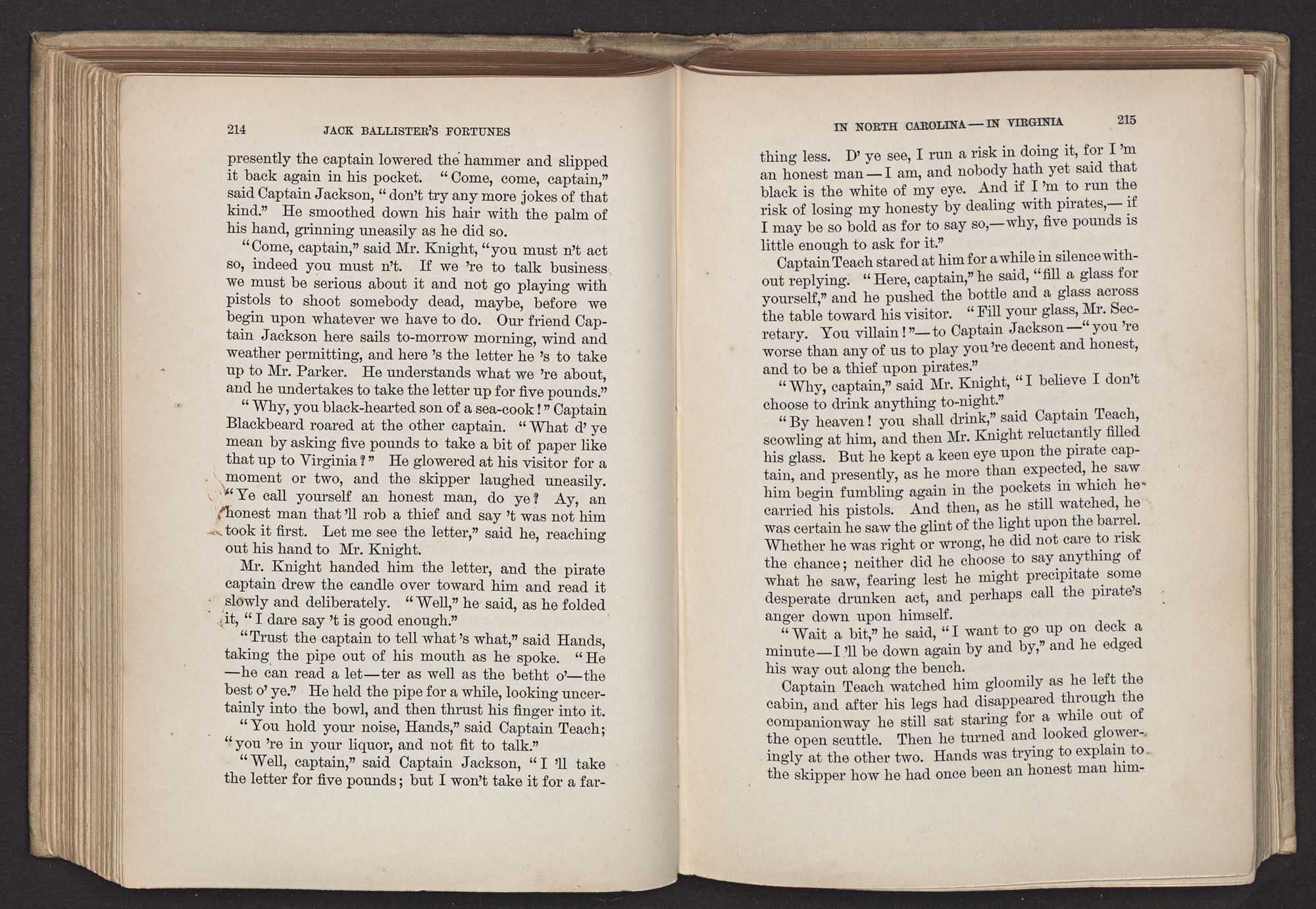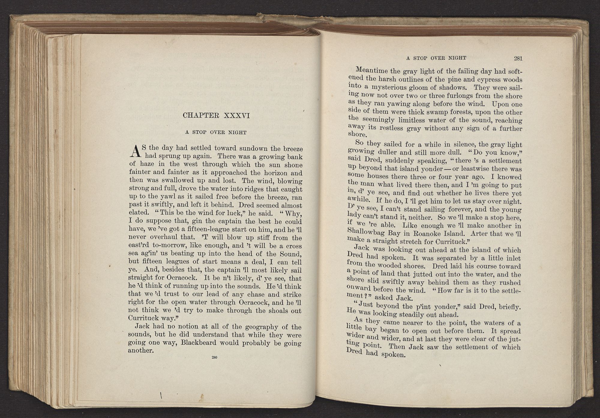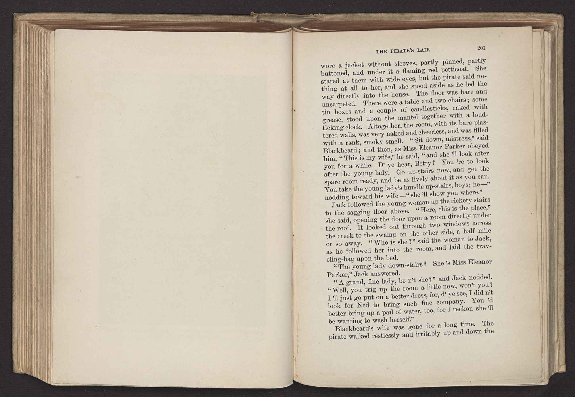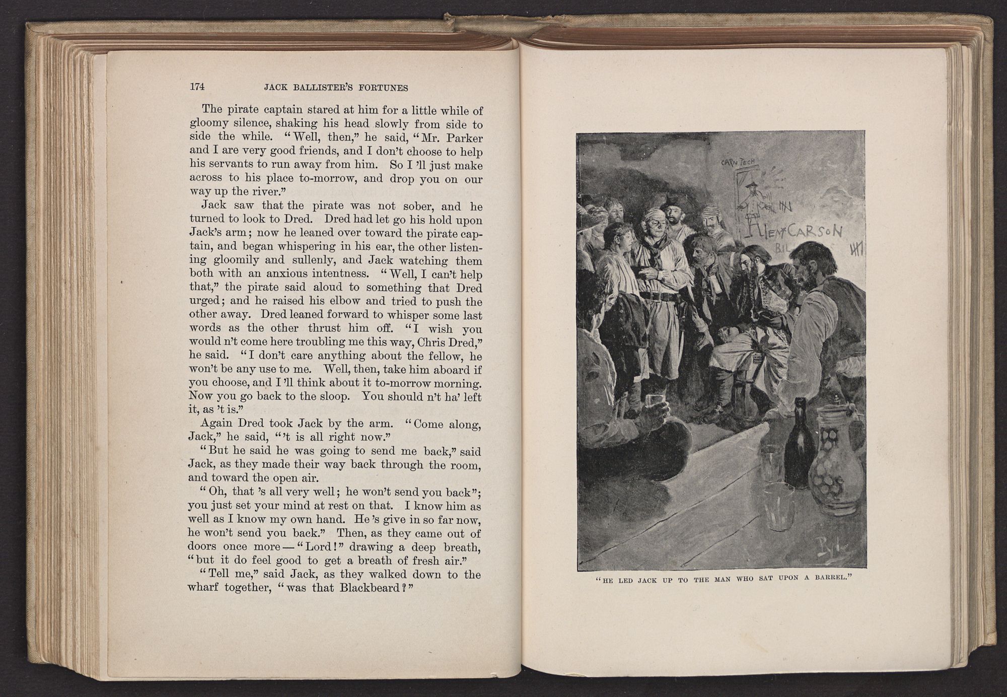 “Well,” said Jack, “’t was said down there at Bath Town,—that is, by those who came to see the pirate at his house,—’t was said that—that Mr. Richard Parker knew about Miss Nelly's having been taken away. I don't know anything about it myself, but that was what they all said. I know that Blackbeard writ three or four letters to Mr. Parker while the young lady was there, and I heard them say again and again that Mr. Parker knew that she had been taken away from home and whither she had been taken, and that he was concerned in it.”