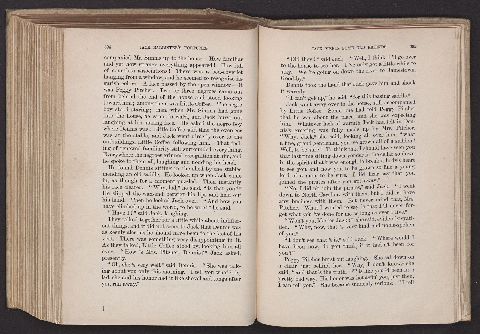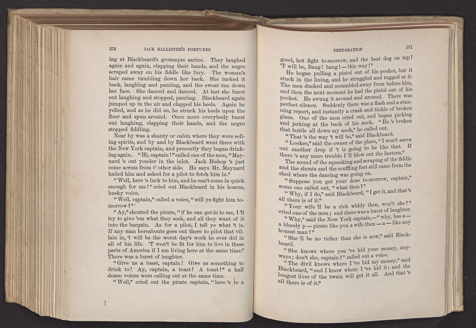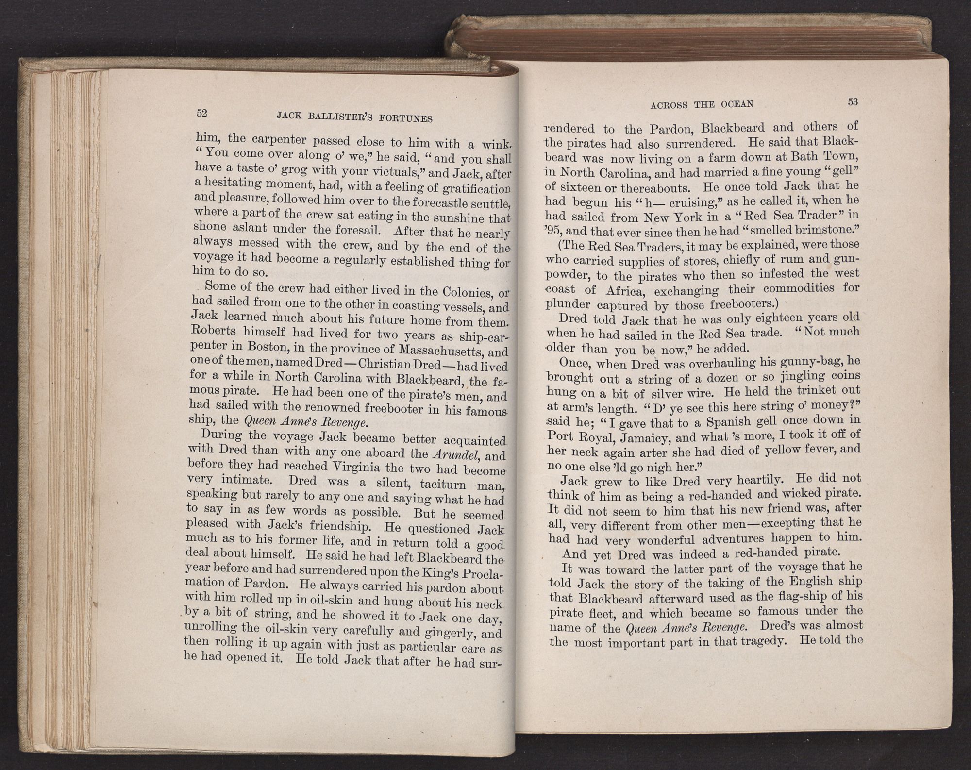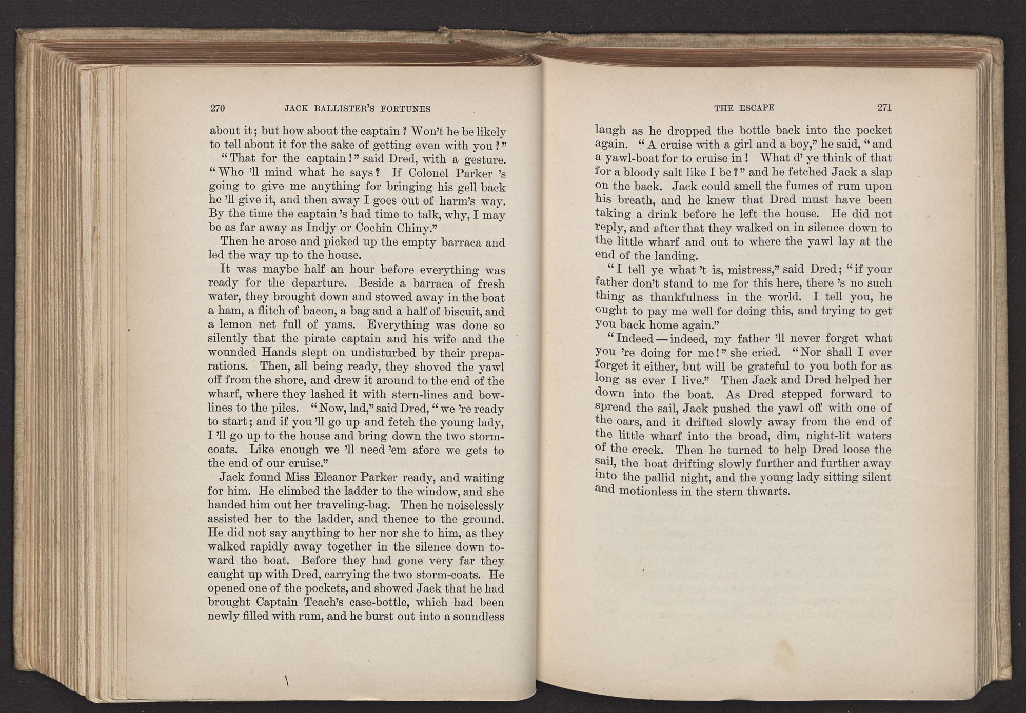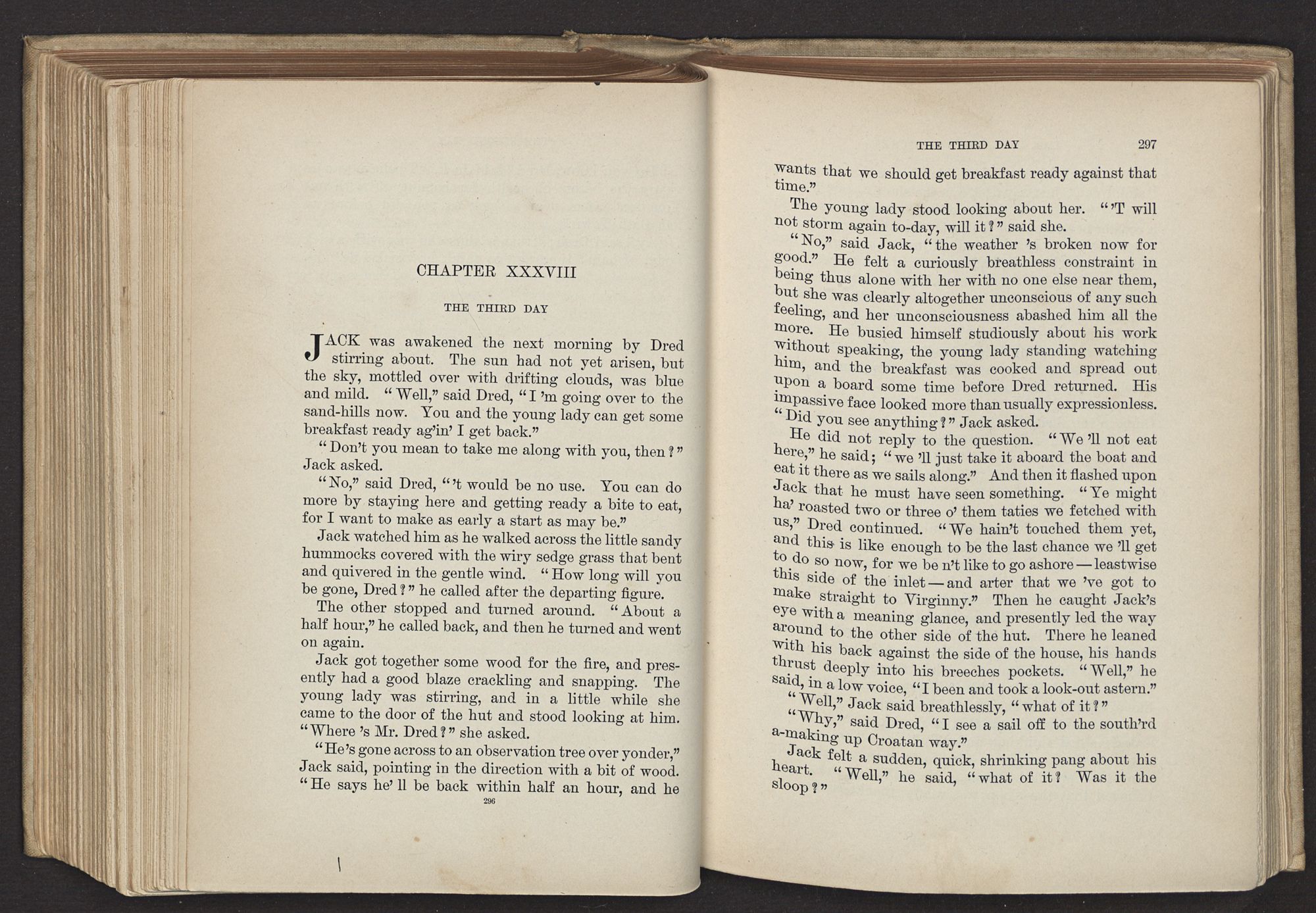 “Well,” said Jack, “’t was said down there at Bath Town,—that is, by those who came to see the pirate at his house,—’t was said that—that Mr. Richard Parker knew about Miss Nelly's having been taken away. I don't know anything about it myself, but that was what they all said. I know that Blackbeard writ three or four letters to Mr. Parker while the young lady was there, and I heard them say again and again that Mr. Parker knew that she had been taken away from home and whither she had been taken, and that he was concerned in it.”