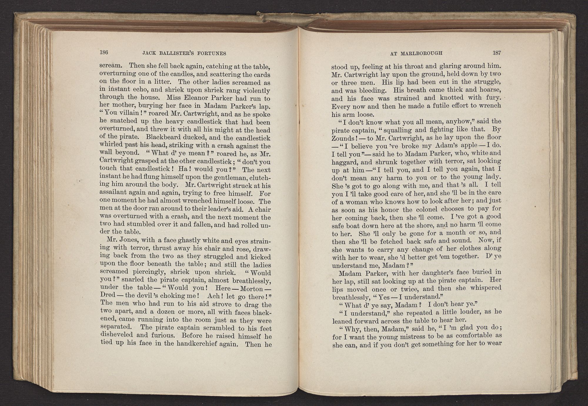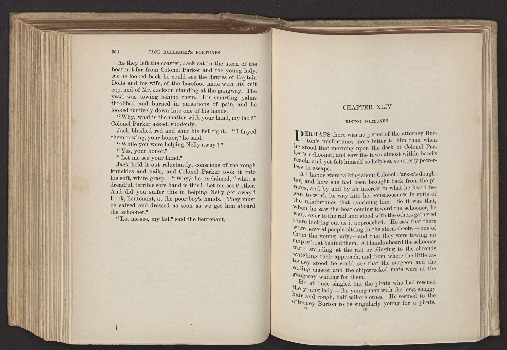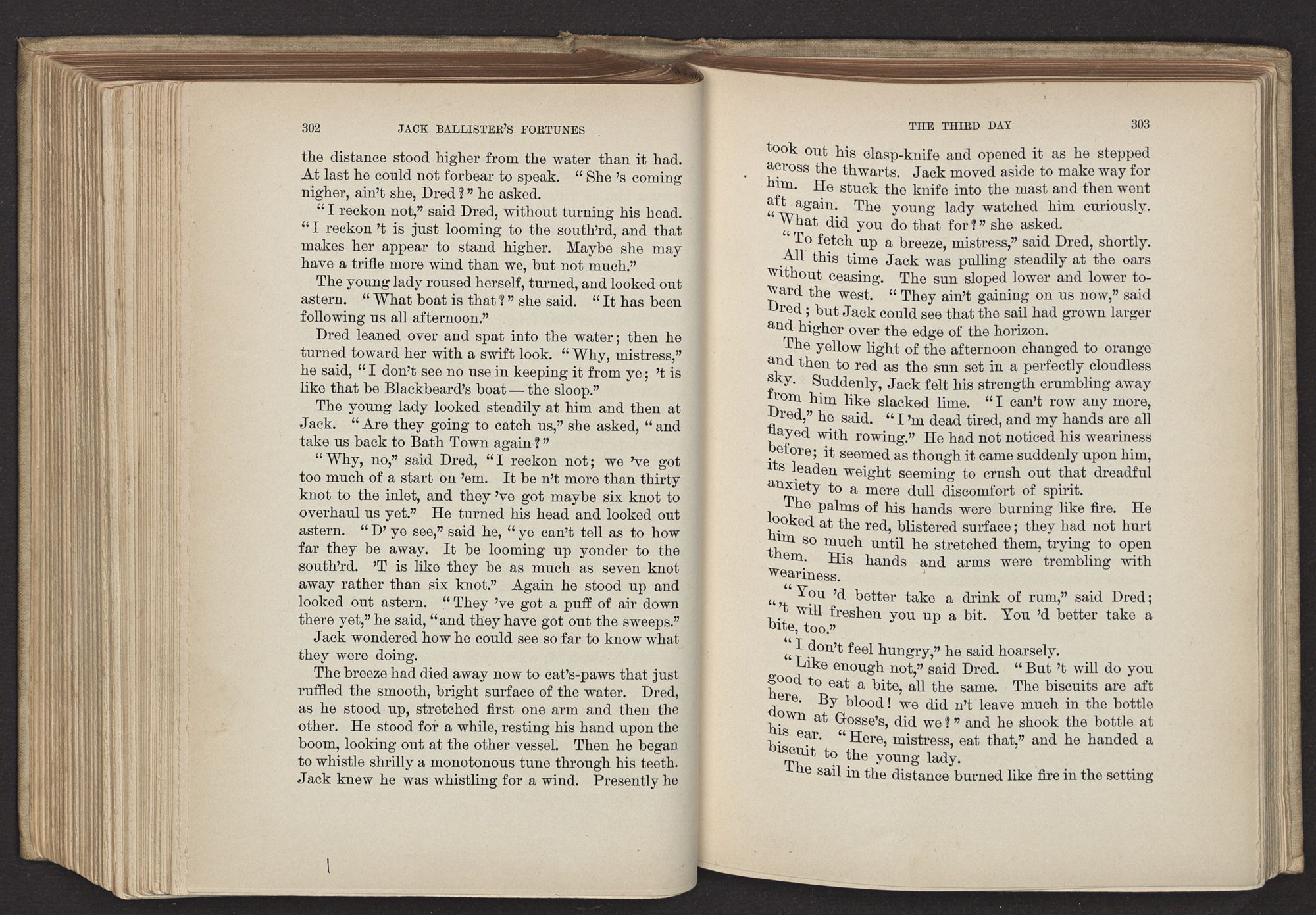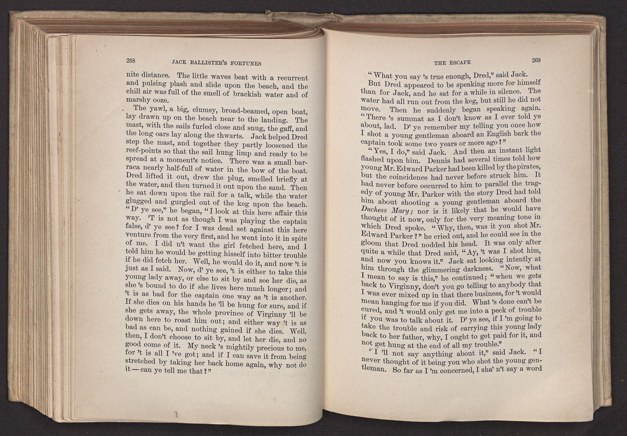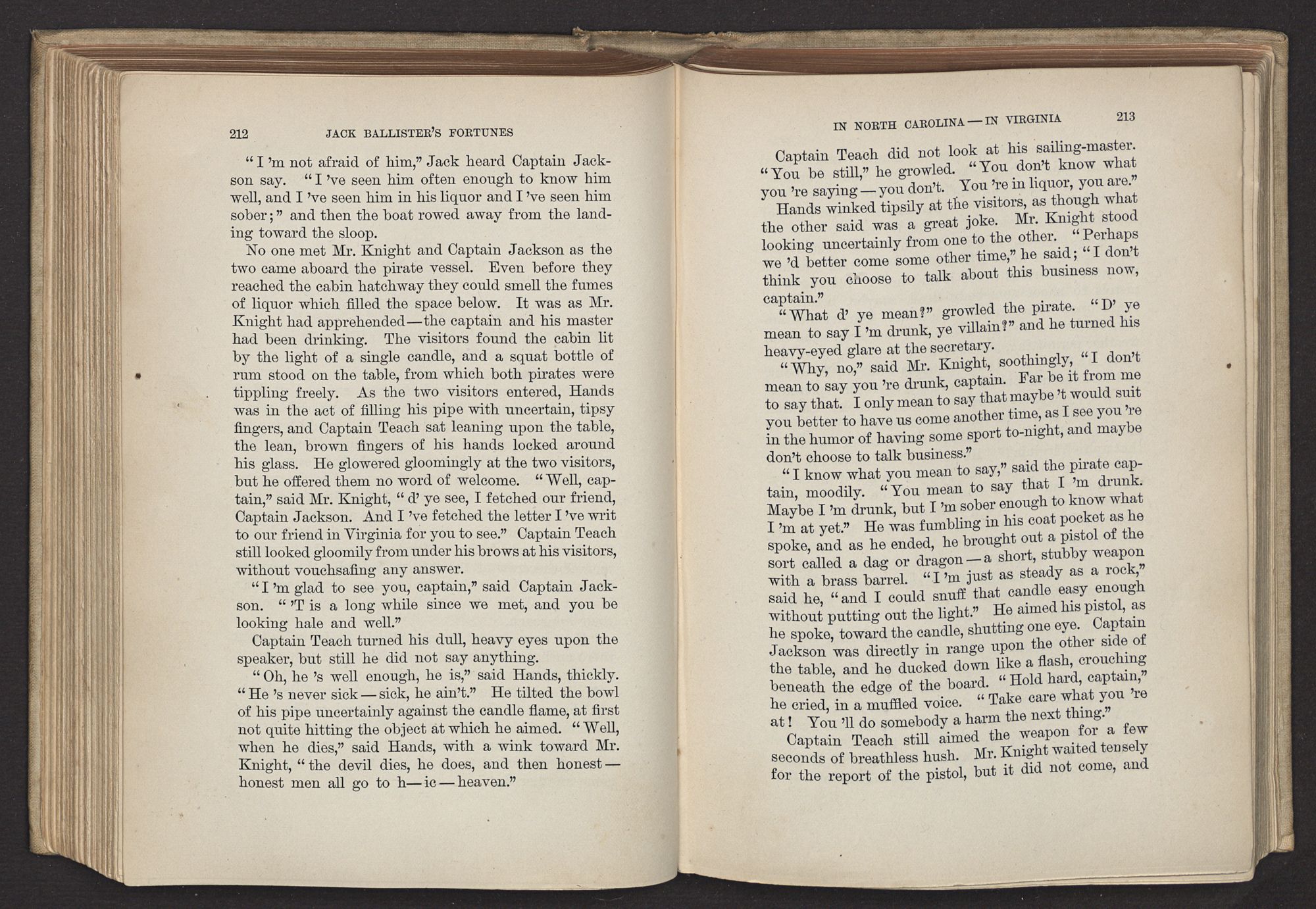 “Well,” said Jack, “’t was said down there at Bath Town,—that is, by those who came to see the pirate at his house,—’t was said that—that Mr. Richard Parker knew about Miss Nelly's having been taken away. I don't know anything about it myself, but that was what they all said. I know that Blackbeard writ three or four letters to Mr. Parker while the young lady was there, and I heard them say again and again that Mr. Parker knew that she had been taken away from home and whither she had been taken, and that he was concerned in it.”
