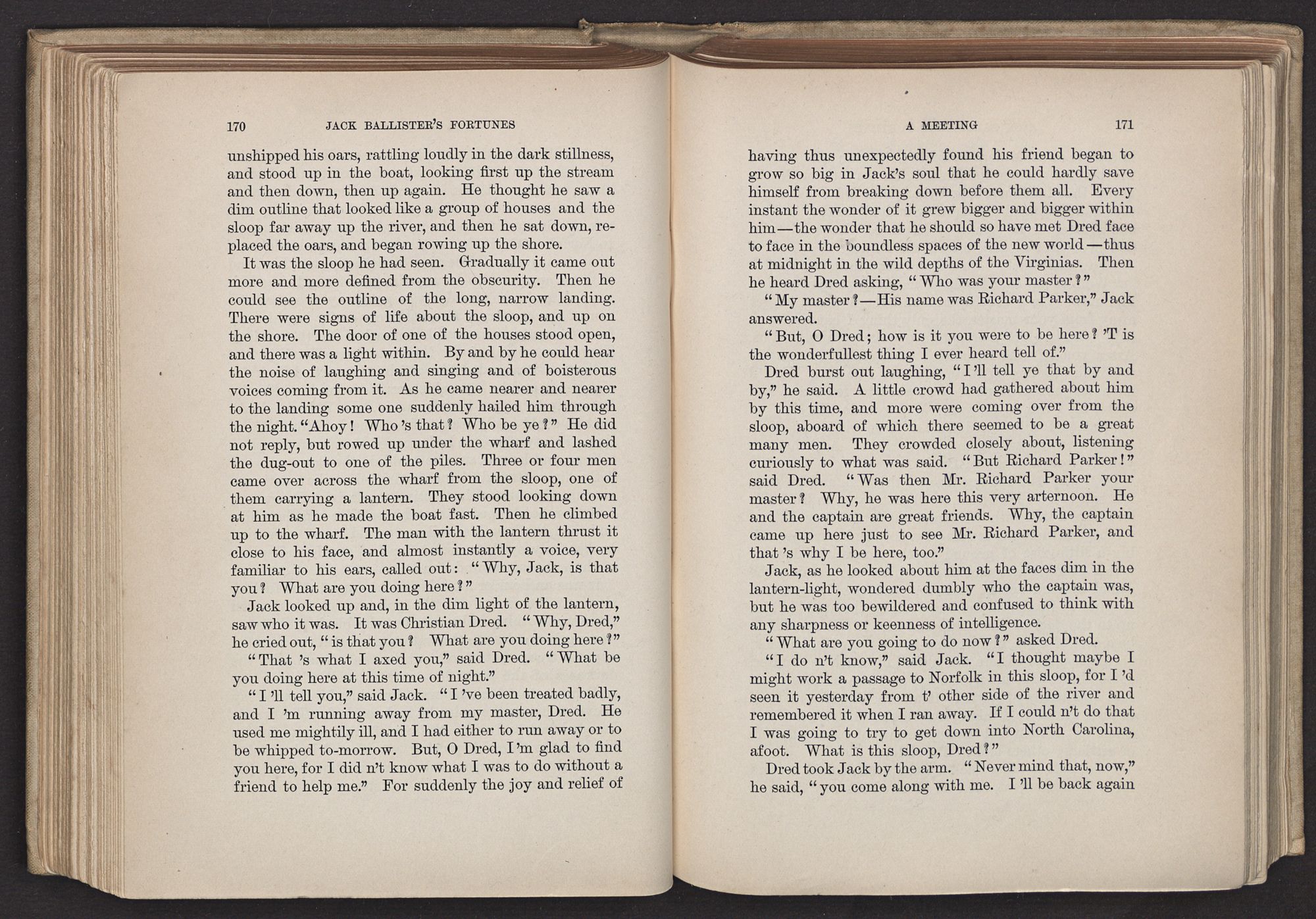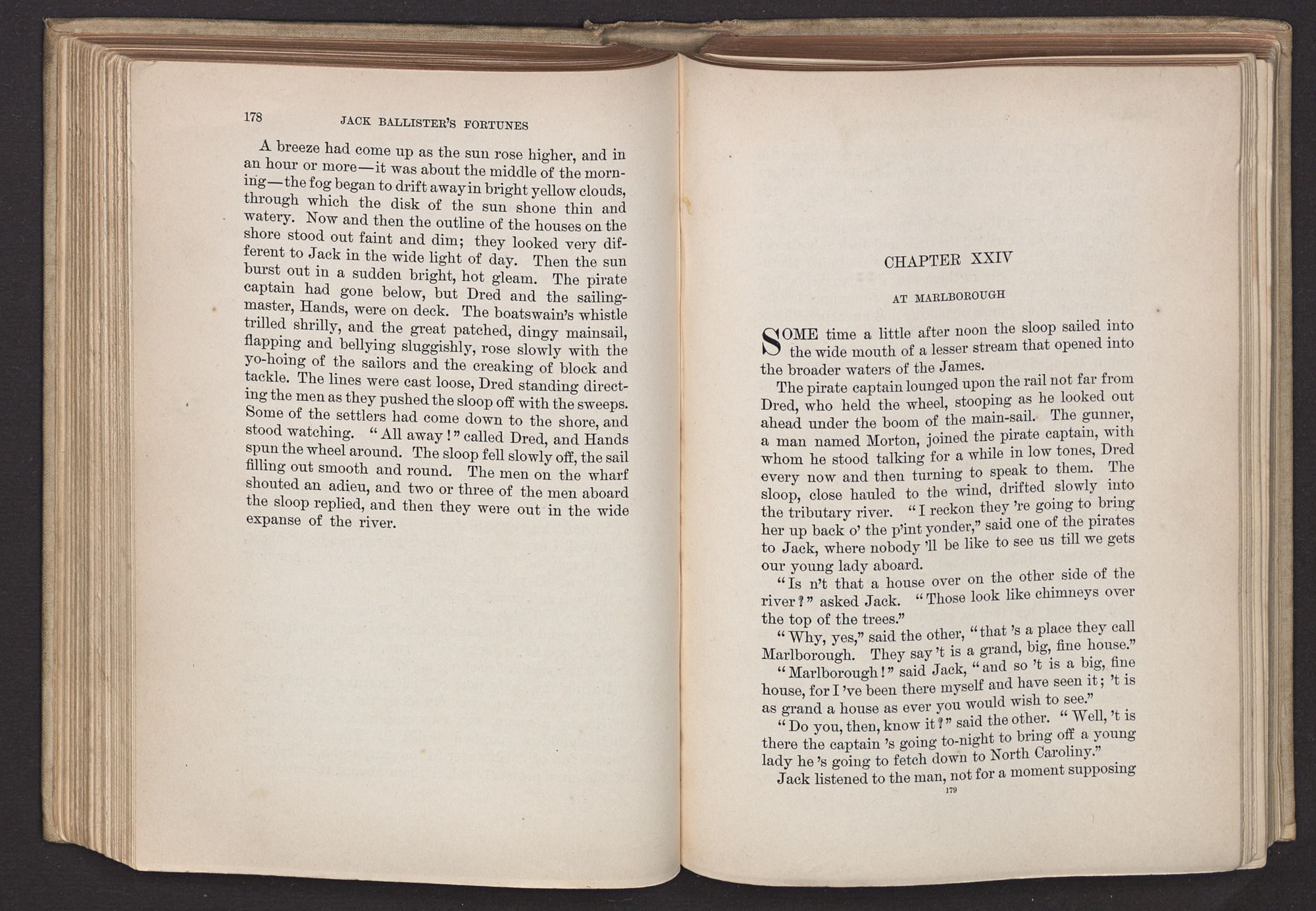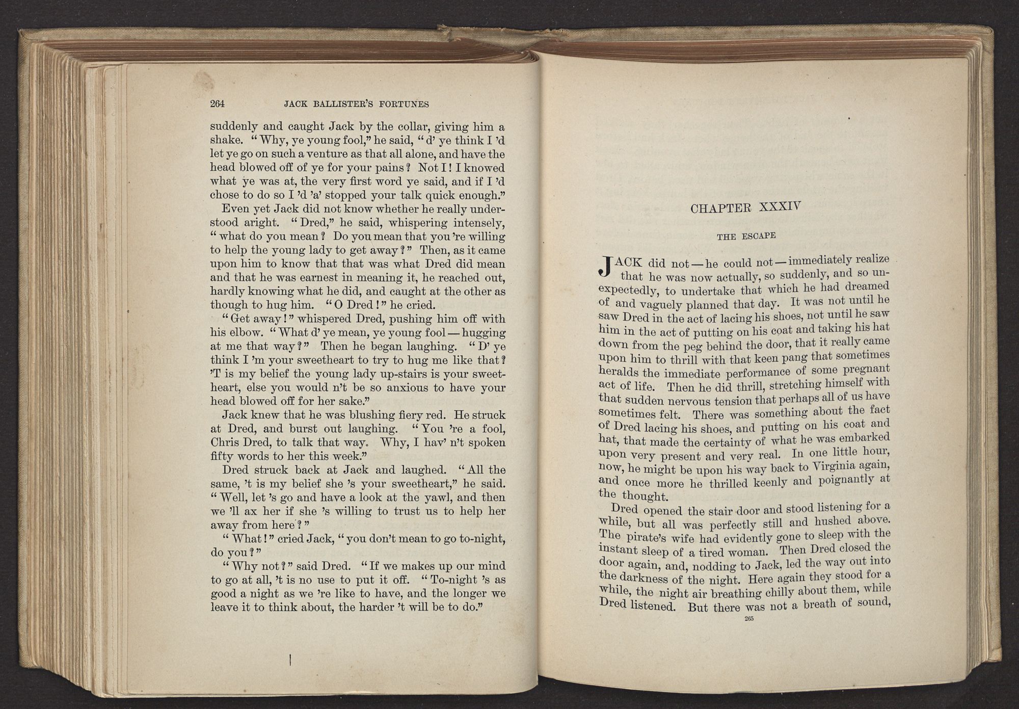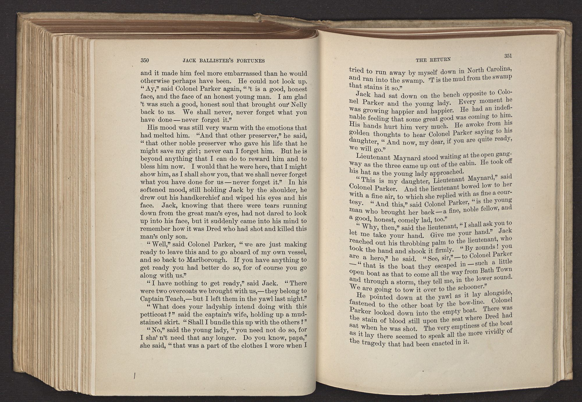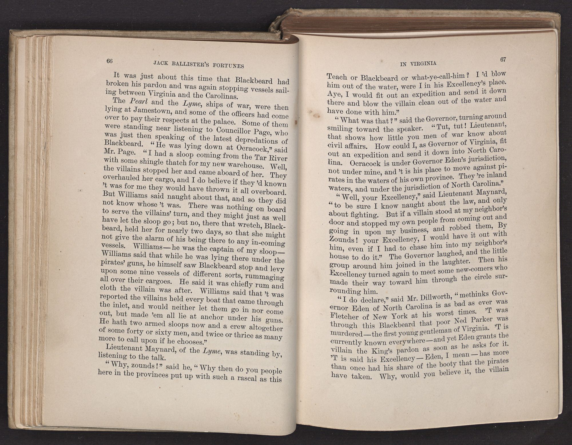 “Well,” said Jack, “’t was said down there at Bath Town,—that is, by those who came to see the pirate at his house,—’t was said that—that Mr. Richard Parker knew about Miss Nelly's having been taken away. I don't know anything about it myself, but that was what they all said. I know that Blackbeard writ three or four letters to Mr. Parker while the young lady was there, and I heard them say again and again that Mr. Parker knew that she had been taken away from home and whither she had been taken, and that he was concerned in it.”