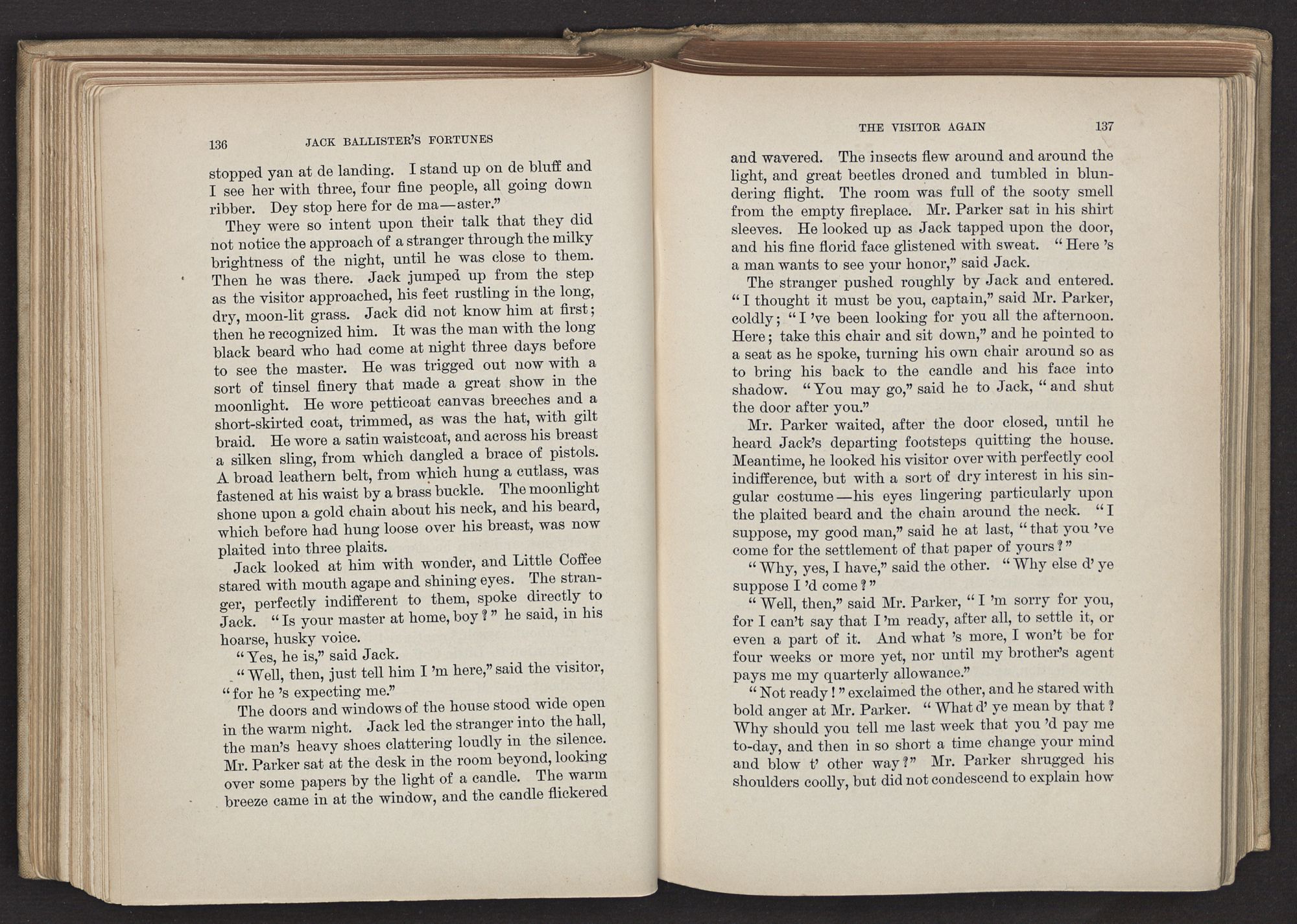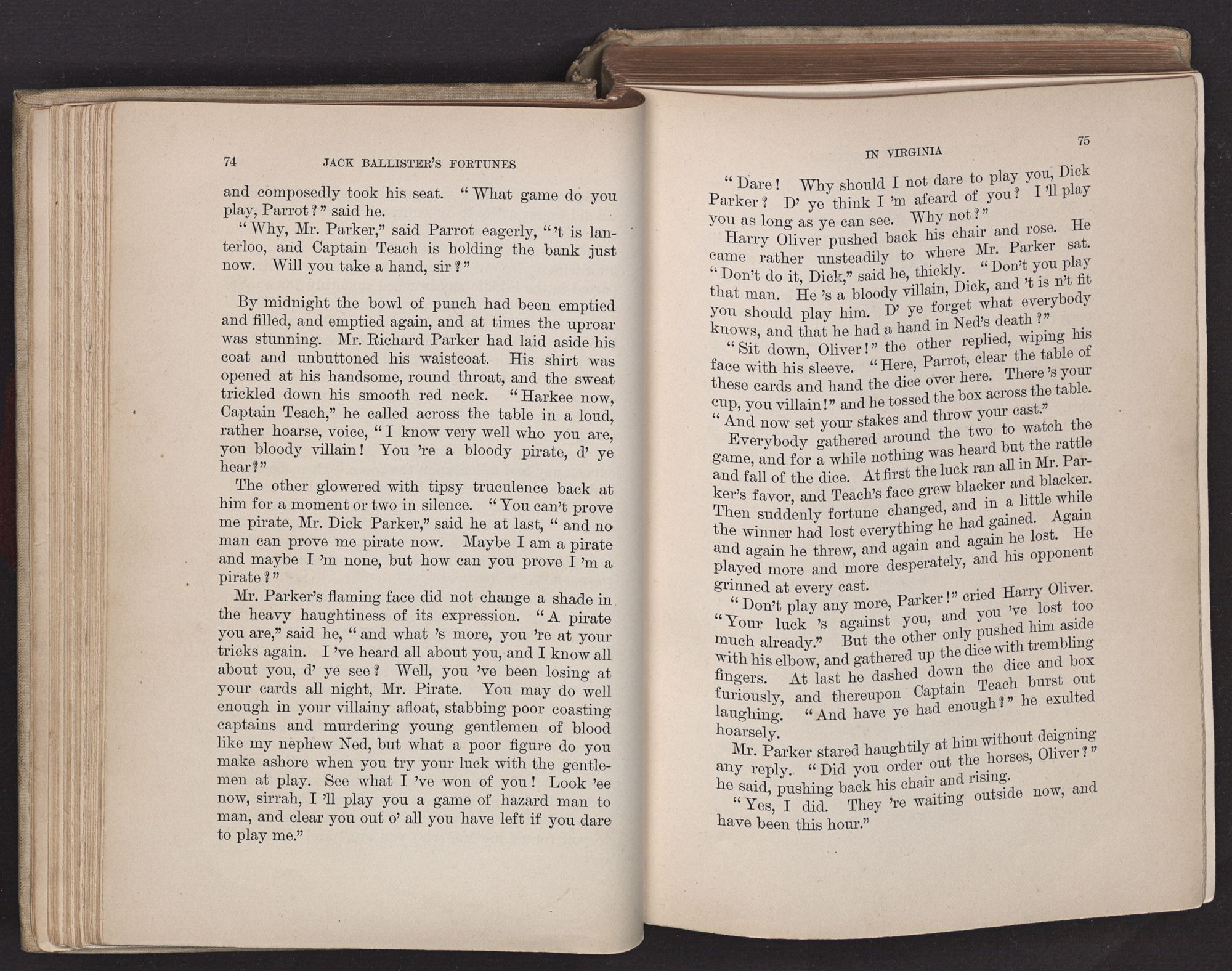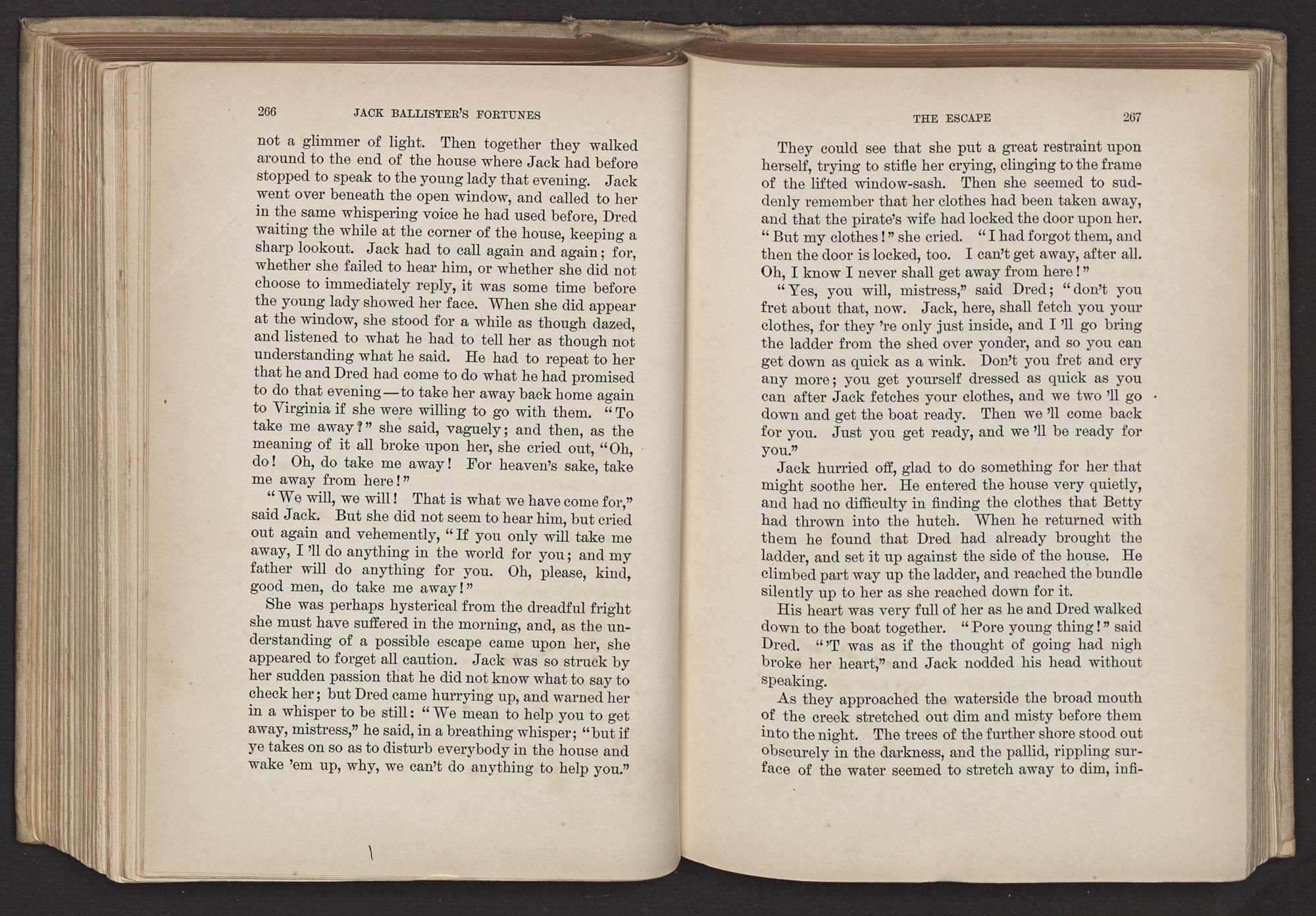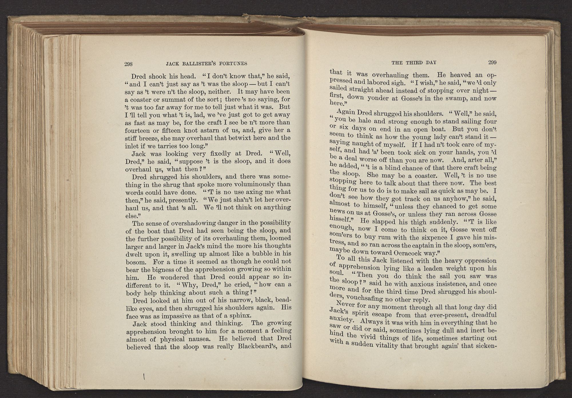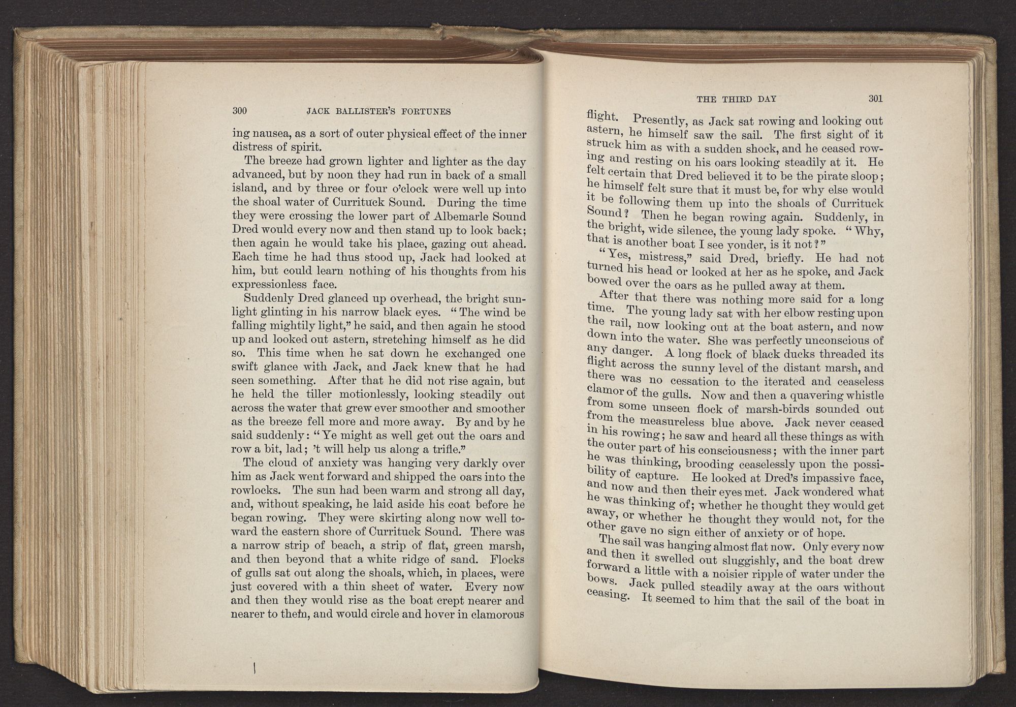 “Well,” said Jack, “’t was said down there at Bath Town,—that is, by those who came to see the pirate at his house,—’t was said that—that Mr. Richard Parker knew about Miss Nelly's having been taken away. I don't know anything about it myself, but that was what they all said. I know that Blackbeard writ three or four letters to Mr. Parker while the young lady was there, and I heard them say again and again that Mr. Parker knew that she had been taken away from home and whither she had been taken, and that he was concerned in it.”