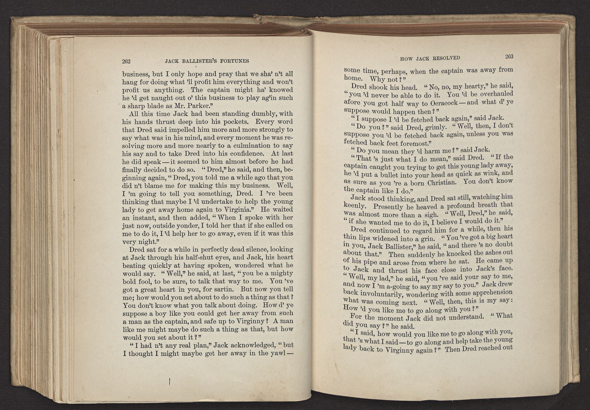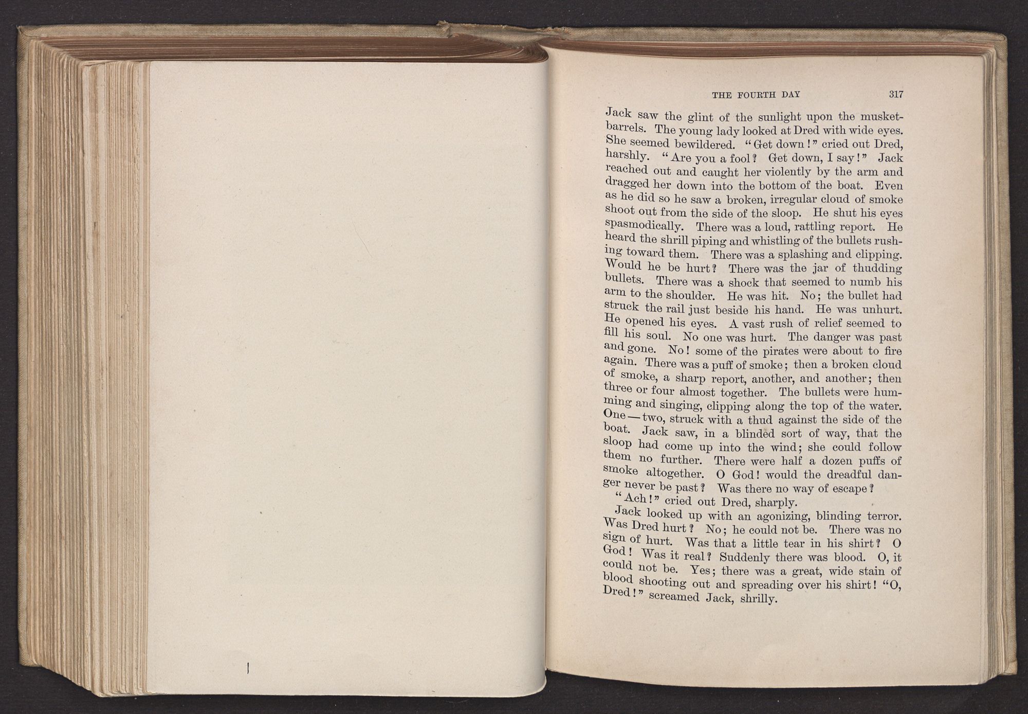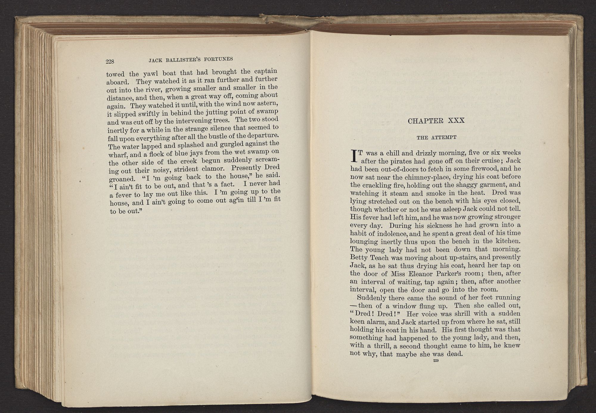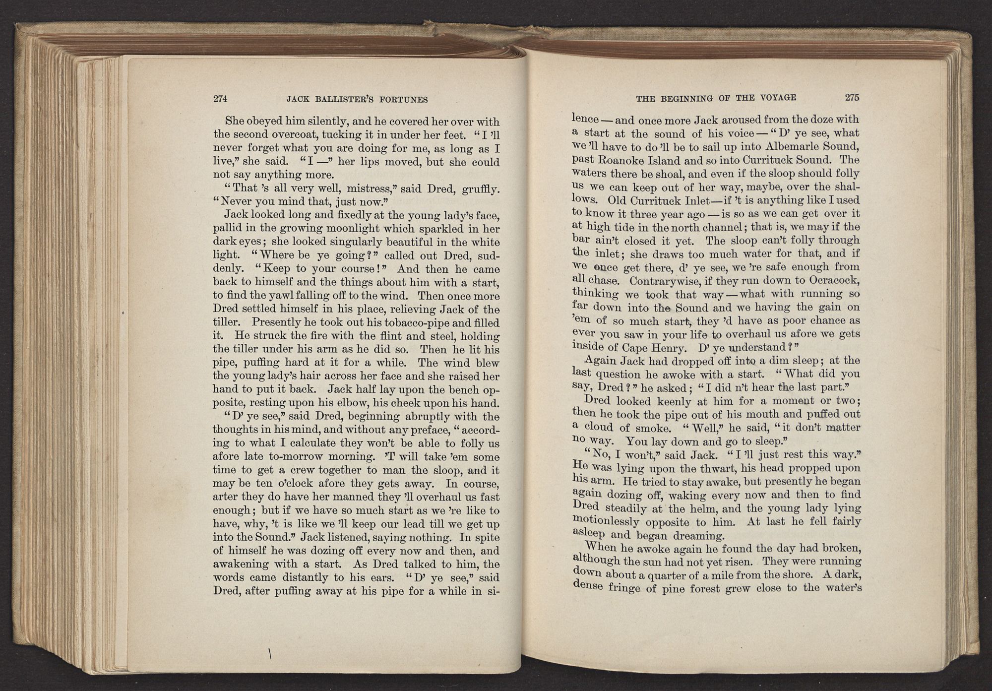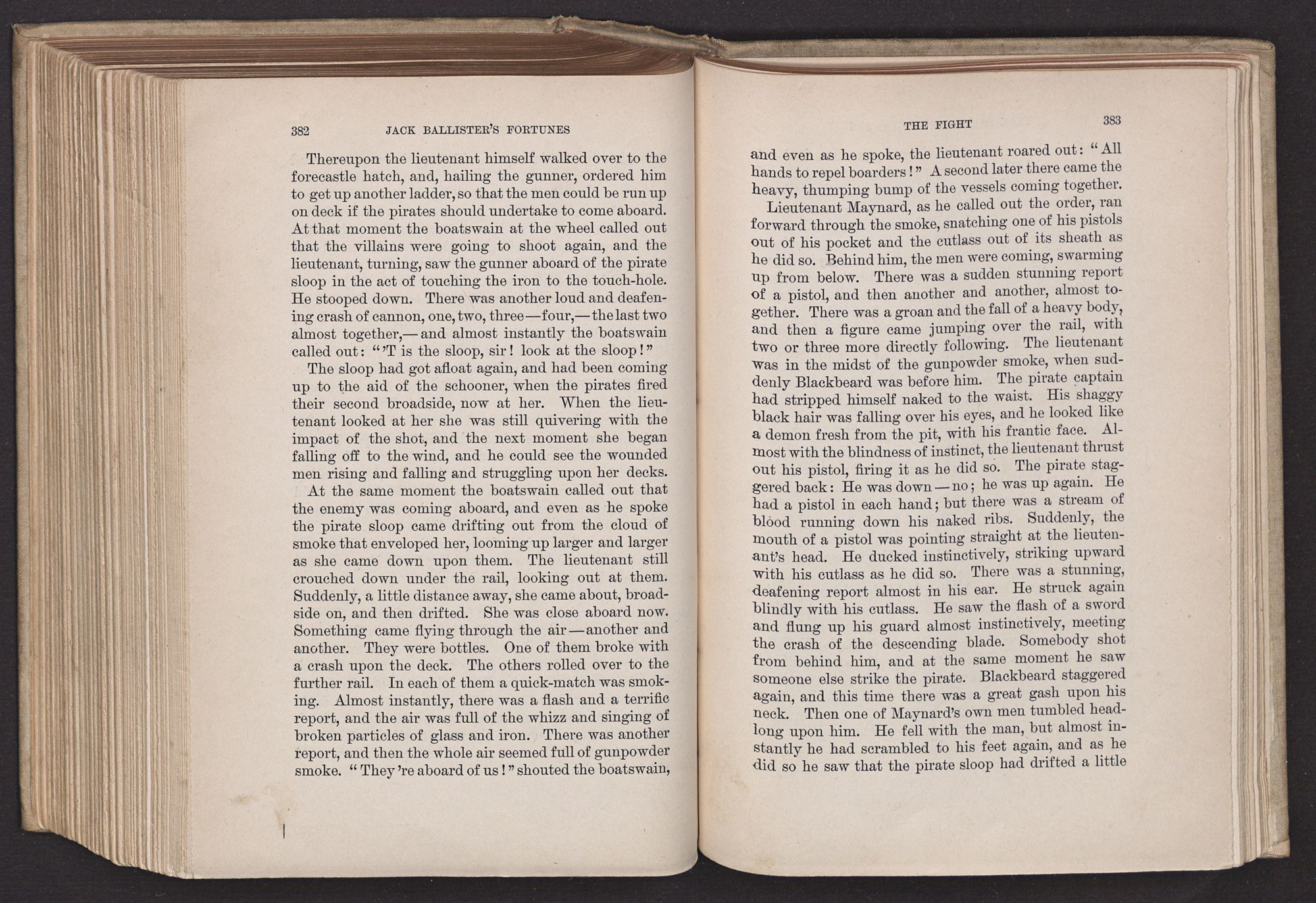 “Well,” said Jack, “’t was said down there at Bath Town,—that is, by those who came to see the pirate at his house,—’t was said that—that Mr. Richard Parker knew about Miss Nelly's having been taken away. I don't know anything about it myself, but that was what they all said. I know that Blackbeard writ three or four letters to Mr. Parker while the young lady was there, and I heard them say again and again that Mr. Parker knew that she had been taken away from home and whither she had been taken, and that he was concerned in it.”