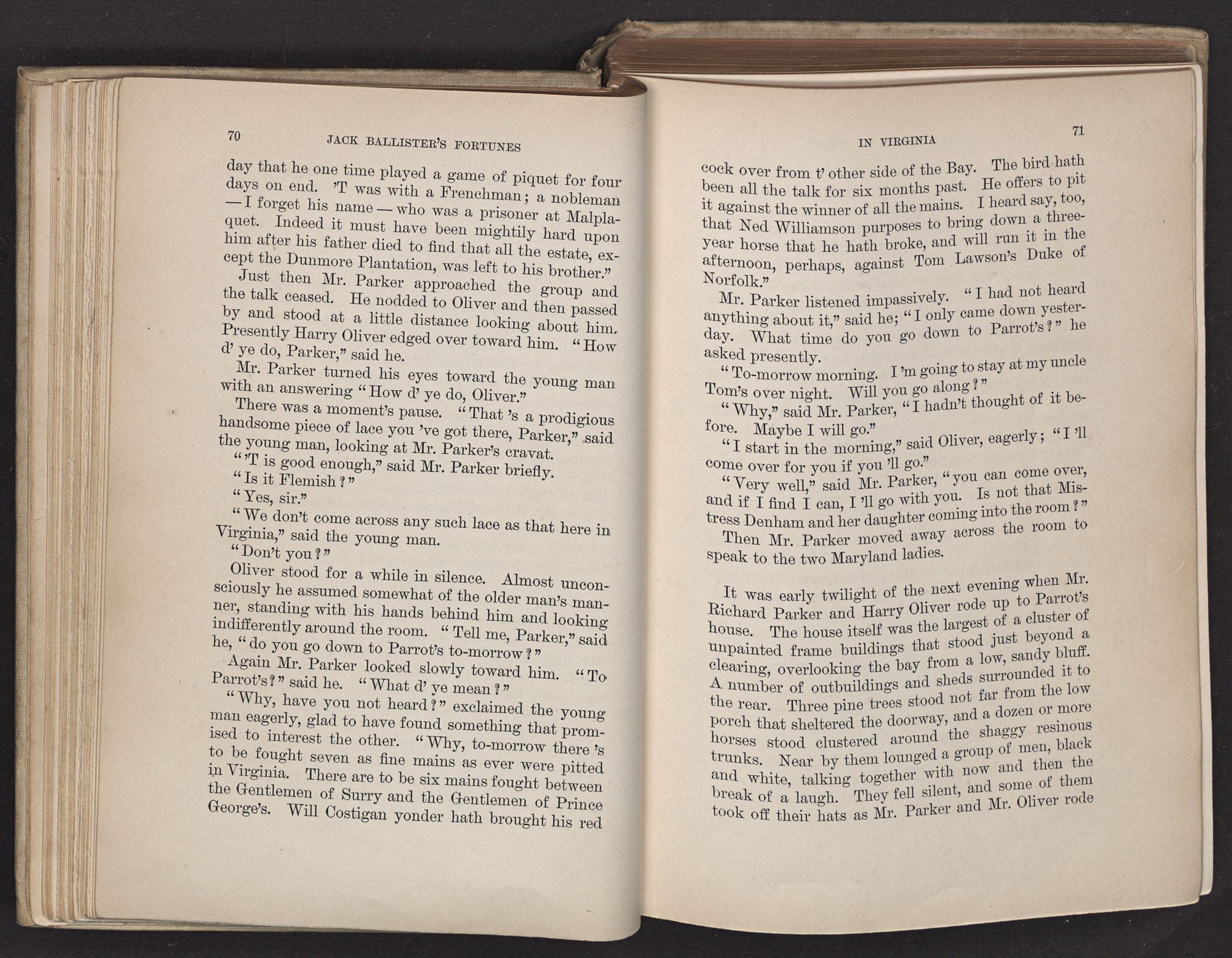 He had been settled in England for over a month before he heard from Virginia. Then there came a great packet of letters all together; a fat, bulky letter from Colonel Parker, one from Madam Parker, one from Lieutenant Maynard, and a very long letter from Nelly Parker.