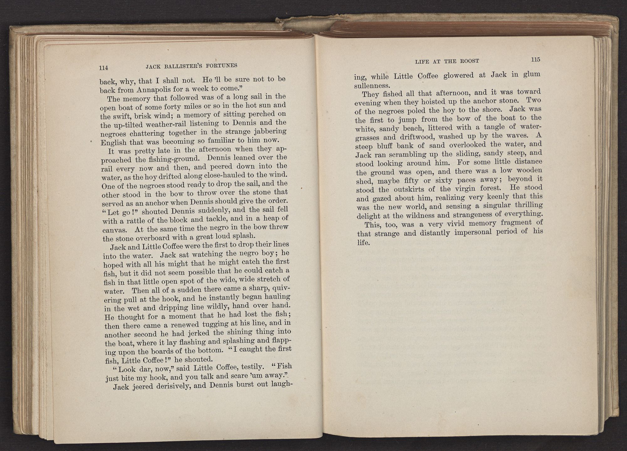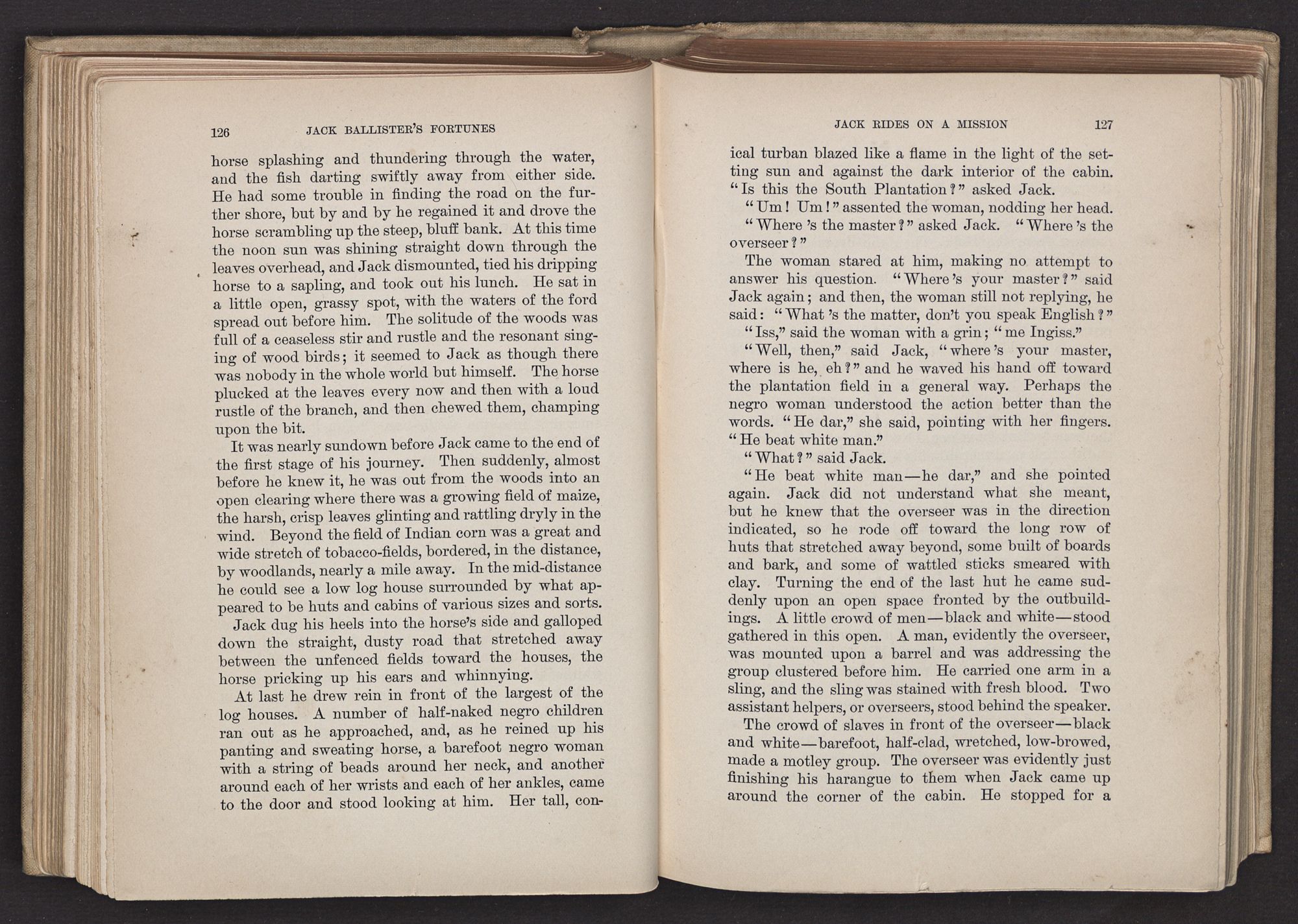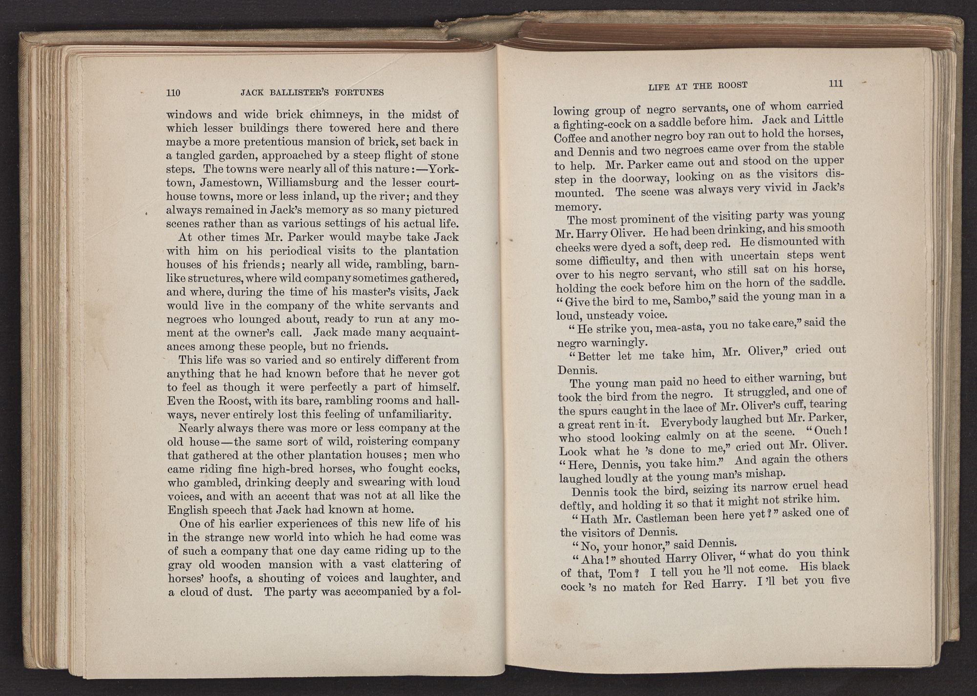 “Why, Master Tipton,” said the agent, referring to a slip of paper which he held in his hand, “there you are mightily mistook. Maybe, like enough, that man is worth more than any of ’em. He's a skilled barber and leecher, and a good man he is, and knows his trade, to be sure, and that werry well. Just you think, Master Tipton, how much he might be worth as a vally or body-servant to one of them there Virginia planters.”