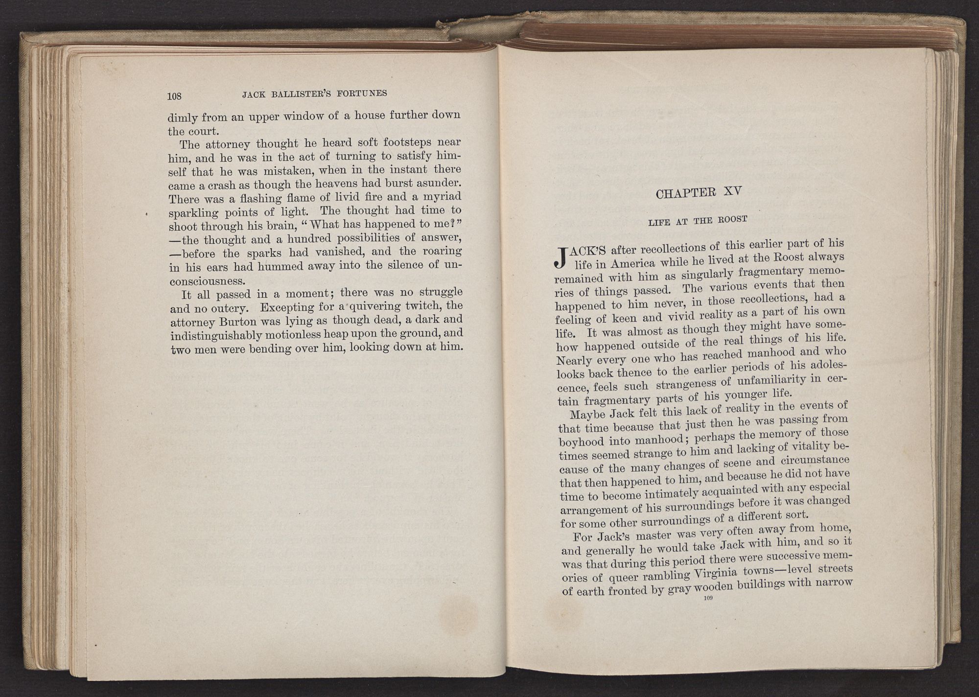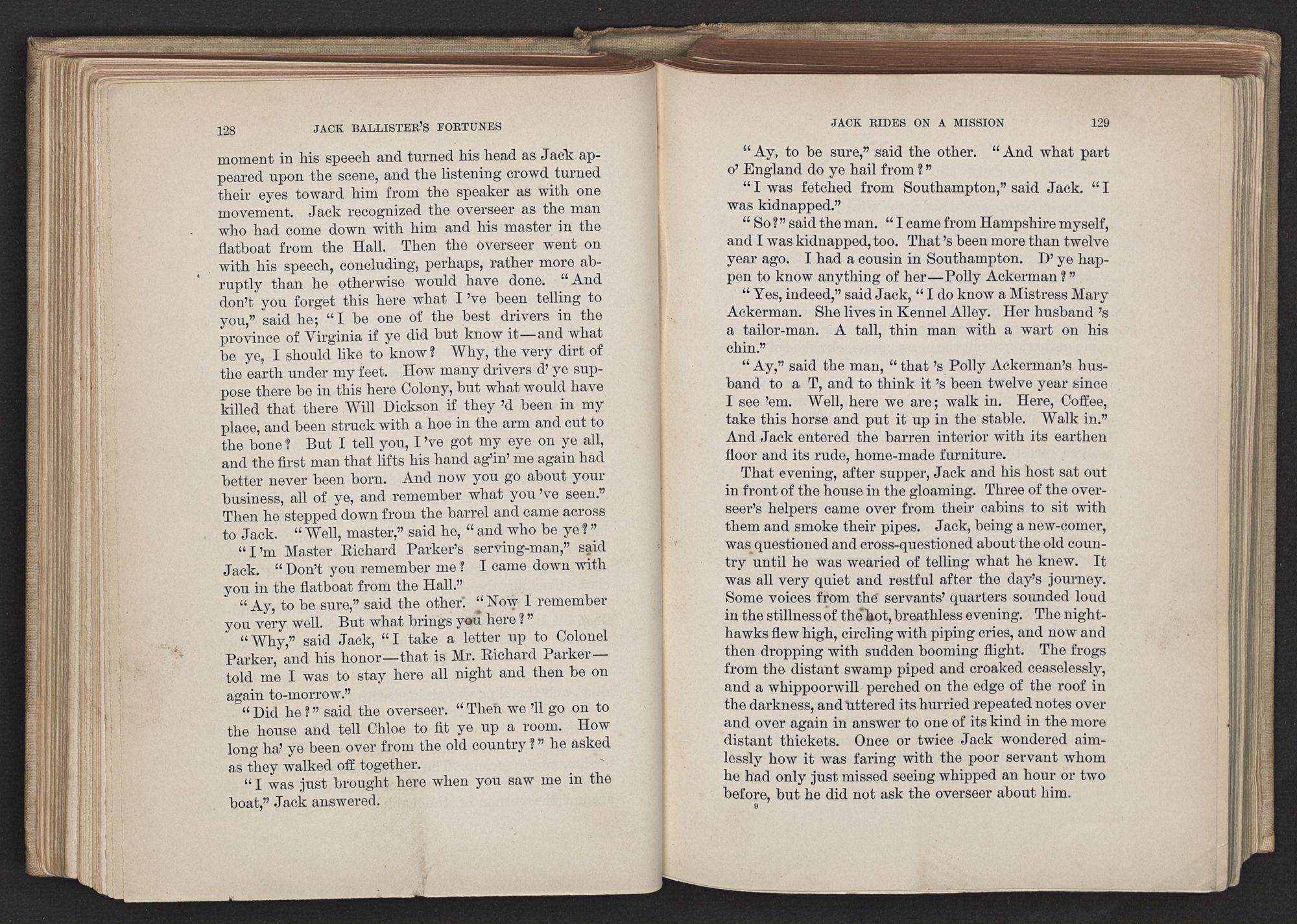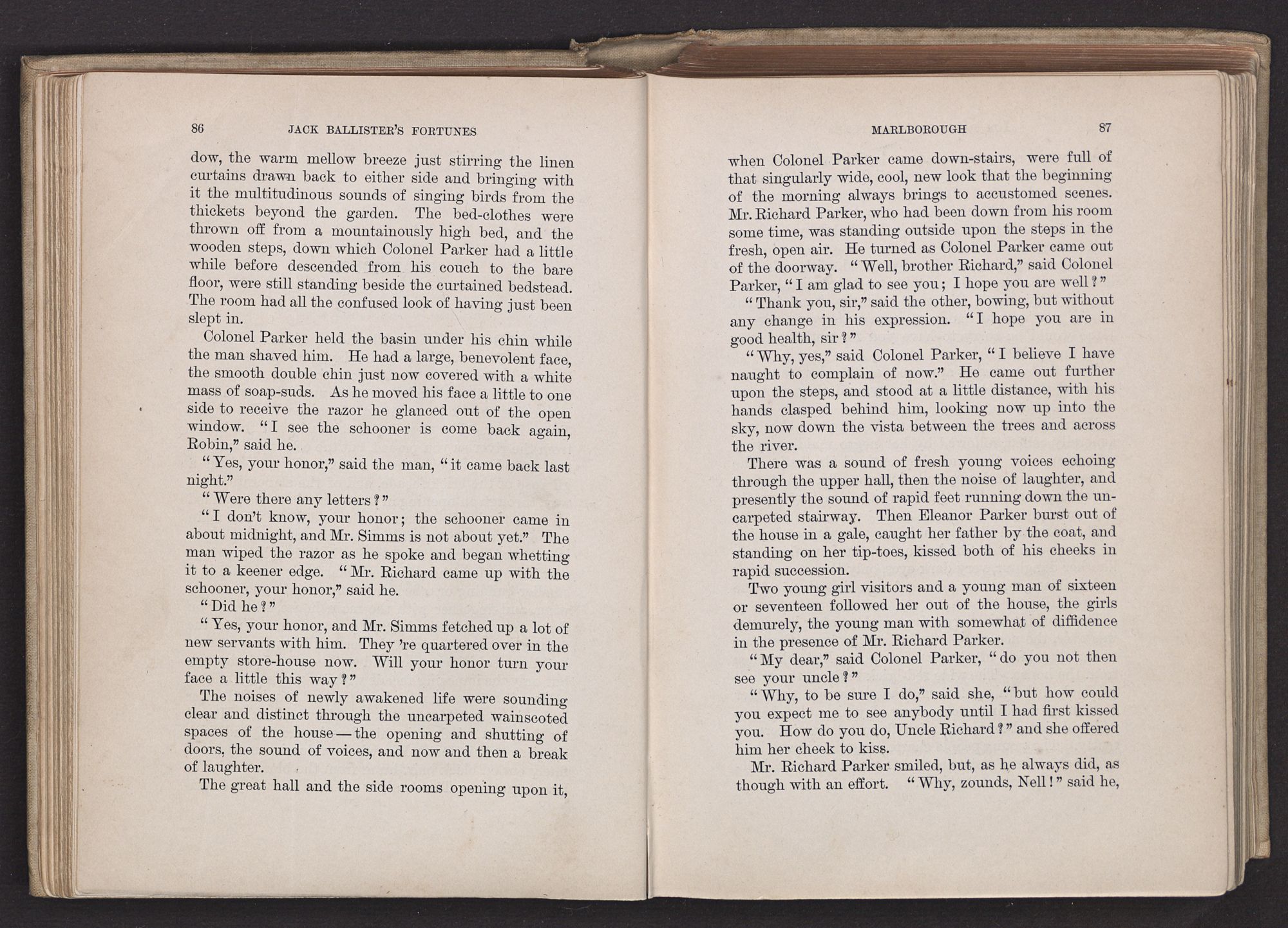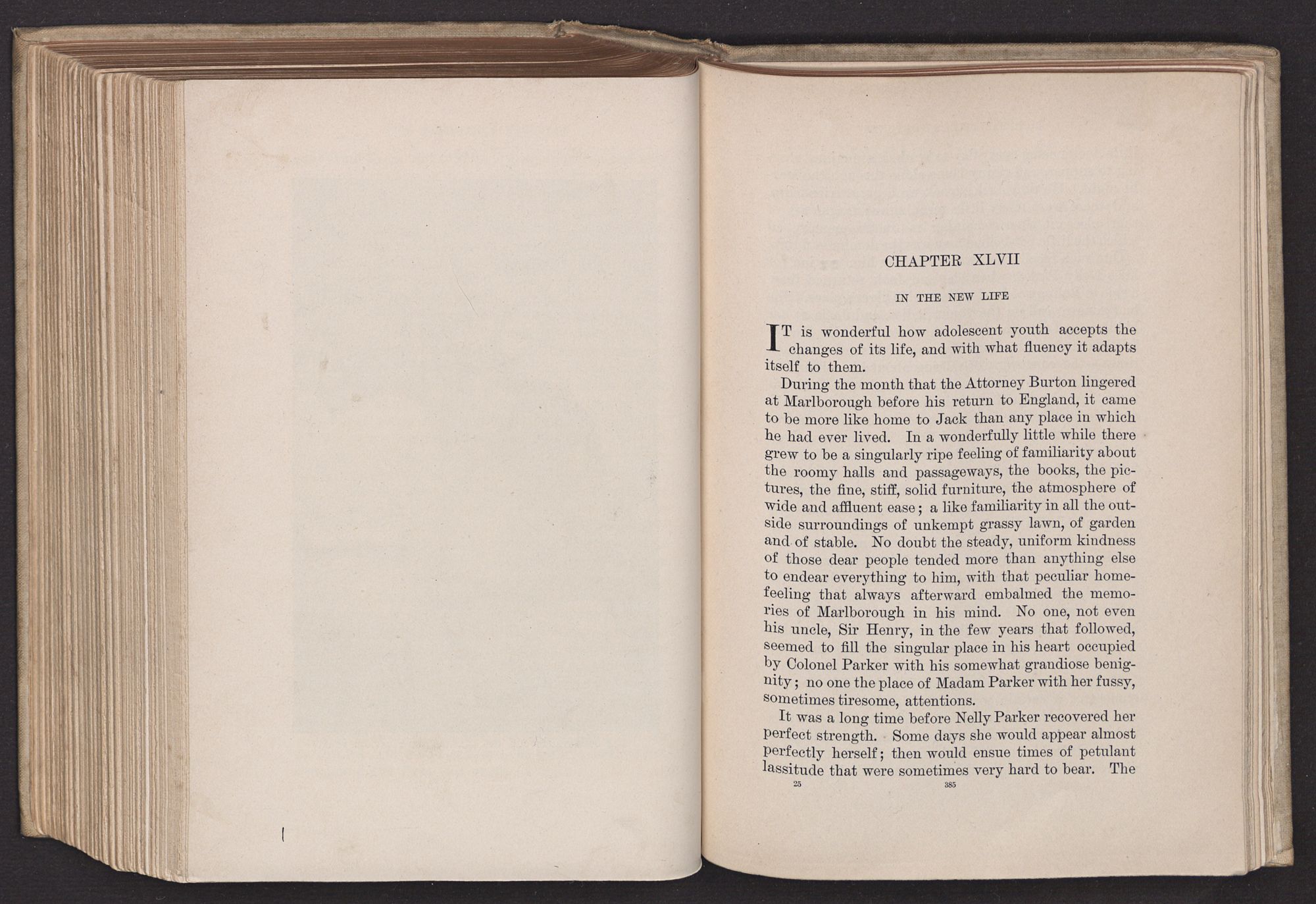Jack was twenty years of age when his uncle Hezekiah died. The old man left a great fortune of over thirty thousand pounds, a part of which was invested in a large tract of land in Virginia. The next year Jack left college, and the year after, in the following summer, took passage to America to look after his property and to have it properly surveyed. Colonel Parker, who had been the active agent in the purchase of the land, invited him to come directly to Marlborough, and Jack gladly accepted the invitation.