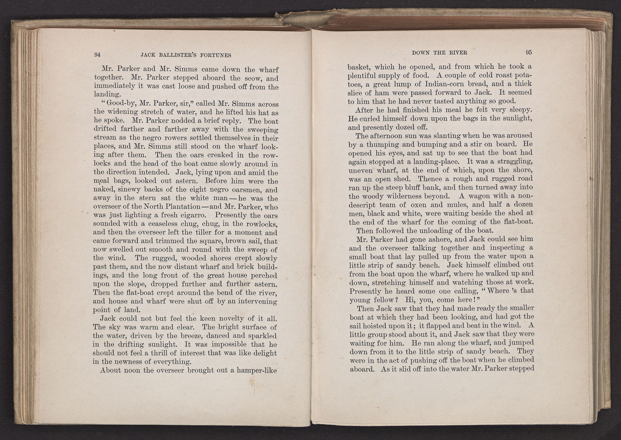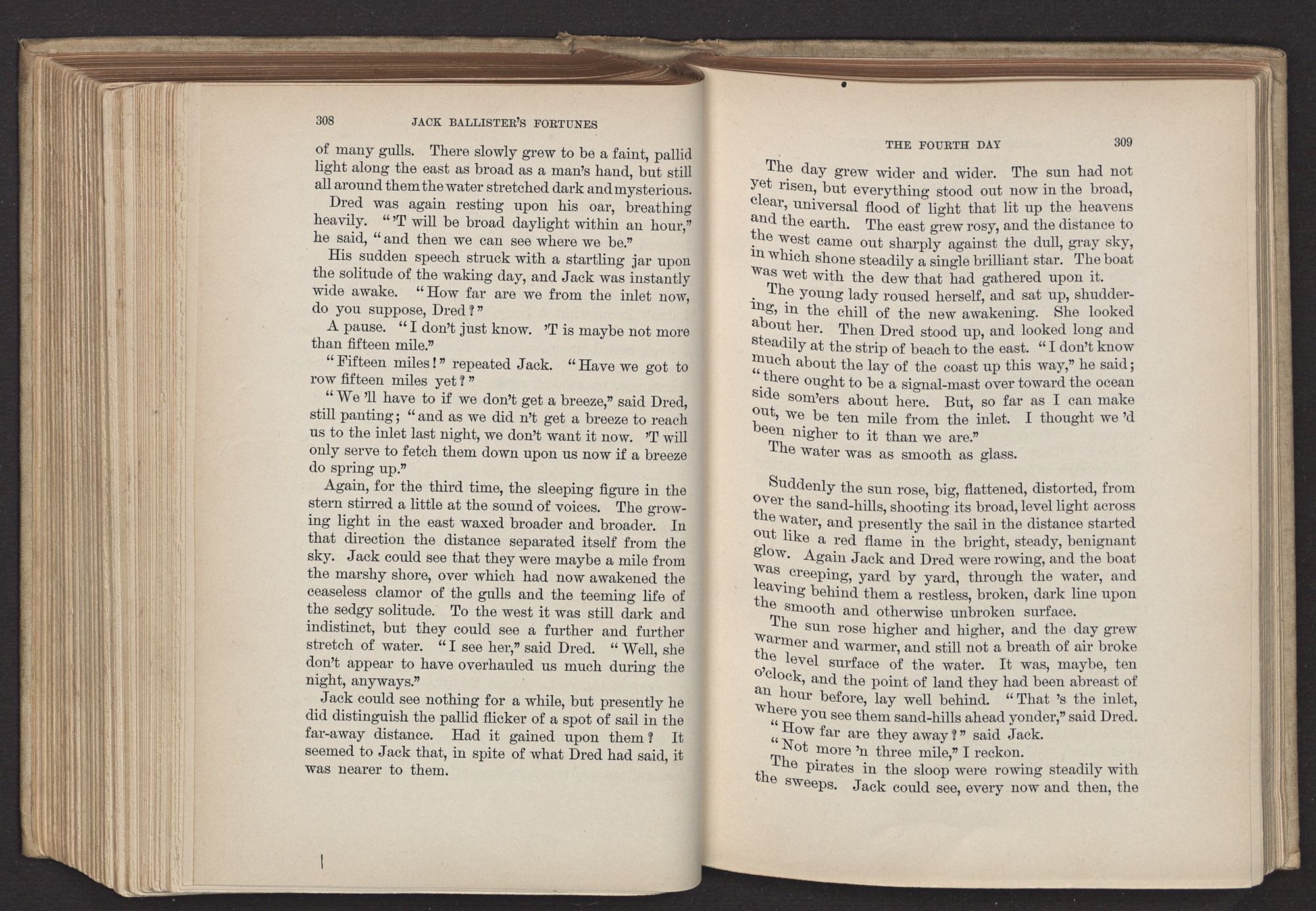 Robin helped him as he dressed with chattering teeth and numb, cold fingers. “The boat ’s all ready and waiting, Master Jack,” the man said, “and they ’ll start as soon as you ’ve eaten your breakfast and go aboard.”