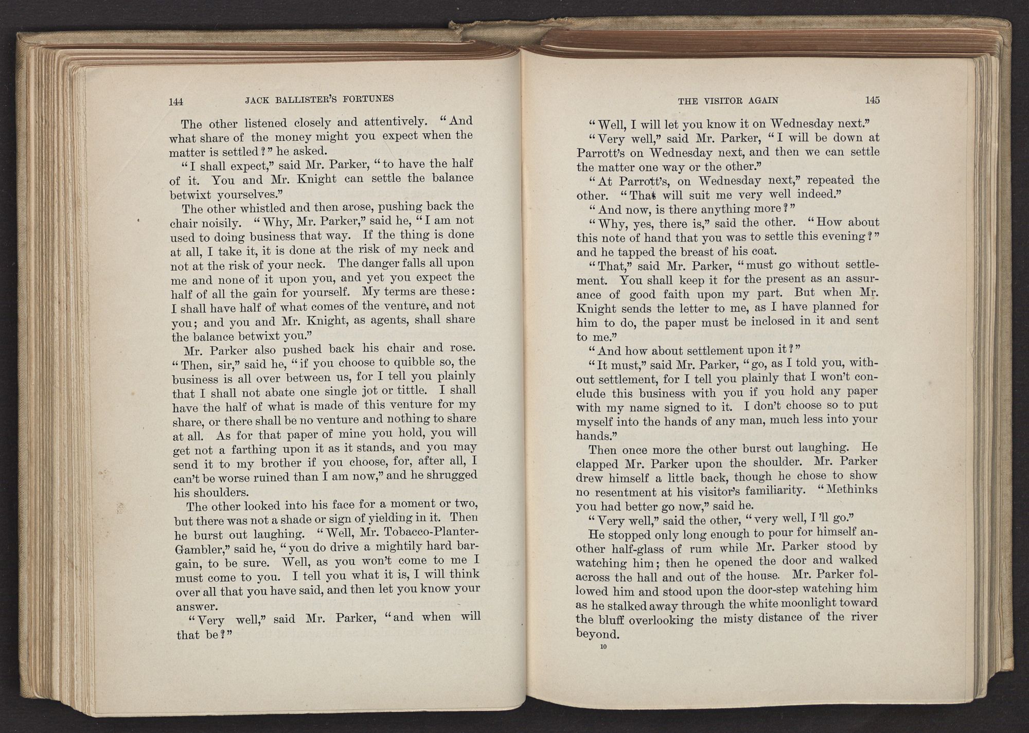 After that he wrote frequently, keeping Colonel Parker apprised of all his movements. By January, he had Jack's affairs so far settled that there was talk of his returning to England. It was finally arranged with Hezekiah Tipton that Jack should go to live at Grampton with Sir Henry Ballister, and a sufficient sum for his maintenance was extorted from the old man. It was also arranged that he should be given such an education as befitted his rank in the world.