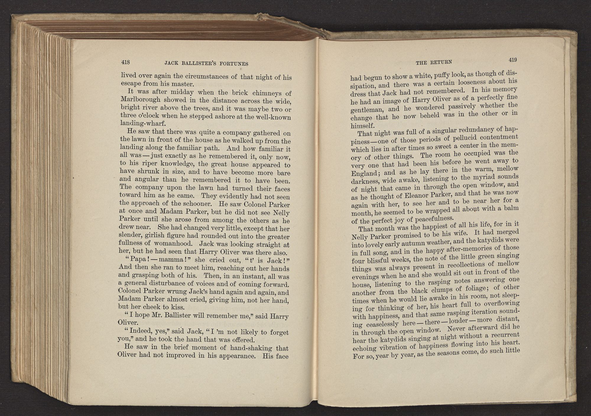 He saw that there was quite a company gathered on the lawn in front of the house as he walked up from the landing along the familiar path. And how familiar it all was—just exactly as he remembered it, only now, to his riper knowledge, the great house appeared to have shrunk in size, and to have become more bare and angular than he remembered it to have been. The company upon the lawn had turned their faces toward him as he came. They evidently had not seen the approach of the schooner. He saw Colonel Parker at once and Madam Parker, but he did not see Nelly Parker until she arose from among the others as he drew near. She had changed very little, except that her slender, girlish figure had rounded out into the greater fullness of womanhood. Jack was looking straight at her, but he had seen that Harry Oliver was there also.