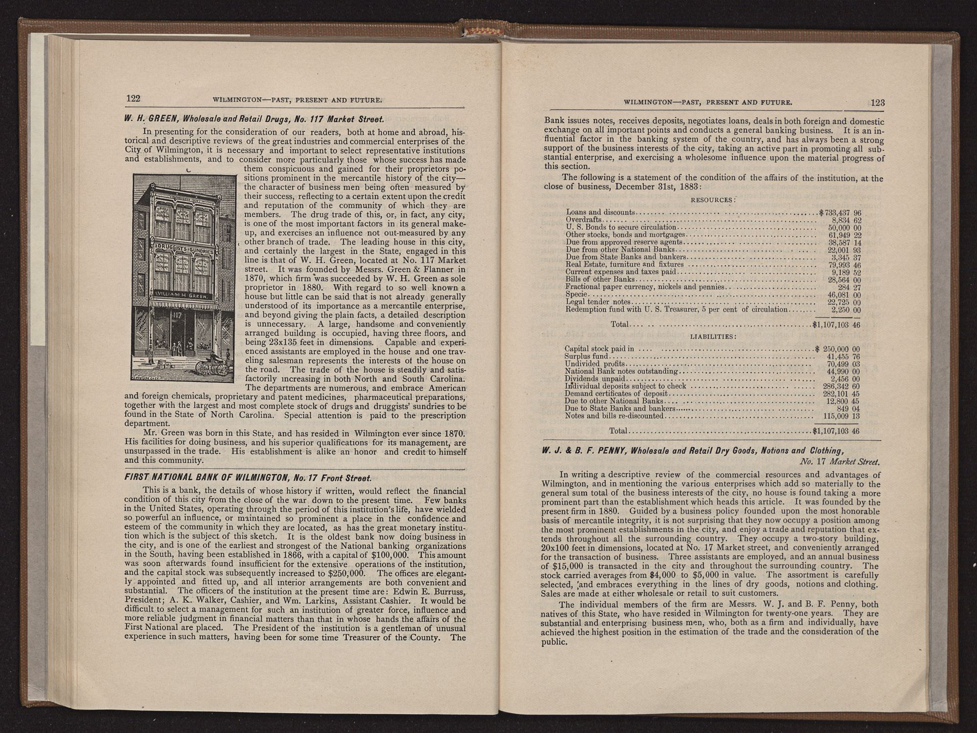 with a full line of notions, affording an opportunity for selection rarely attainable outside of the metropolitan cities of the East. They carry an average stock of $40,000, and a business of $150,000 is transacted throughout North and South Carolina. One traveling salesman is kept constantly on the road, and sixteen assistants are employed in the store.