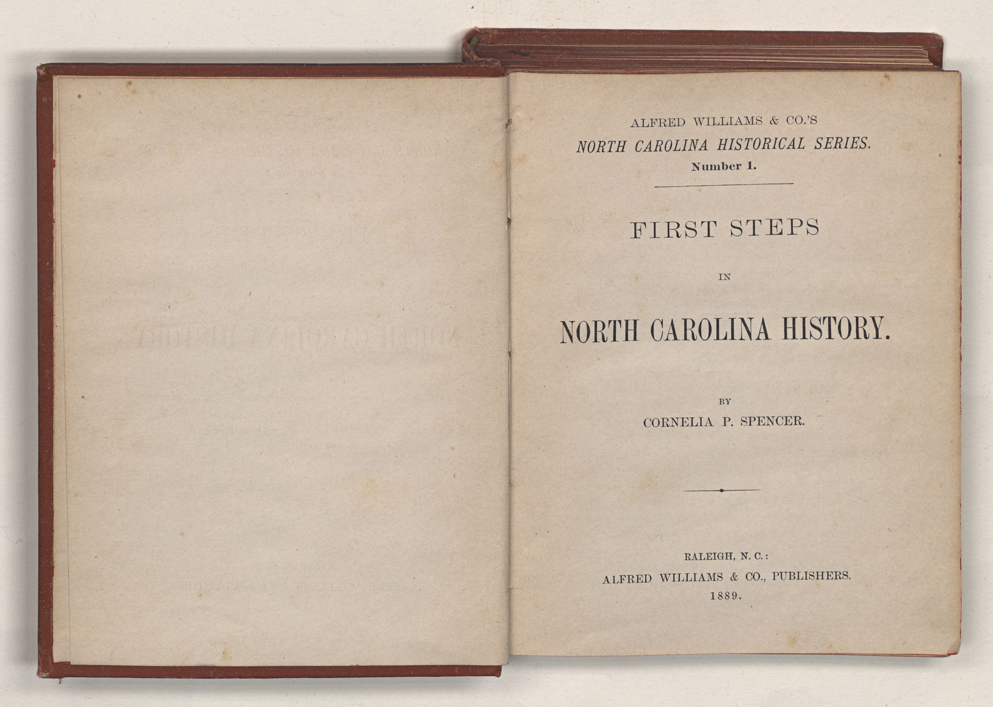 NORTH CAROLINA HISTORICAL SERIESFIRST STEPSINNORTH CAROLINA HISTORY.SPENCERAlfred Williams &Co. Raleigh, N.C.