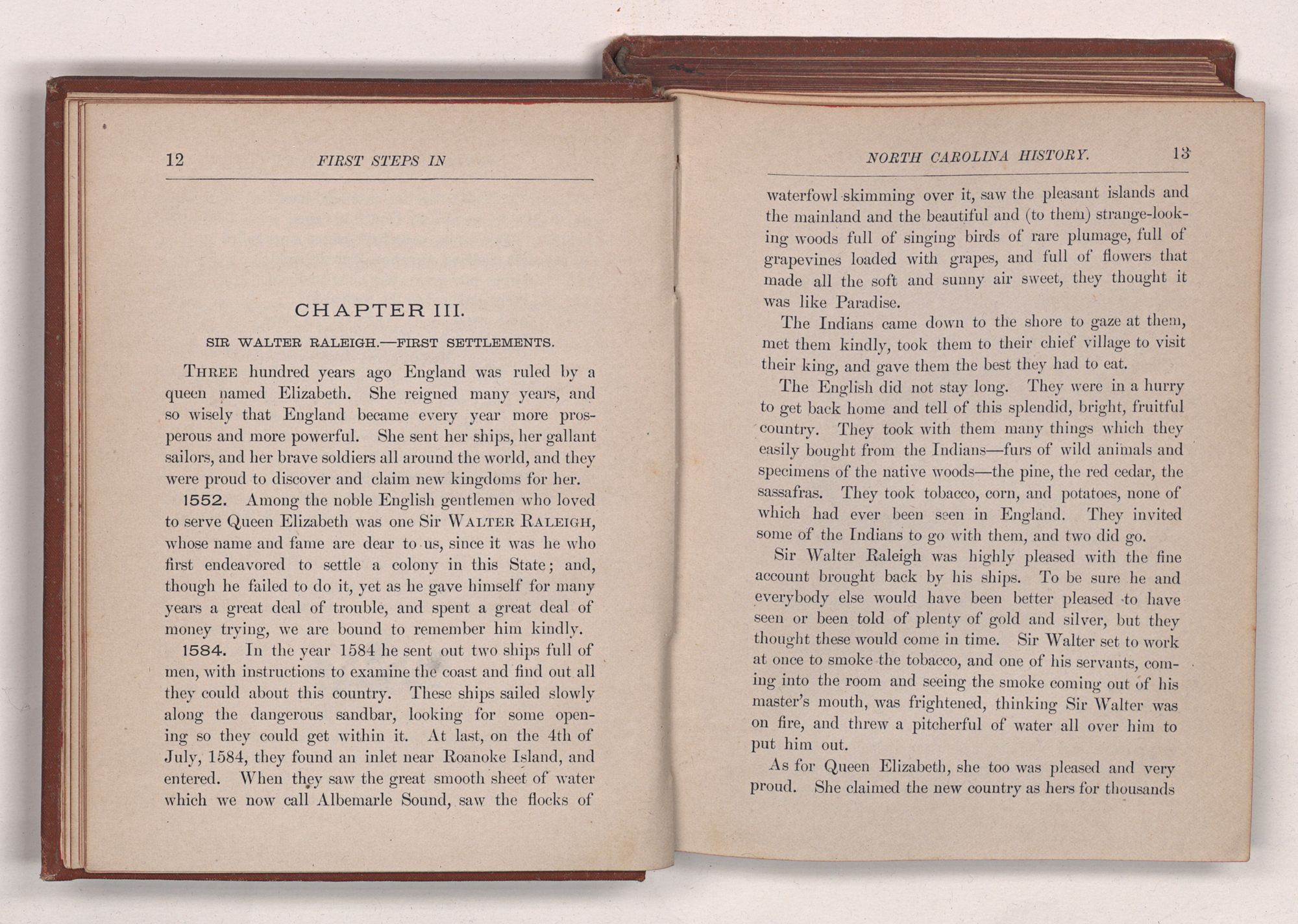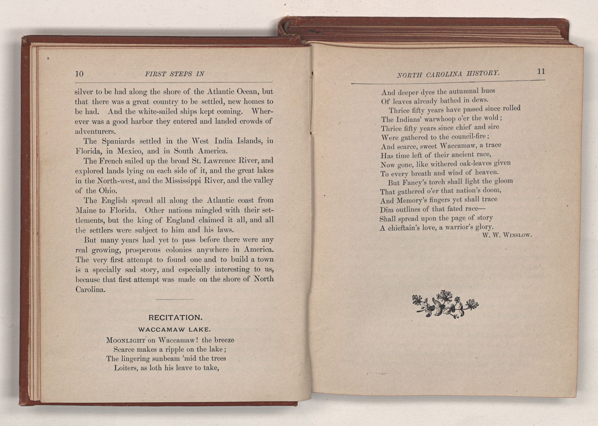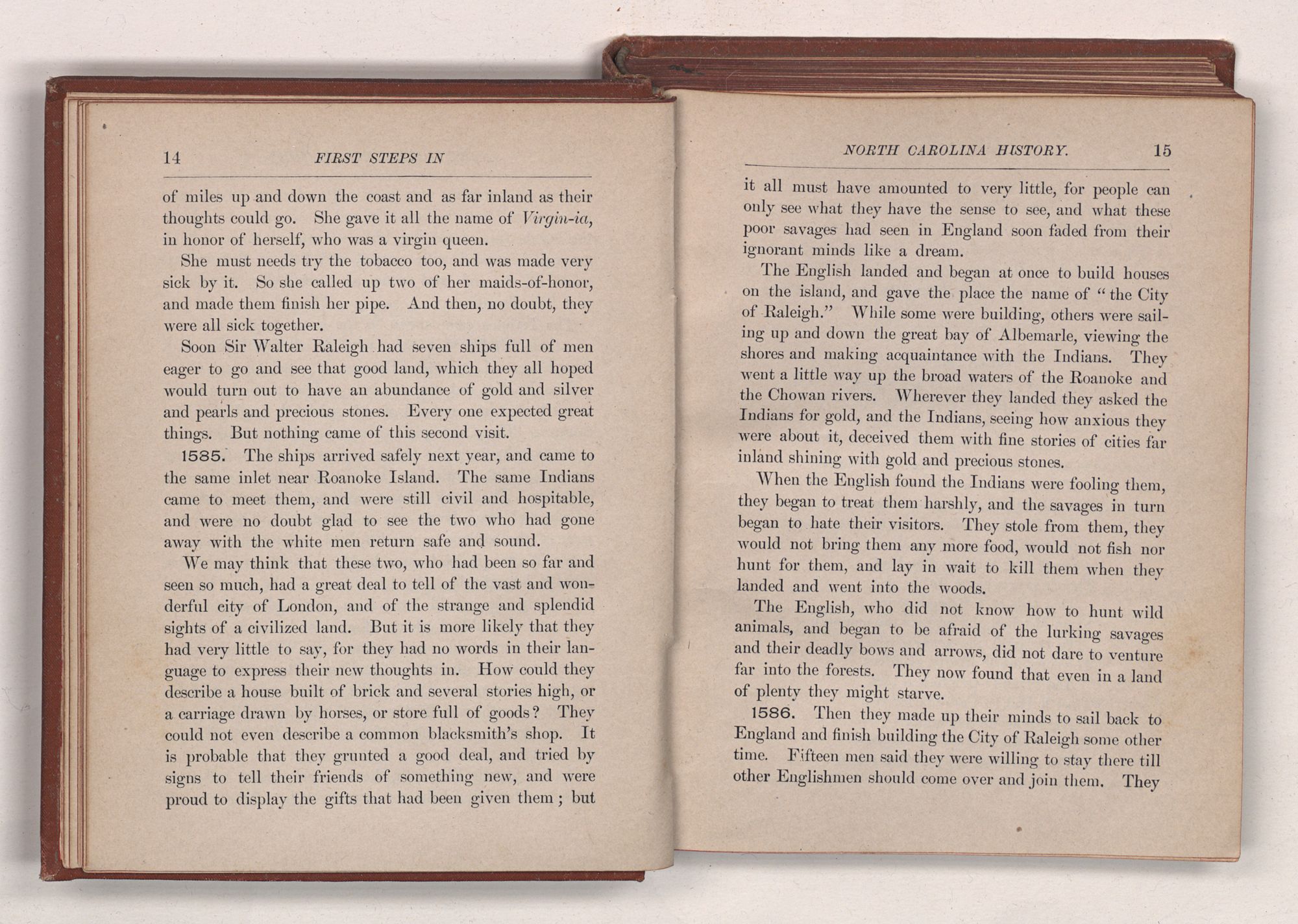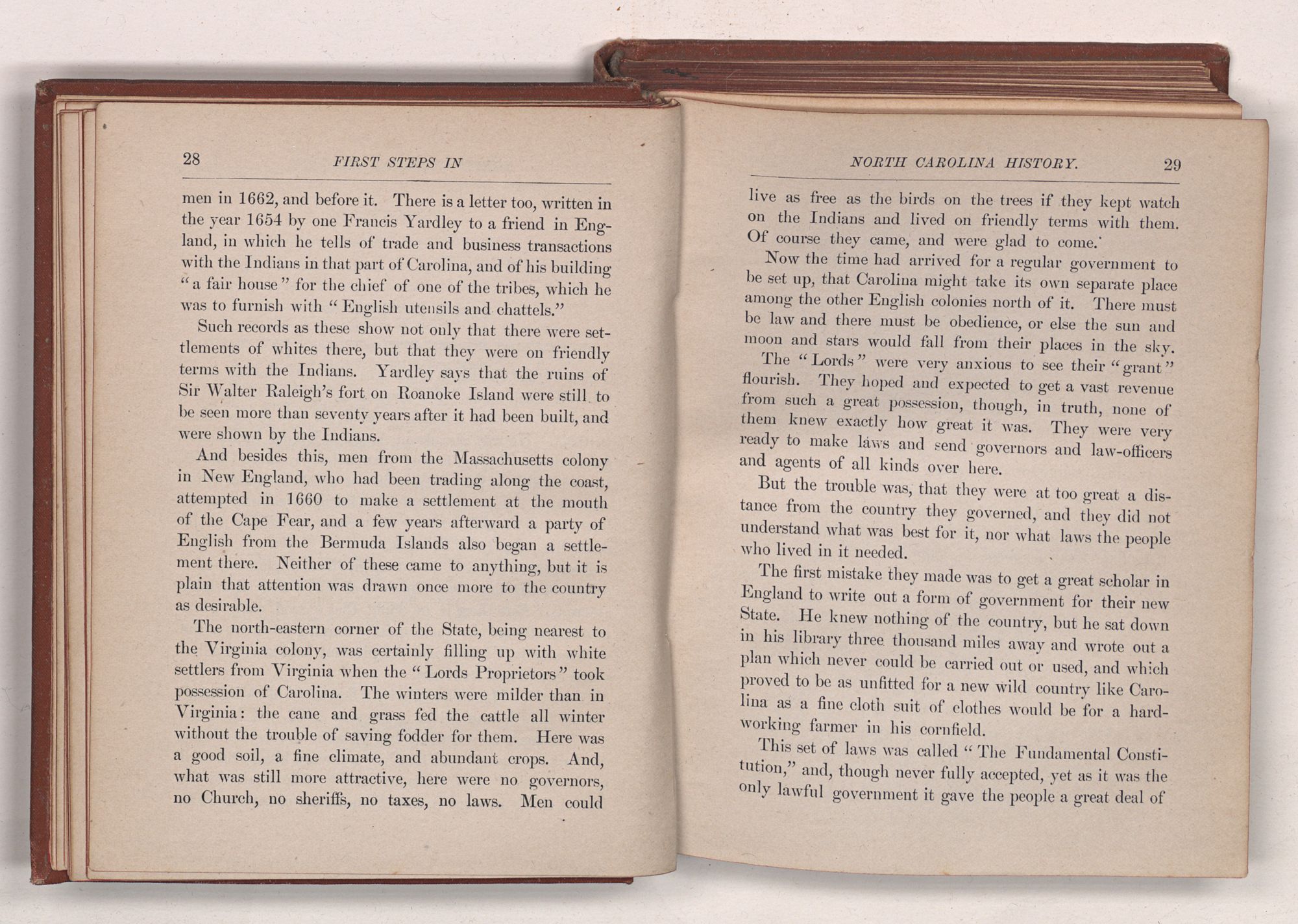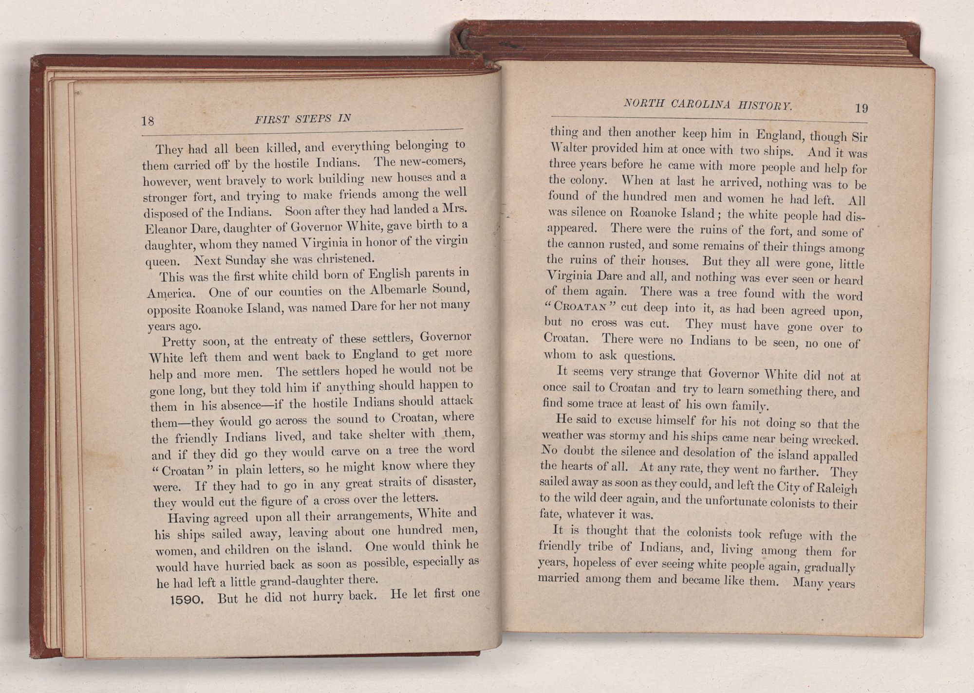 ALFRED WILLIAMS & CO.’SNORTH CAROLINA HISTORICAL SERIES. Number 1. FIRST STEPSINNORTH CAROLINA HISTORY.BYCORNELIA P. SPENCER.RALEIGH, N. C.:ALFRED WILLIAMS & CO., PUBLISHERS.1889.