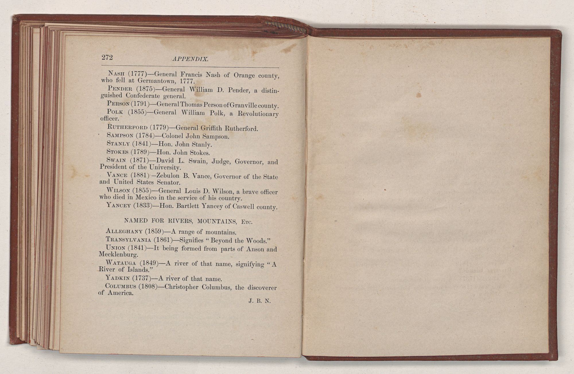 NAMED FOR RIVERS, MOUNTAINS, Etc.Alleghany (1859)—A range of mountains.
