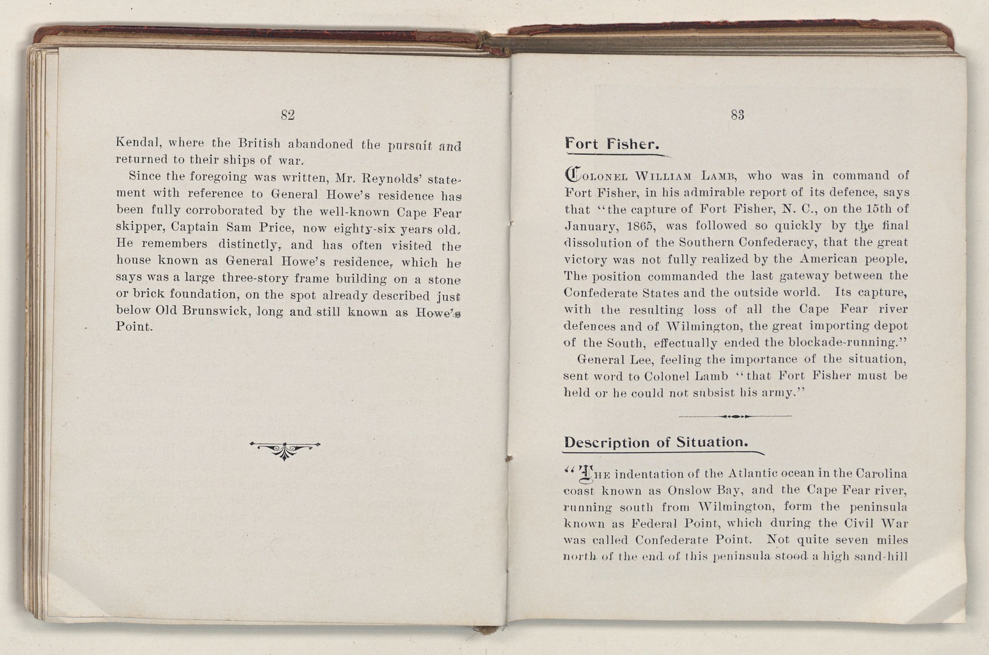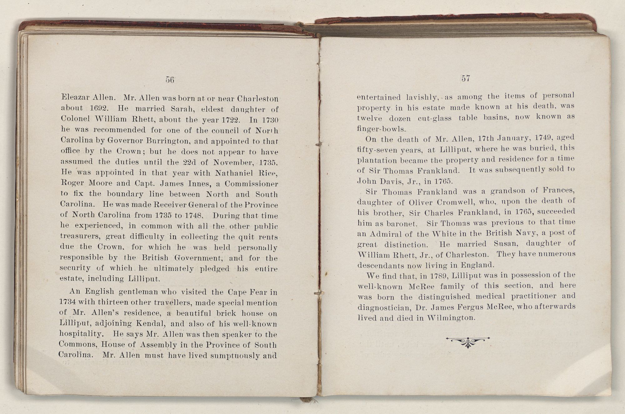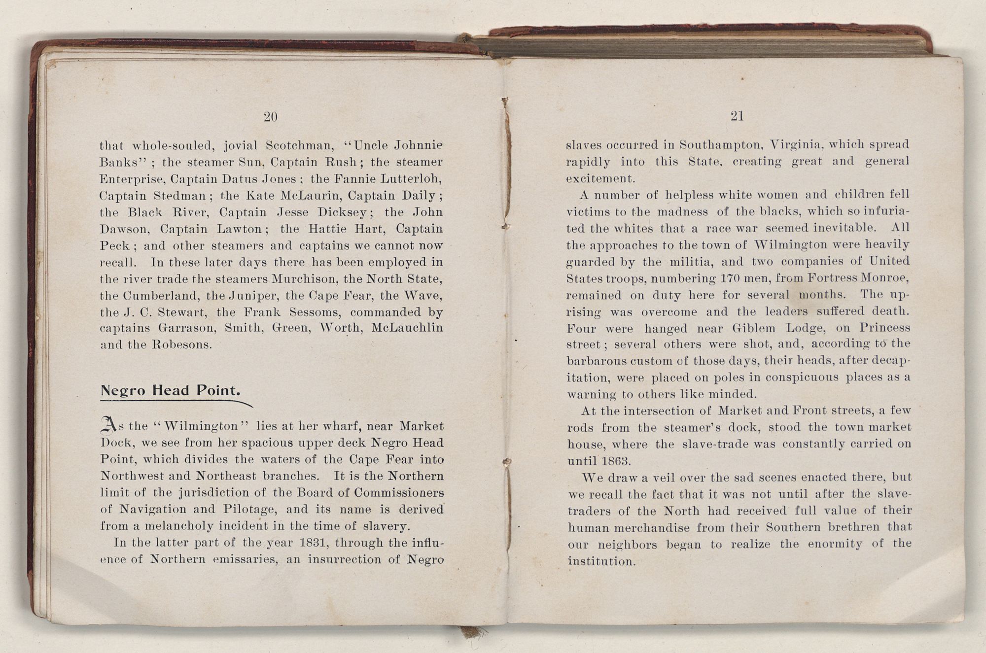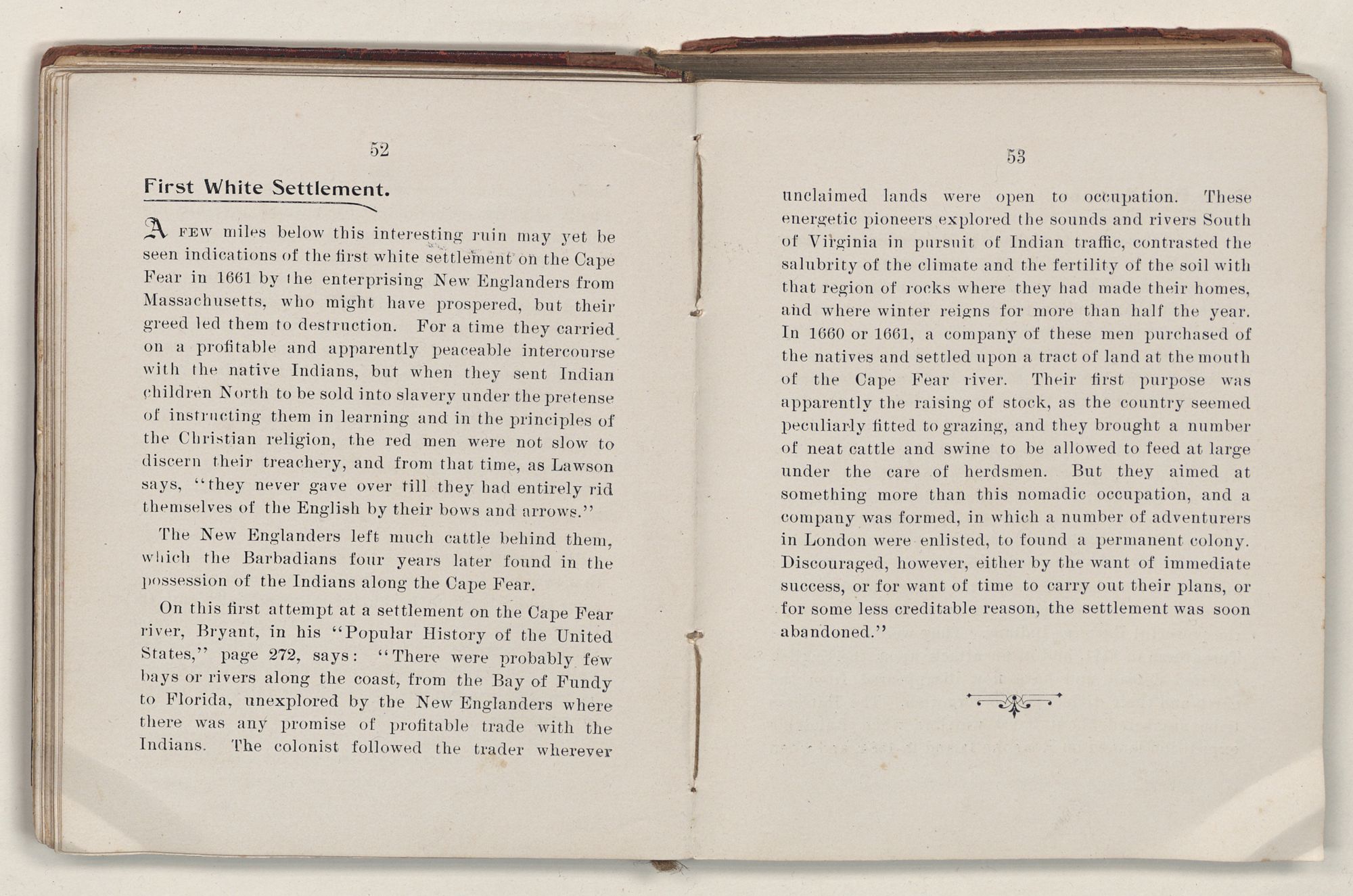 PREFACE.THIS little guide book, prepared perhaps too hastily, was undertaken six weeks ago as a compliment to Captain John W. Harper, of the Steamer “Wilmington,” by one who treasures the memories of the Lower Cape Fear, and who has tried to catch the vanishing lines of its history and traditions for the benefit of those who may not be unmindful of the annals of a brave and generous people.