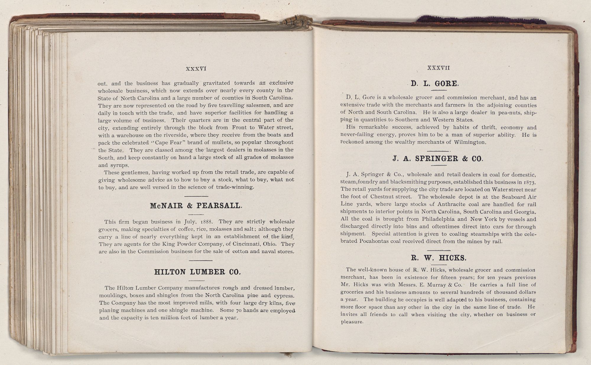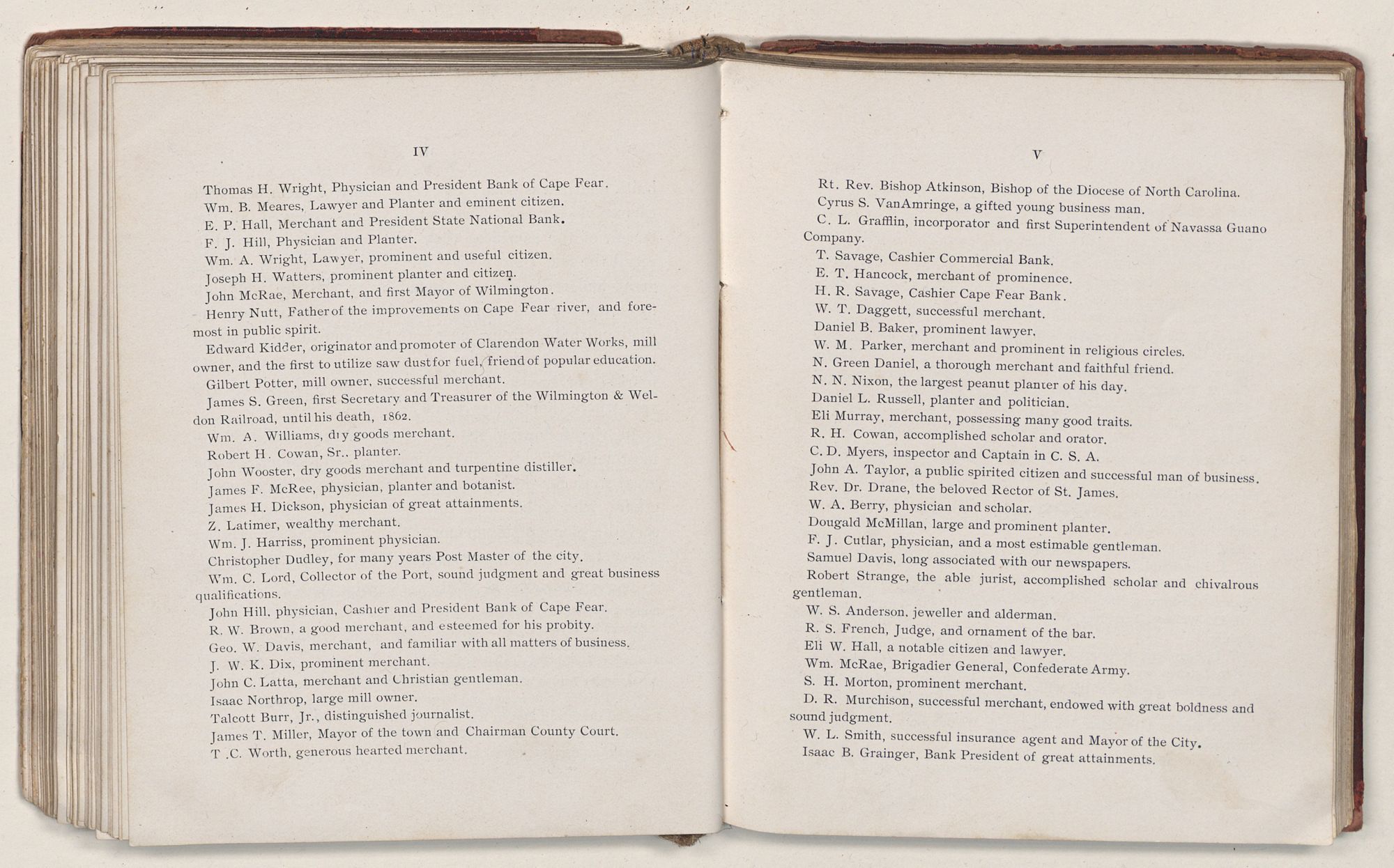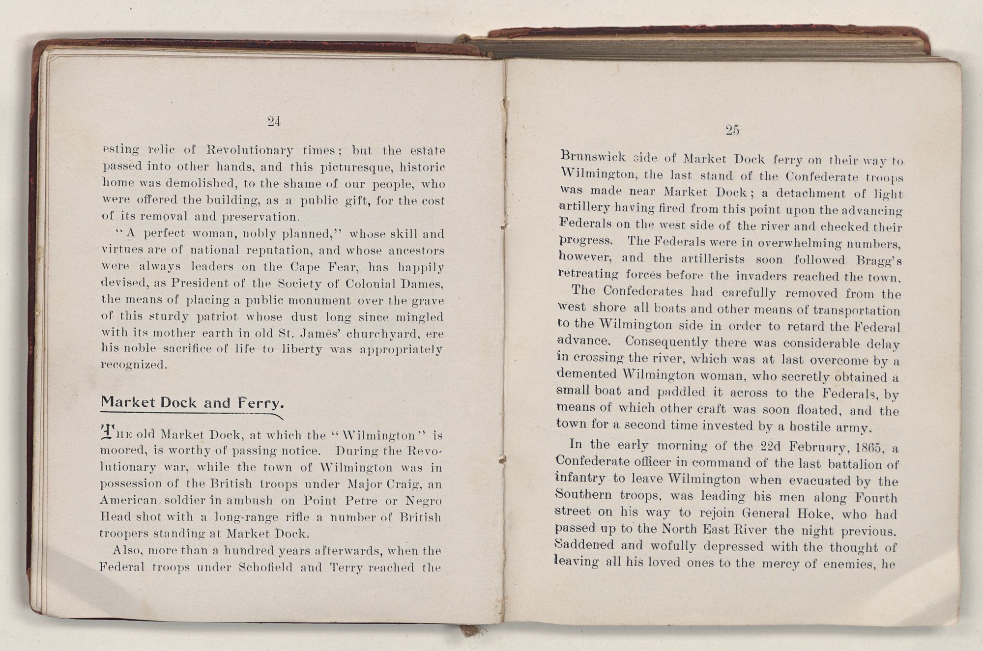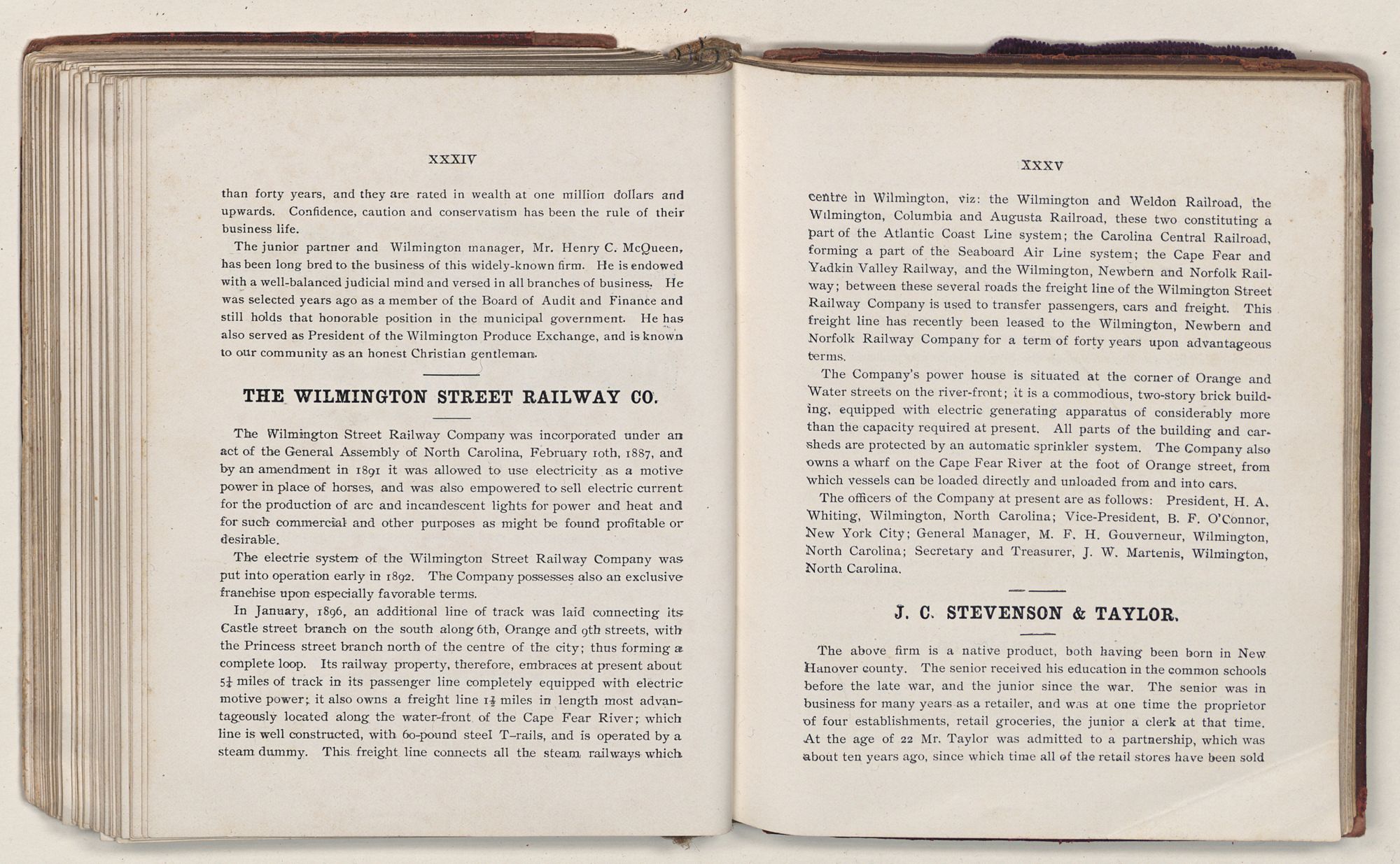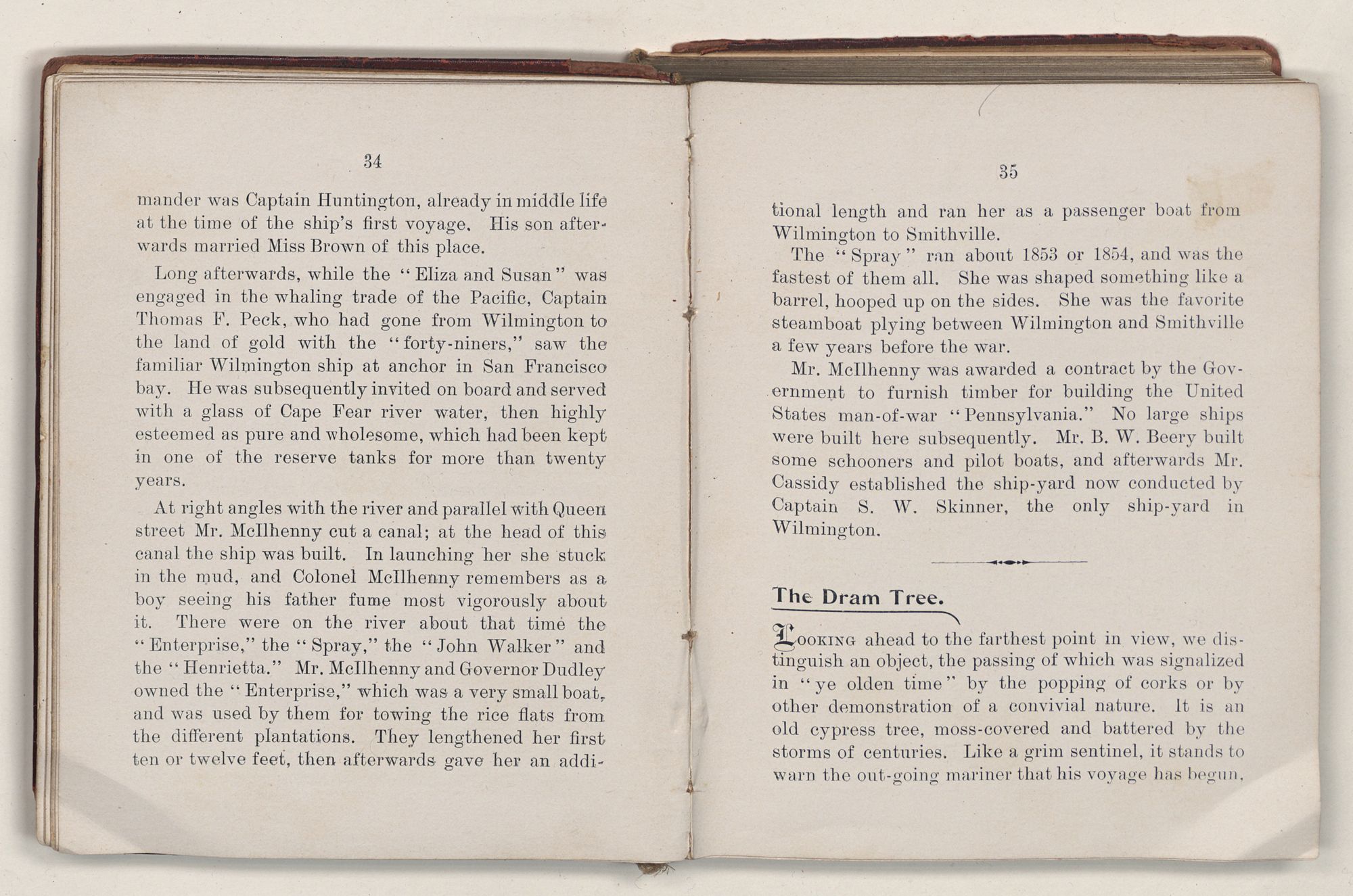 THE steamer “Wilmington” is a model of marine architecture, combining spacious and comfortable passenger accommodations with the greatest speed attained by steam craft on the Cape Fear river. Her clean decks and tidy saloons afford the bracing outside air, or the restful seclusion which invites repose. The daily run to and from Southport is made in two hours, including all river landings; and the object of this little book is to interest and amuse the traveller by a concise description of Wilmington business enterprise and local scenery, contrasting the record of the present busy age with the history and traditions of long ago.