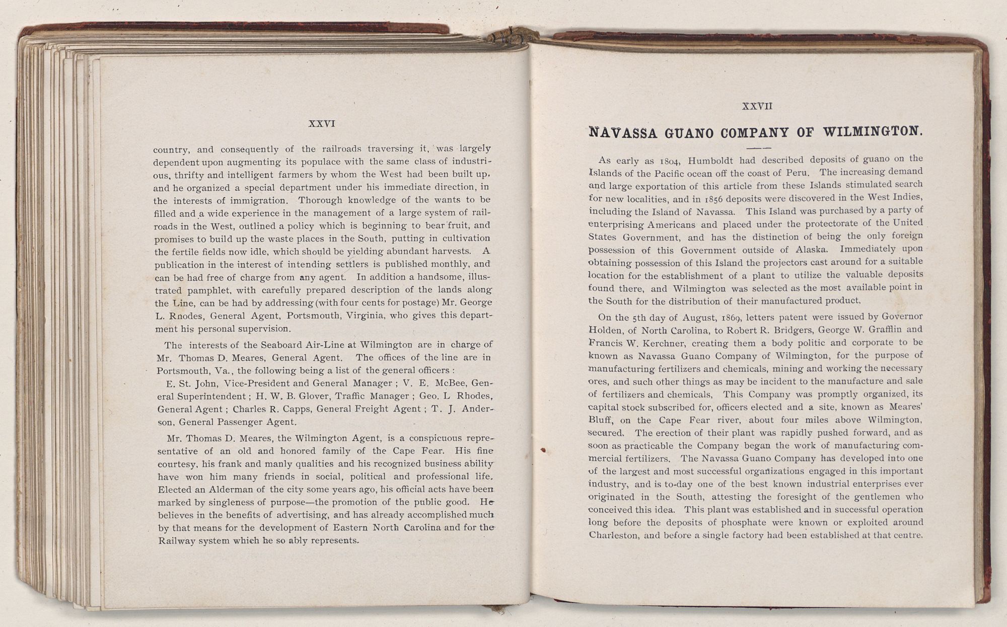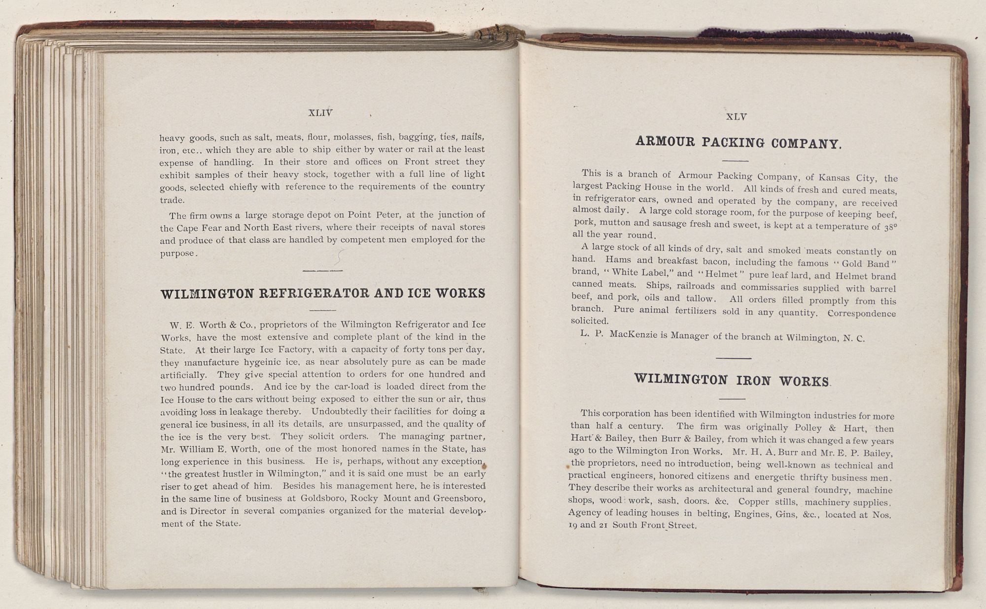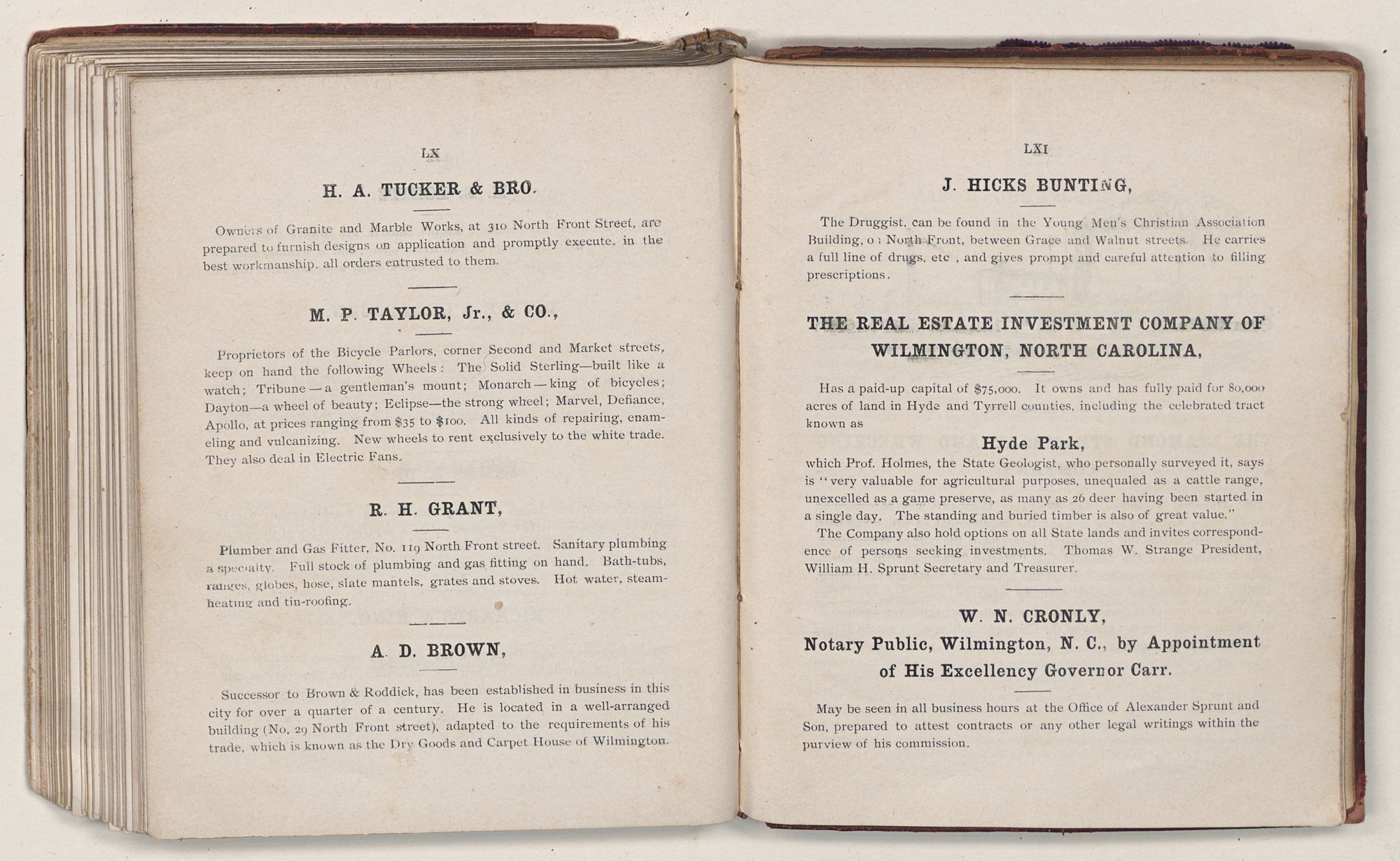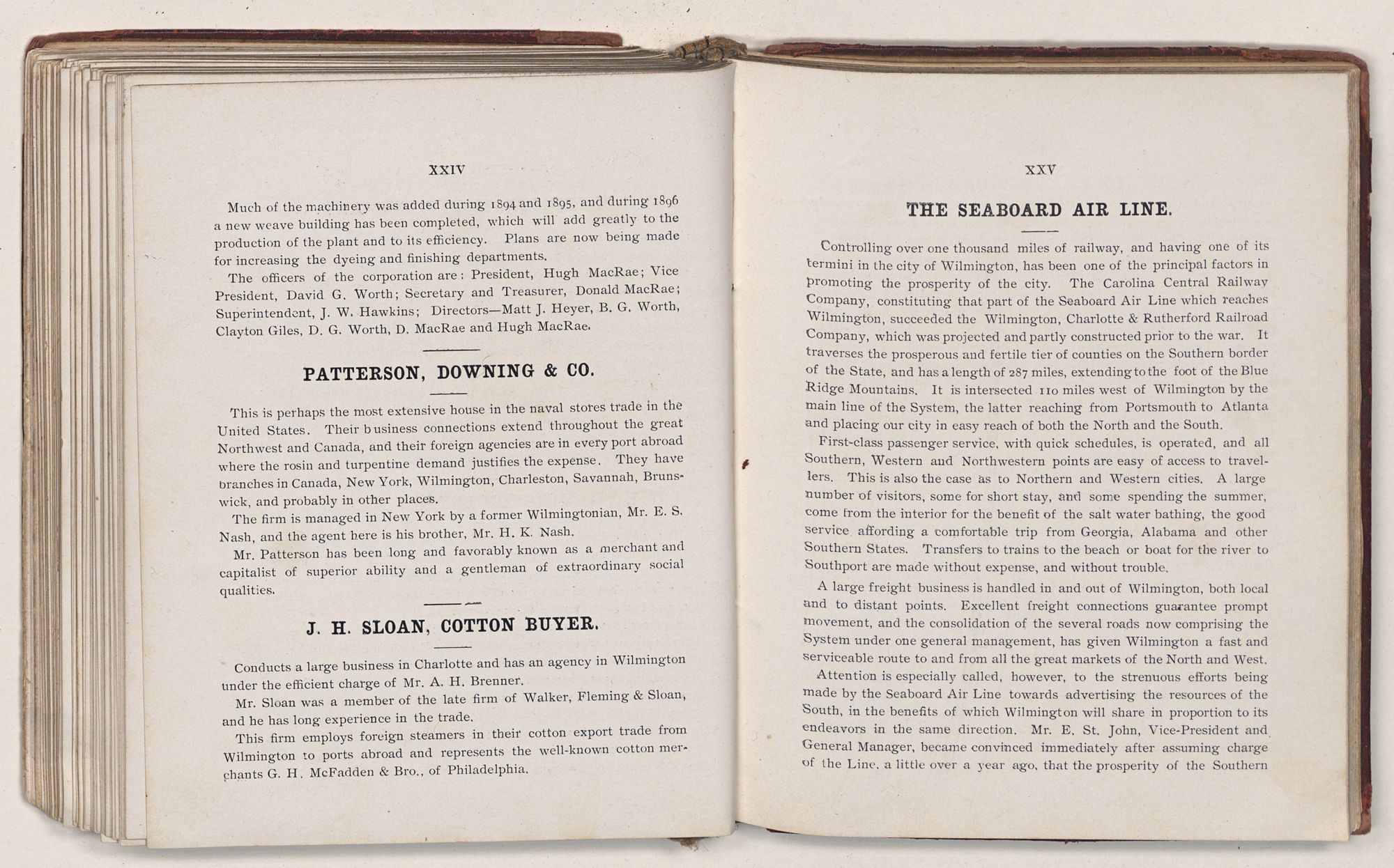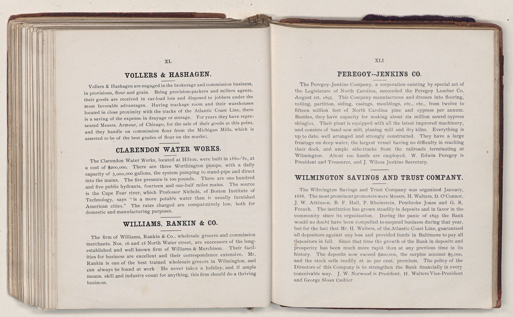 THE steamer “Wilmington” is a model of marine architecture, combining spacious and comfortable passenger accommodations with the greatest speed attained by steam craft on the Cape Fear river. Her clean decks and tidy saloons afford the bracing outside air, or the restful seclusion which invites repose. The daily run to and from Southport is made in two hours, including all river landings; and the object of this little book is to interest and amuse the traveller by a concise description of Wilmington business enterprise and local scenery, contrasting the record of the present busy age with the history and traditions of long ago.
