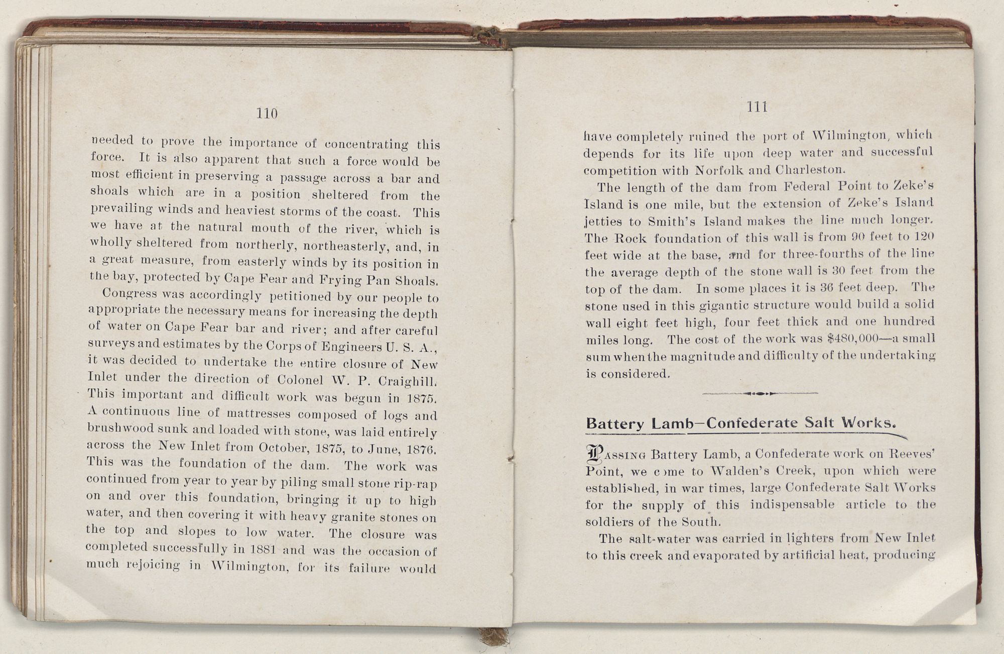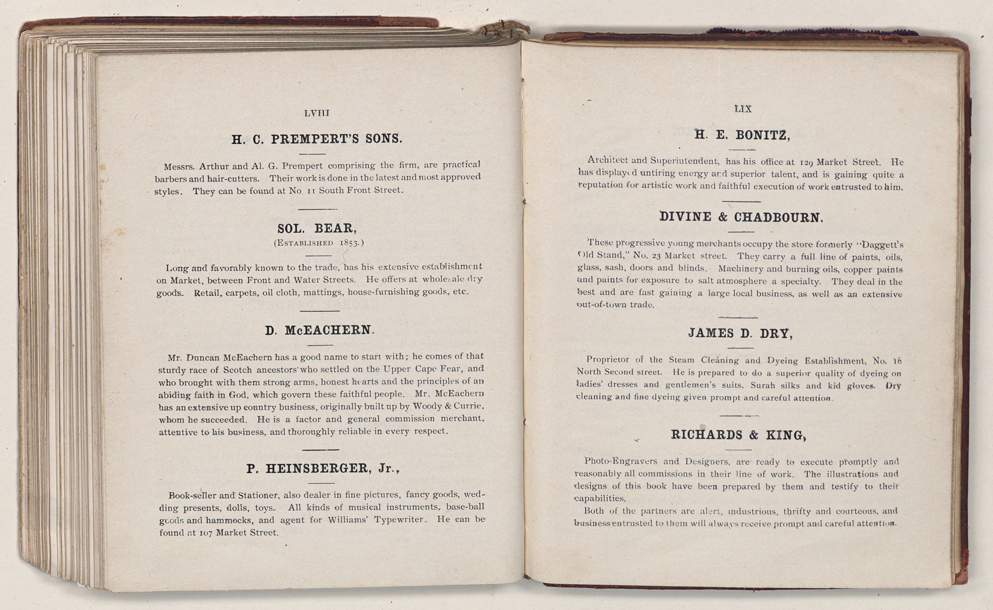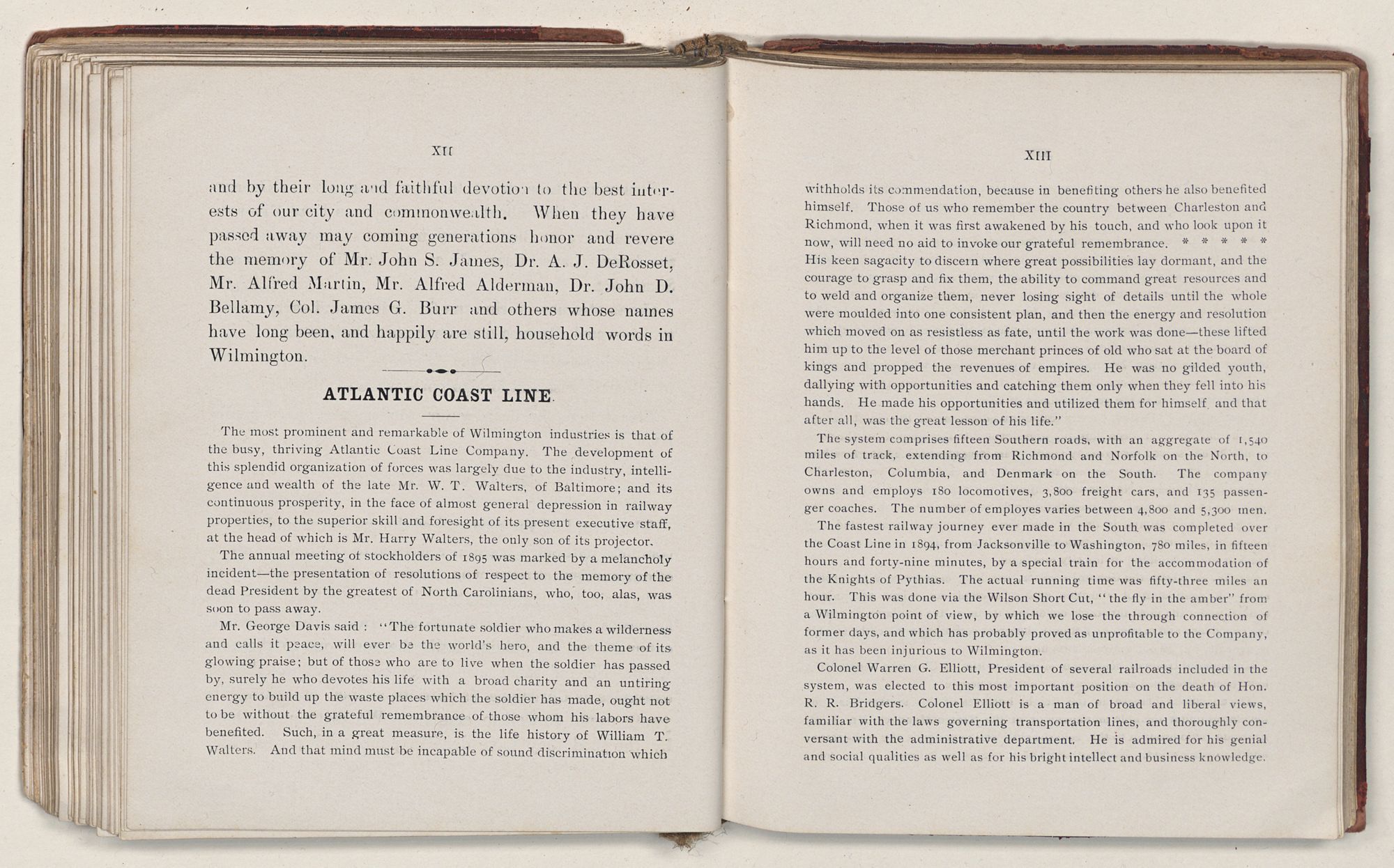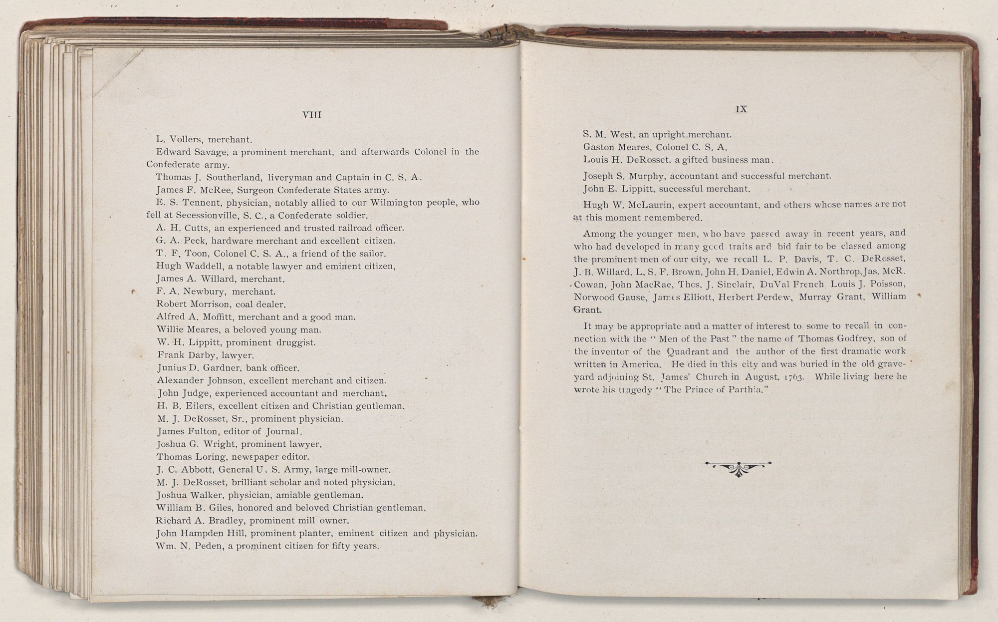 THE steamer “Wilmington” is a model of marine architecture, combining spacious and comfortable passenger accommodations with the greatest speed attained by steam craft on the Cape Fear river. Her clean decks and tidy saloons afford the bracing outside air, or the restful seclusion which invites repose. The daily run to and from Southport is made in two hours, including all river landings; and the object of this little book is to interest and amuse the traveller by a concise description of Wilmington business enterprise and local scenery, contrasting the record of the present busy age with the history and traditions of long ago.