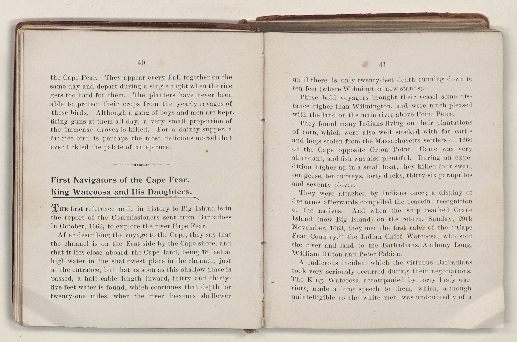 | First Navigators of the Cape Fear—King Watcoosa and his Daughters | 40 |