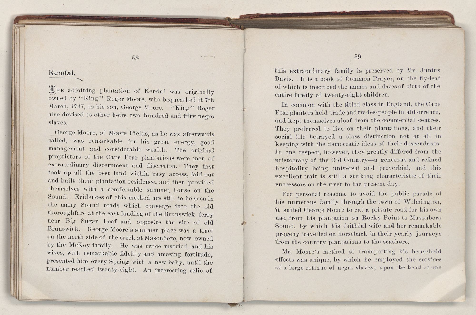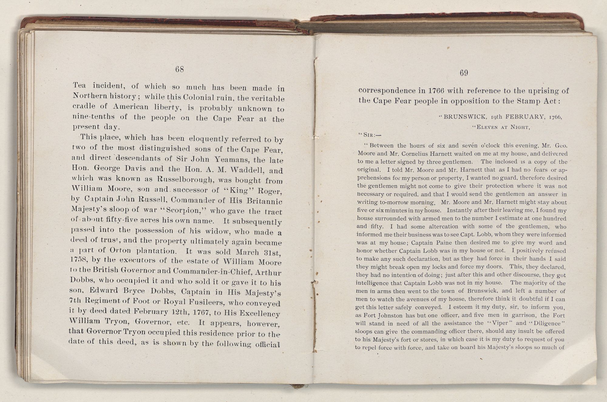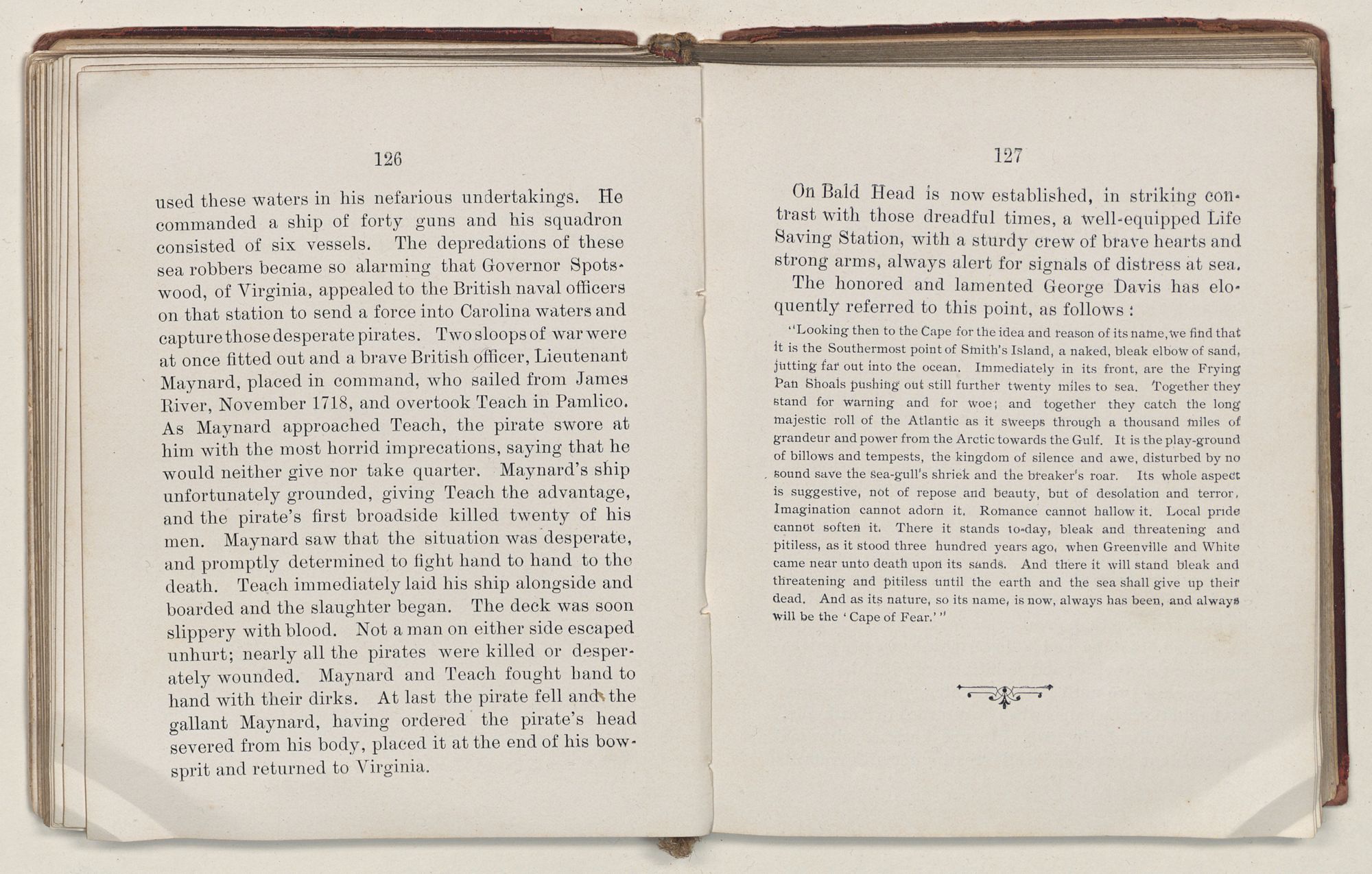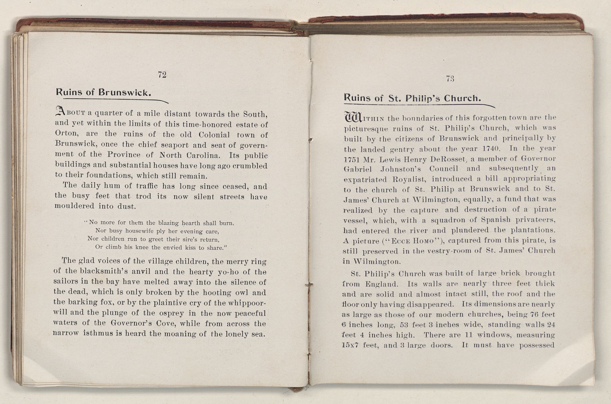 It contains much to entertain, and shows how a diligent explorer and a competent writer can gather forgotten and practically lost material, and so utilize it as to make it a positive source of pleasure and profit. The little volume contains over 200 pages, and is dedicated to the memory of the late Hon. George Davis in apt, felicitous phasing that says not a word too much. The “little guide book,” was prepared in six weeks, but it is well done and deserves many readers. Such a book has been long needed, and we are glad that Mr. Sprunt has taken the time to prepare it and so well. Dr. Kingsbury in Wilmington Messenger.