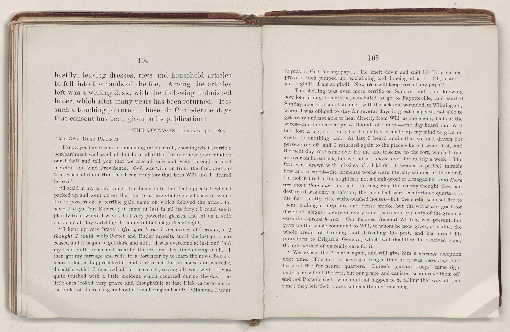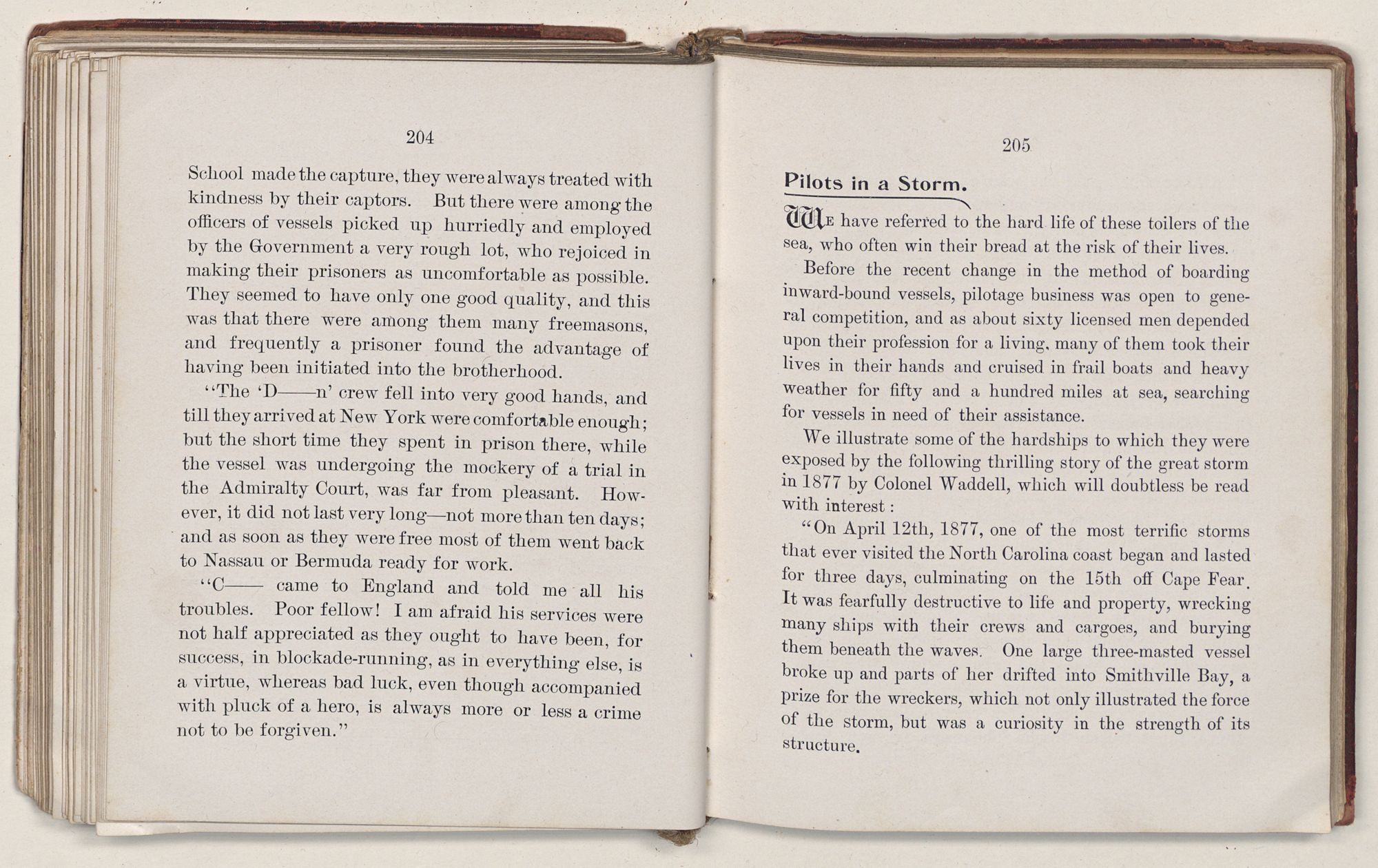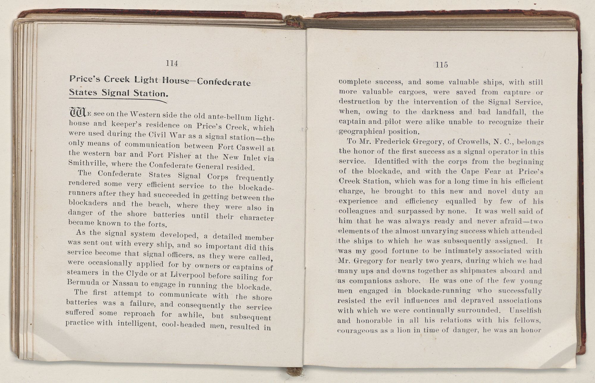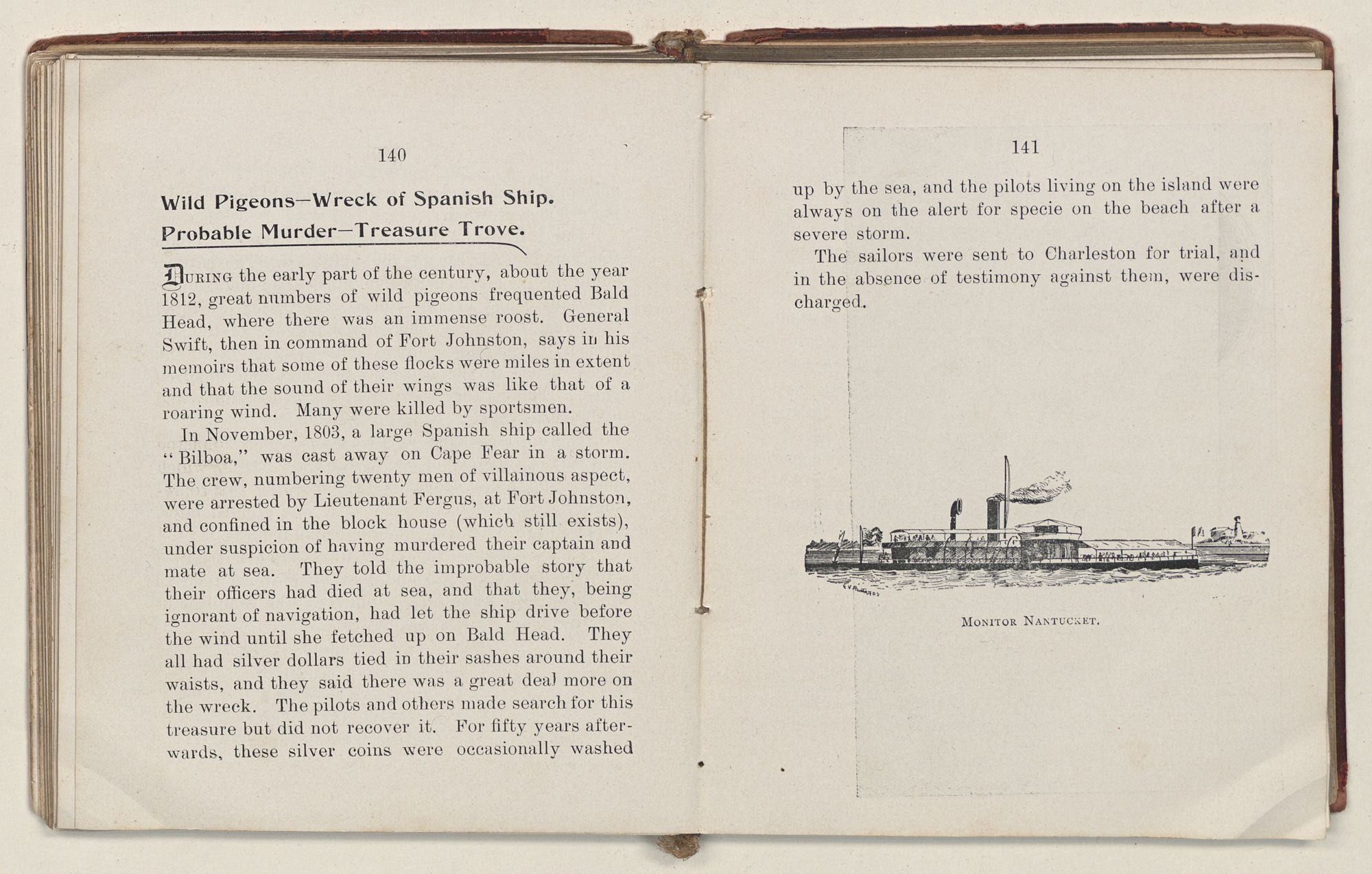 “Tales and Traditions of Lower Cape Fear is a very charming book. The writer of this note has a special fondness for persons and things of the olden time, and more and more as the years go by that are fast numbering him among them. This book then that brings to him most vividly the things that he has seen, the persons he has known, the very many things of which he has heard and not a few of which he has never conceived—all true, all interesting, all valuable, as history rescued from the oblivion into which it has almost disappeared is most highly prized. It is not a book to devour, but a book to luxuriate upon at leisure. How delightful on the broad piazza of a summer home, the broad ocean stretching out before one, while the cooling breeze refreshes the fevered brow, and the low murmur of the waves as they lasa the shore soothes and calm the care worn spirit, to read of the scenes which were almost in full view of the spot where one is sitting. In view, indeed, of the very spot where lay the Federal fleet when Fort Fisher fell, and fall in sight of the course over which the fleet blockade-runners sped when pursued by their foes.