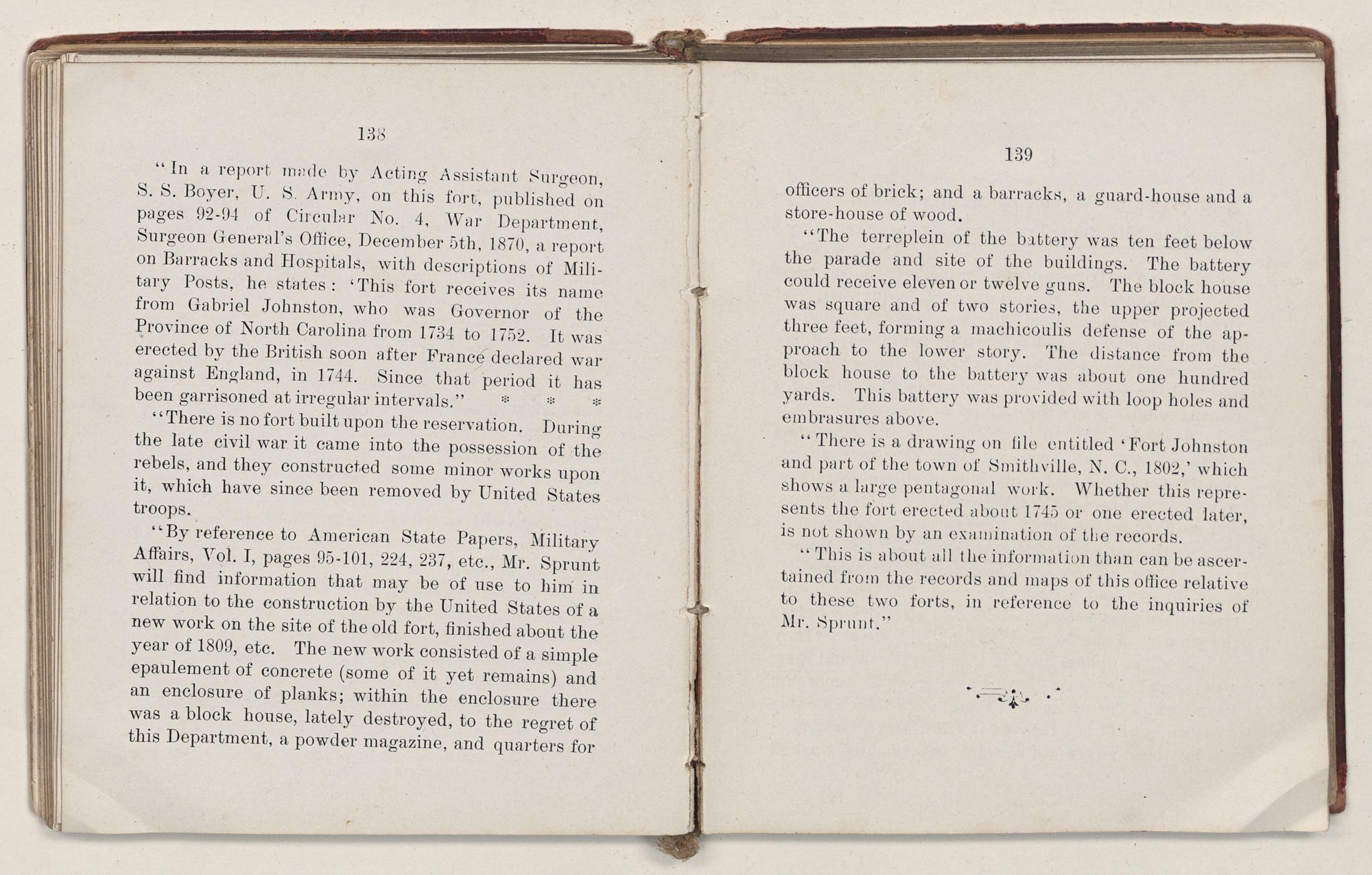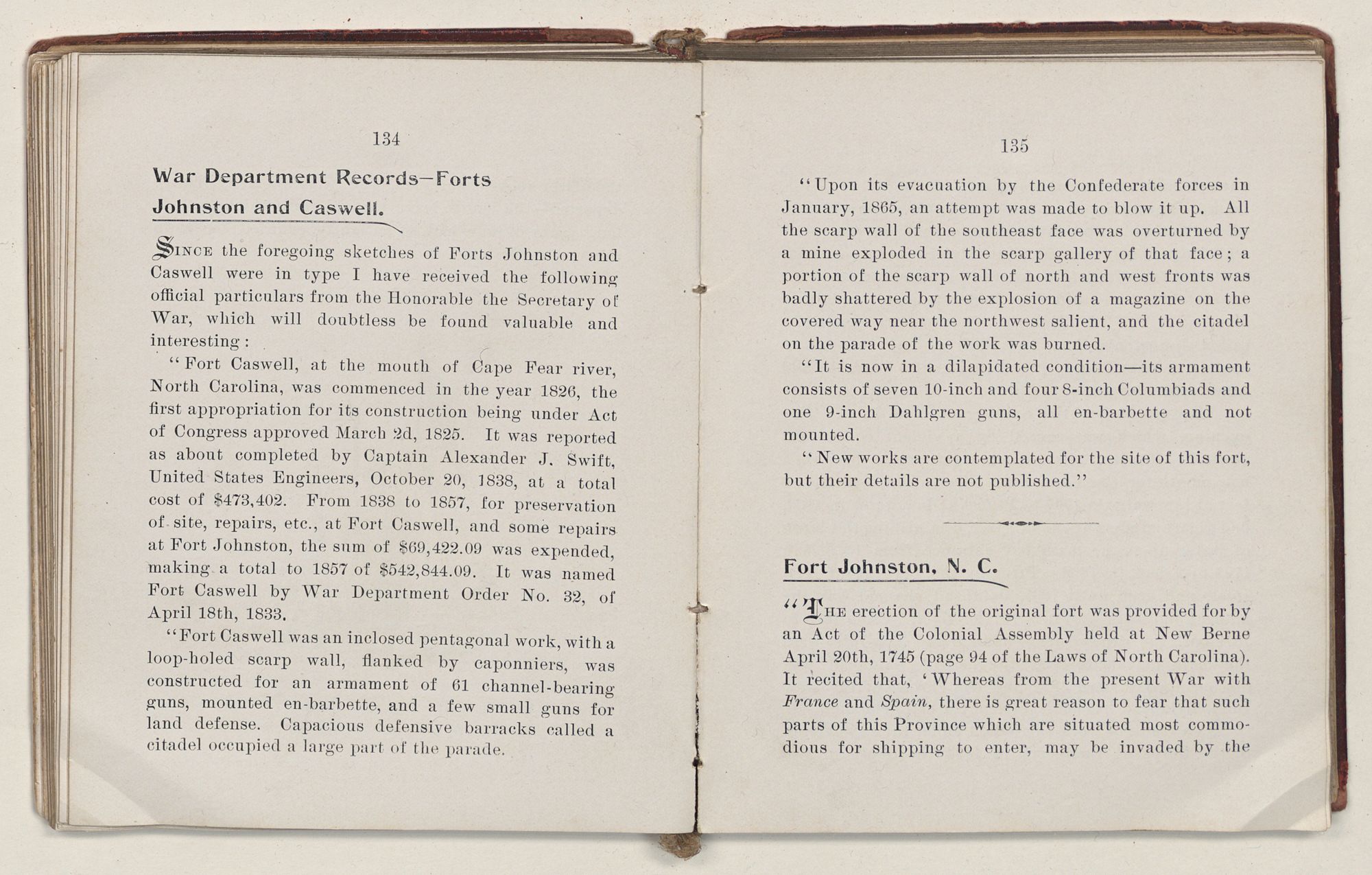 | War Department Records—Forts Johnston and Caswell | 134 |