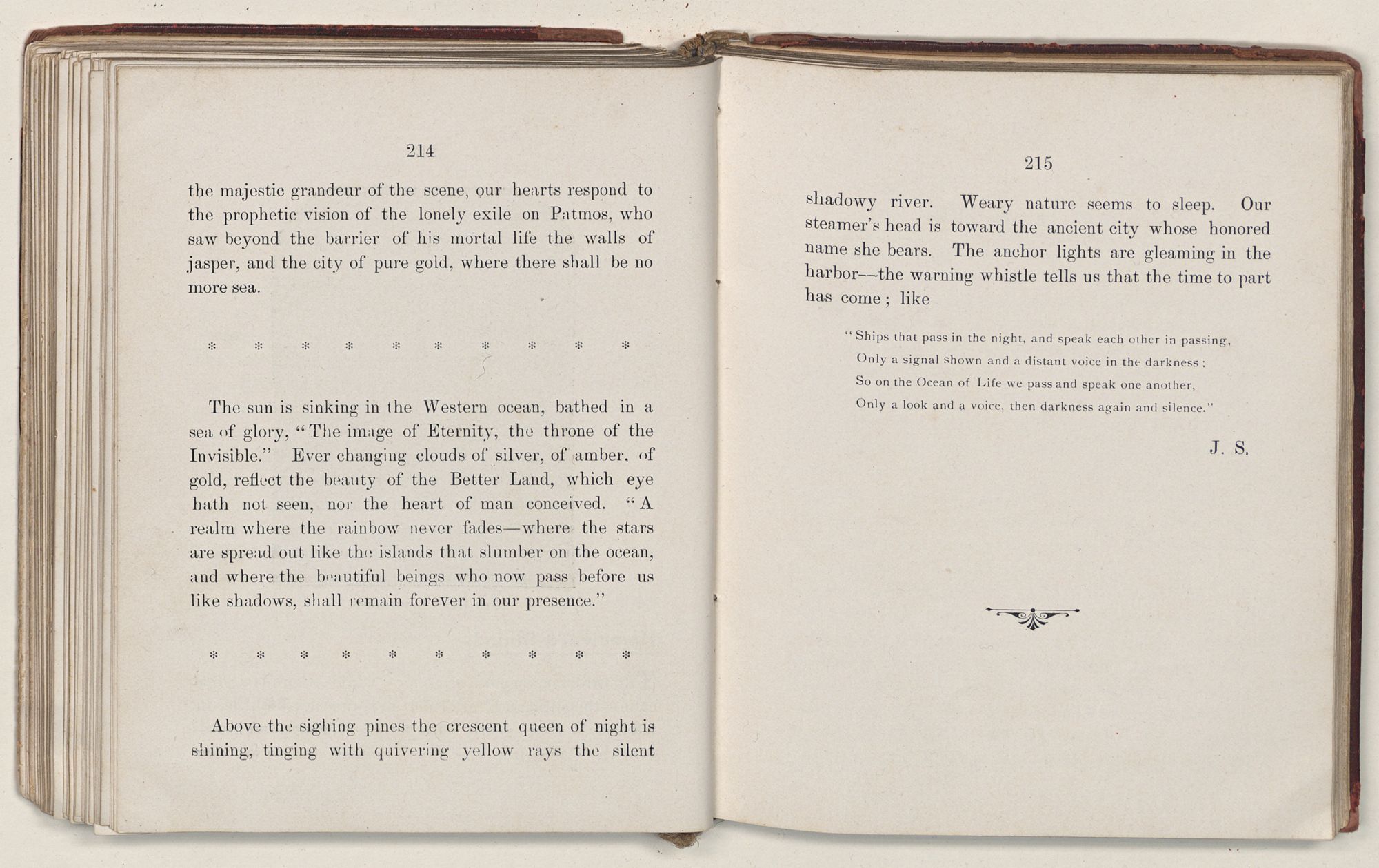 “How happy theyWho from the toil and tumult of their livesSteal to look down where naught but ocean strives.”The First Steamboat on the