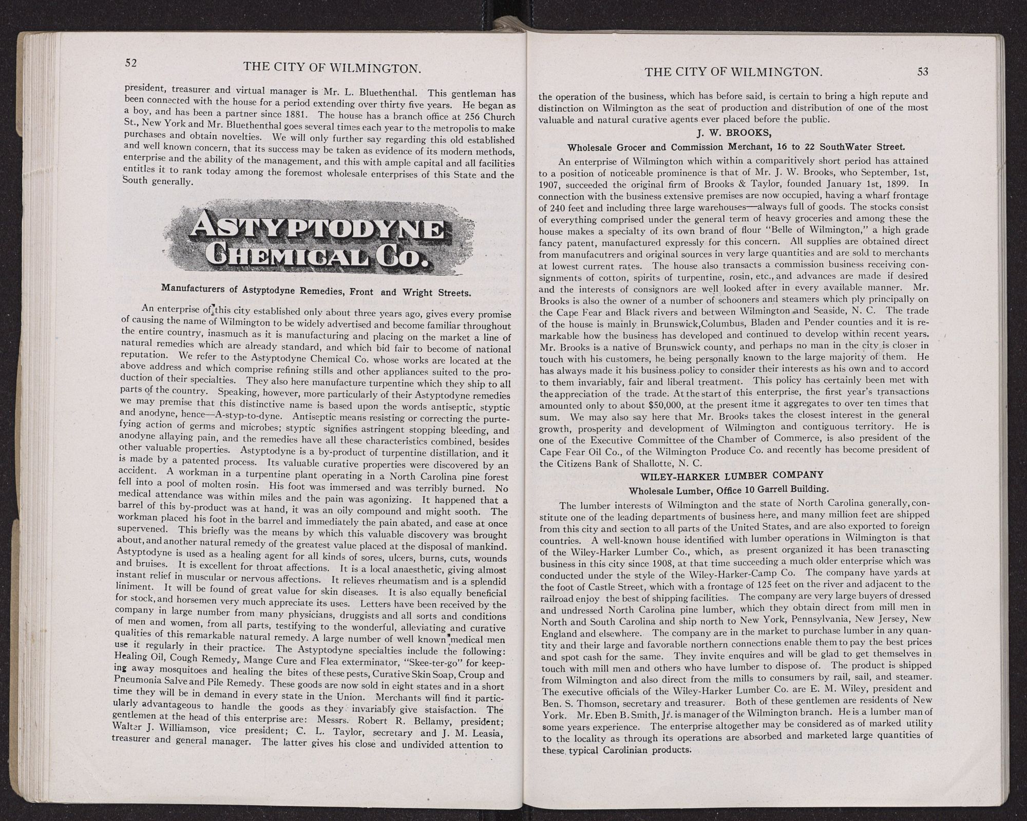 | Hyer Bros., Wholesale Grocers | 37 | Wiley-Harker Lumber Co. | 53 |
