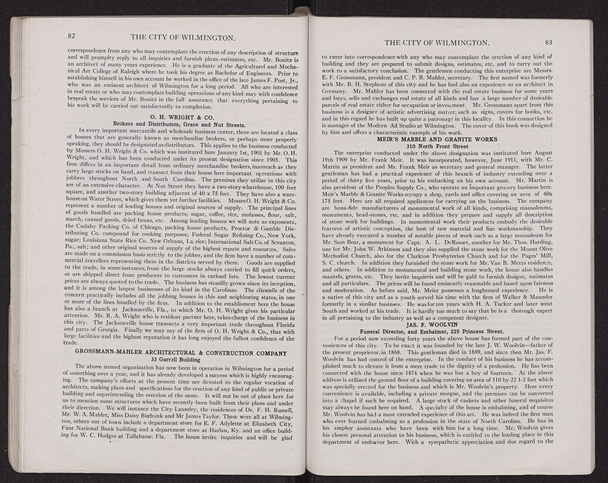 | Bear, Sol. & Co., Scuppernong, Blackberry Wines, Etc. | 95 | Meir's Marble & Granite Works | 83 |