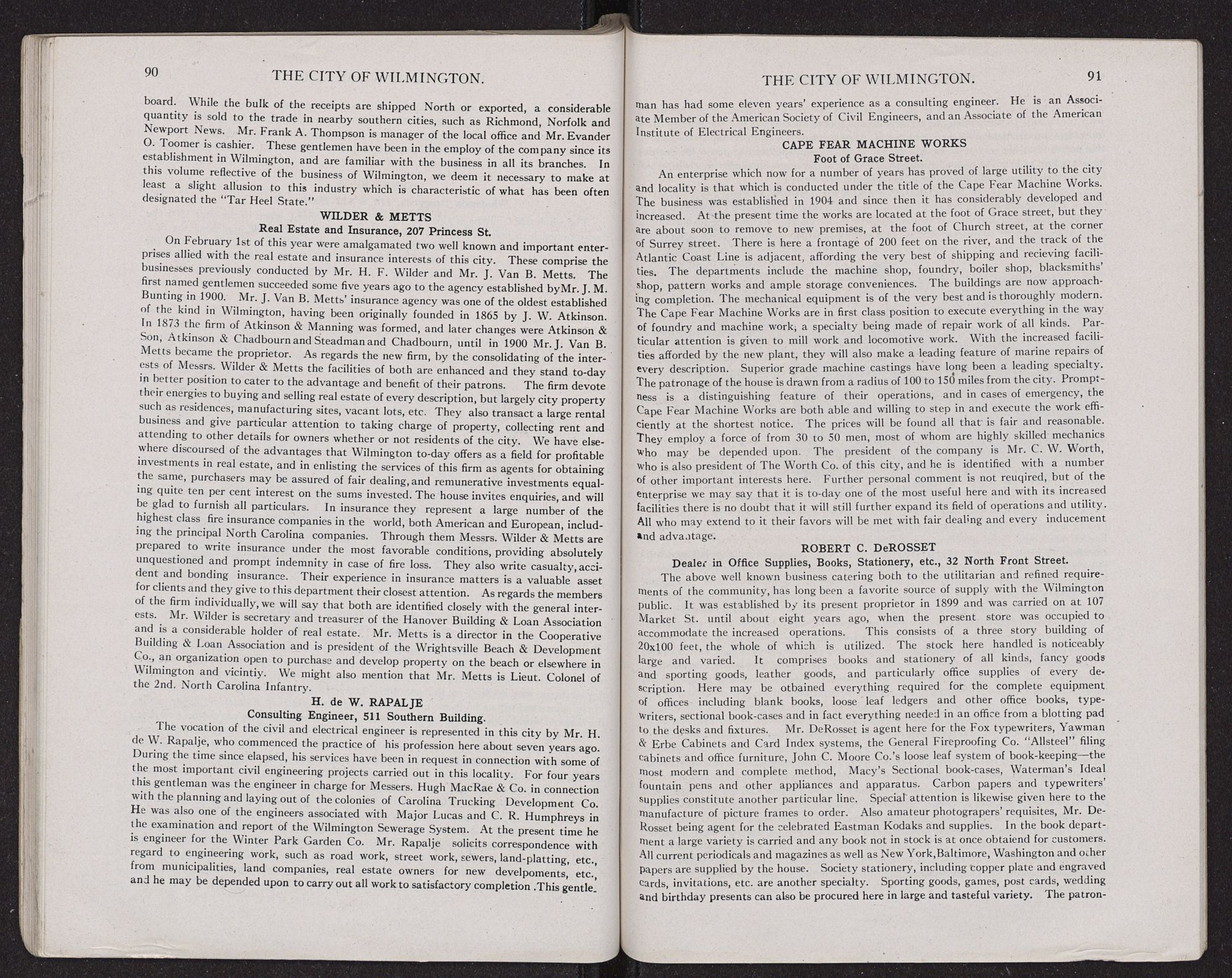 | DeRosset, Robt. C., Books, Stationery, Etc. | 91 | Roesnmann, M., & Son, Wholesale Dry Goods | 93 |