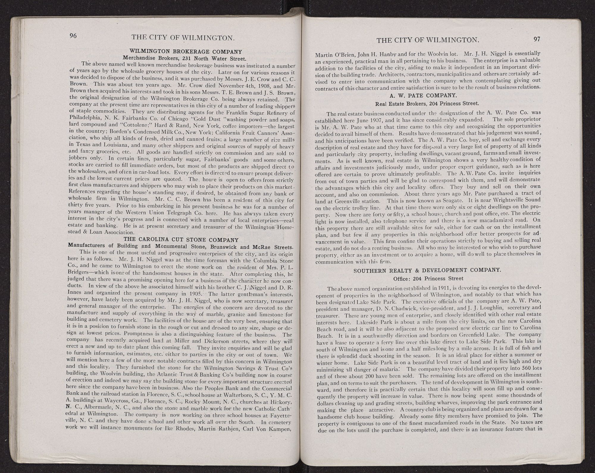 | Carolina Cut Stone Co., The | 96 | Pate, A. W., Co., Real Estate | 97 |