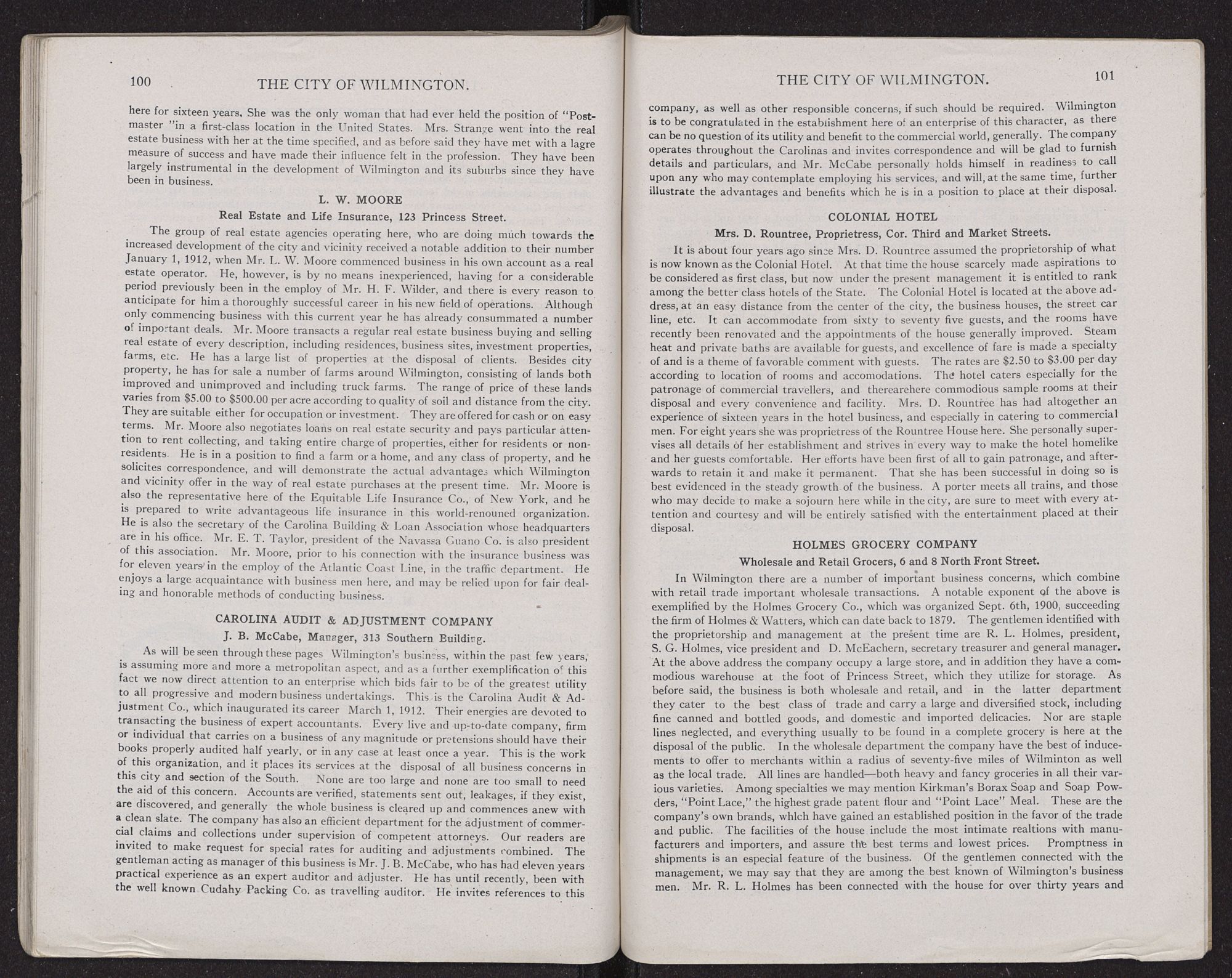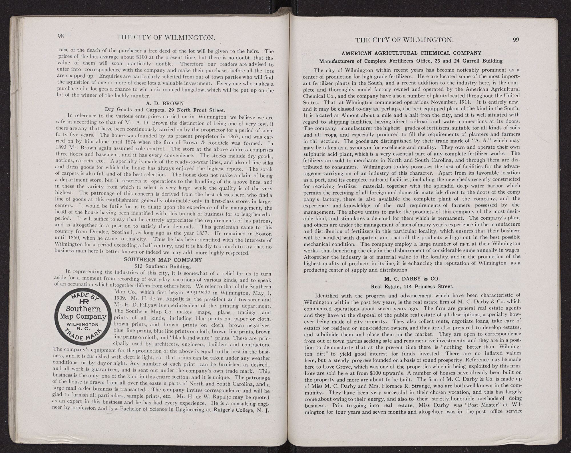 Inquiries relating to real estate and farming property should be addressed to the real estate concerns here, also to the Carolina Trucking Development Co., notices of which appear on other pages of this book.