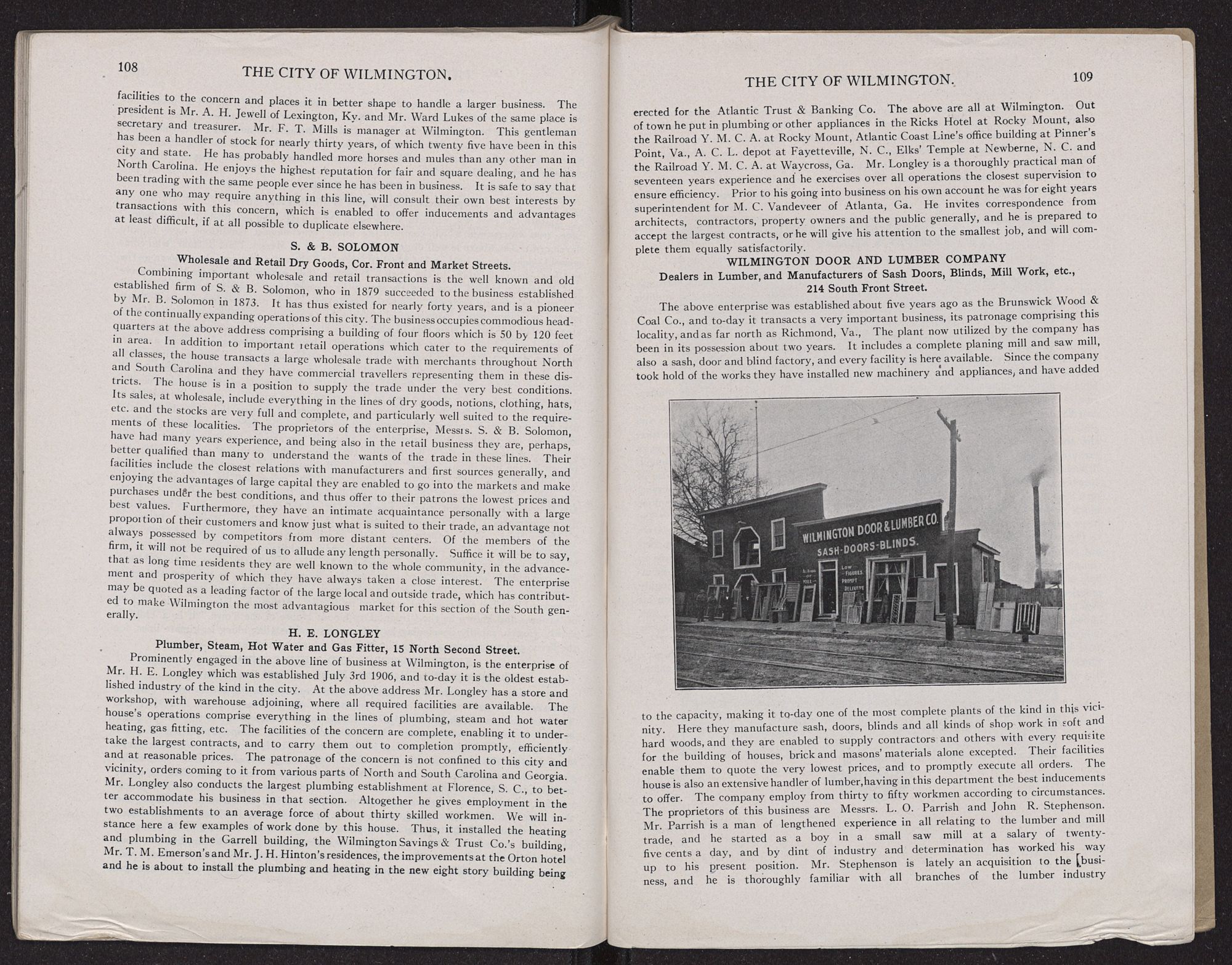 WILMINGTON DOOR AND LUMBER COMPANYDealers in Lumber, and Manufacturers of Sash Doors, Blinds, Mill Work, etc.,