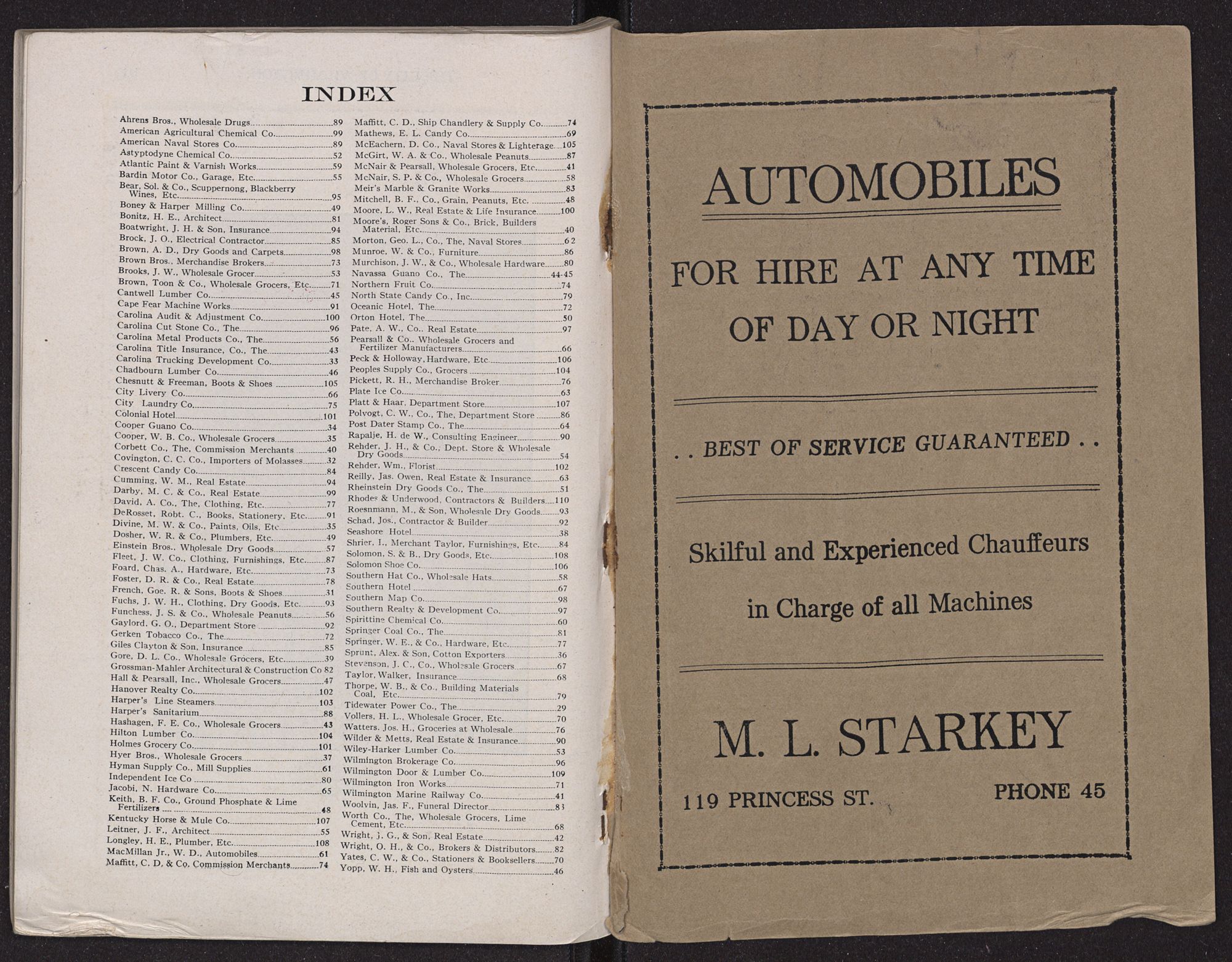 | Hyman Supply Co., Mill Supplies | 61 | Wilmington Brokerage Co. | 96 |