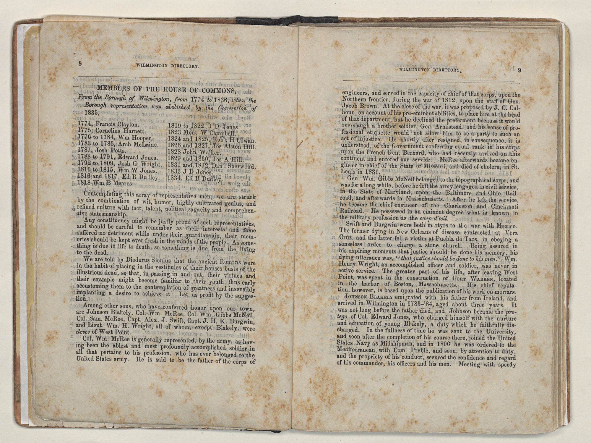 From the Borough of Wilmington, from 1774 to 1836, when the Borough representation was abolished by the Convention of 1835.