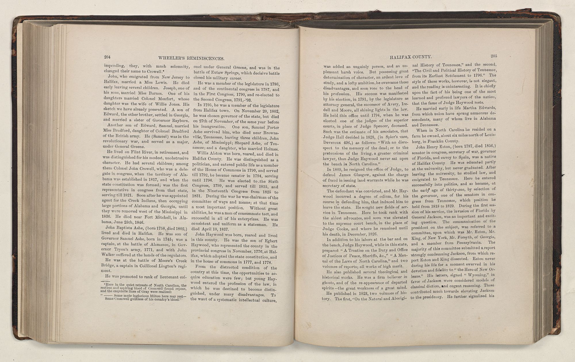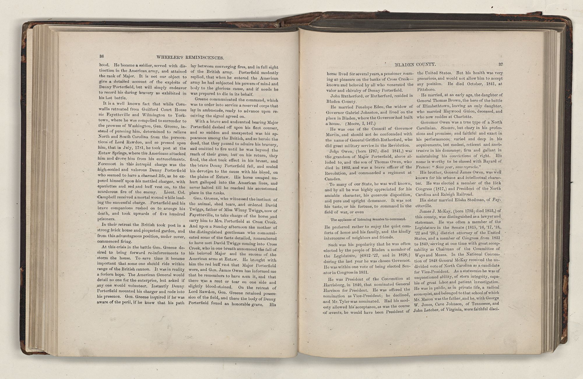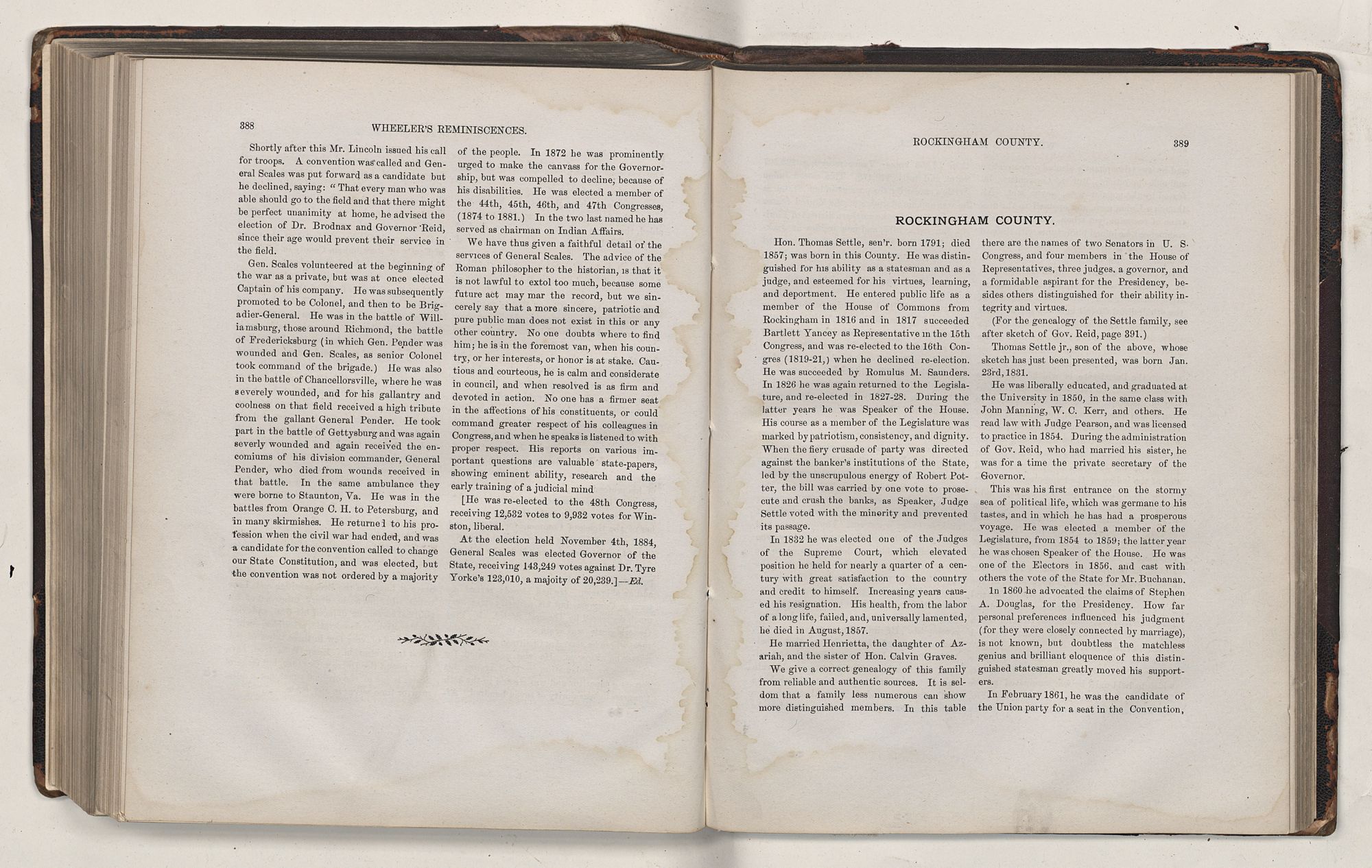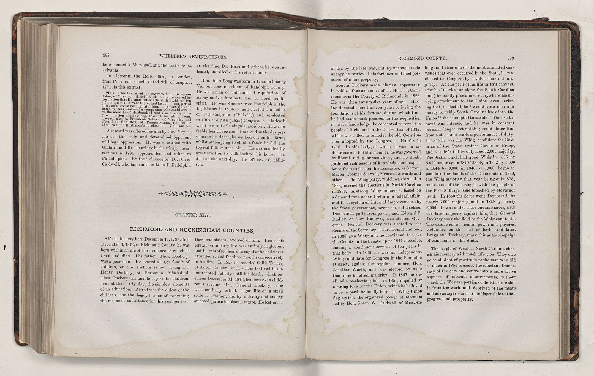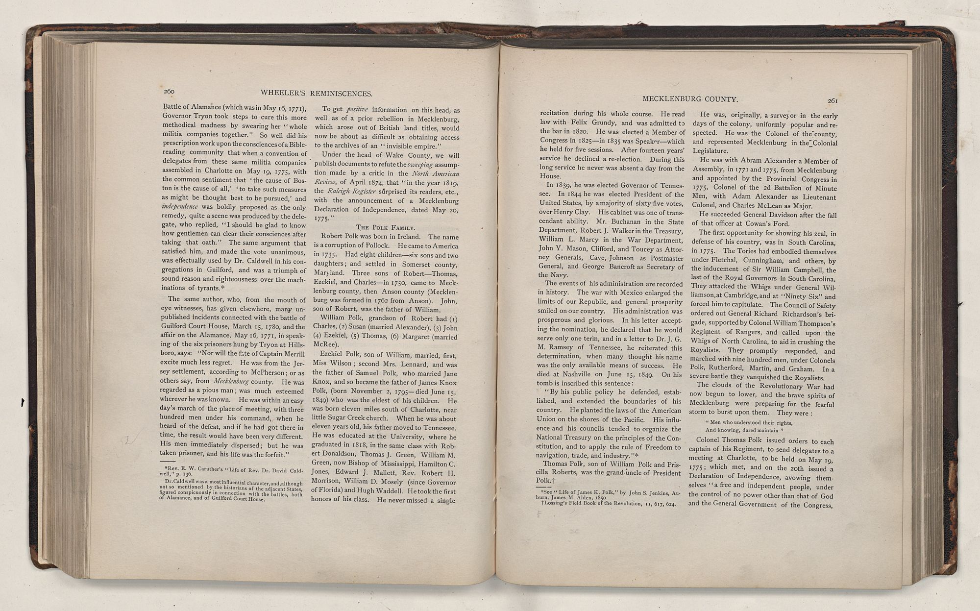 Sketch of James M. Leach of Davidson; of James Gillaspie; of Thomas and O. Kenan; of Charles Hooks of Duplin Co. Sketch of Henry Irwin, a Revolutionary hero; of Jonas Johnston; of John Haywood; genealogy of the Haywood family. Sketch of Henry T. Clark, Governor of North Carolina. The Battle Family, and their genealogy, including Judge Wm. H. Battle, and his son, Kemp P. Battle. Sketch of Duncan L. Clark, of U. S. Army; of Wm. D. Pender; of R. R. Bridgers; of Charles Price of Davie; of John B. Hussey of Davie.