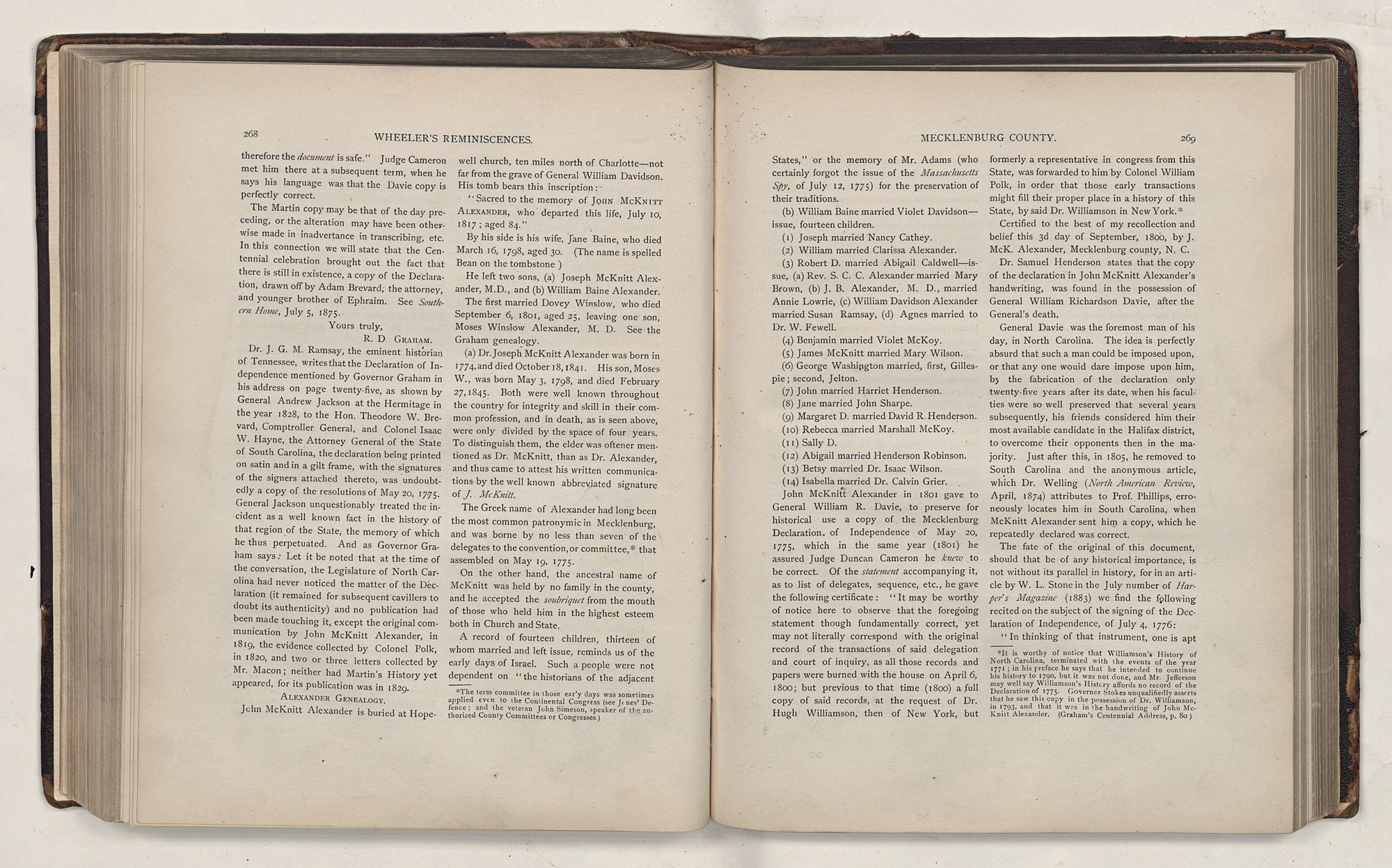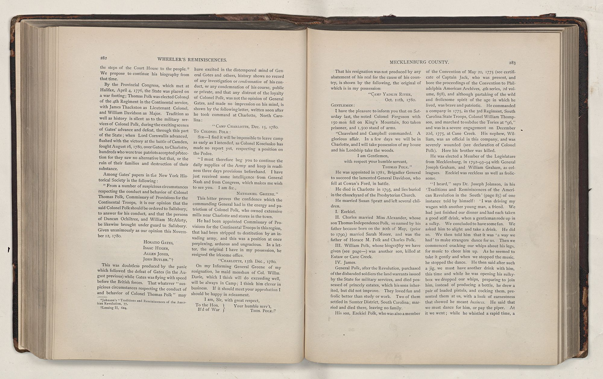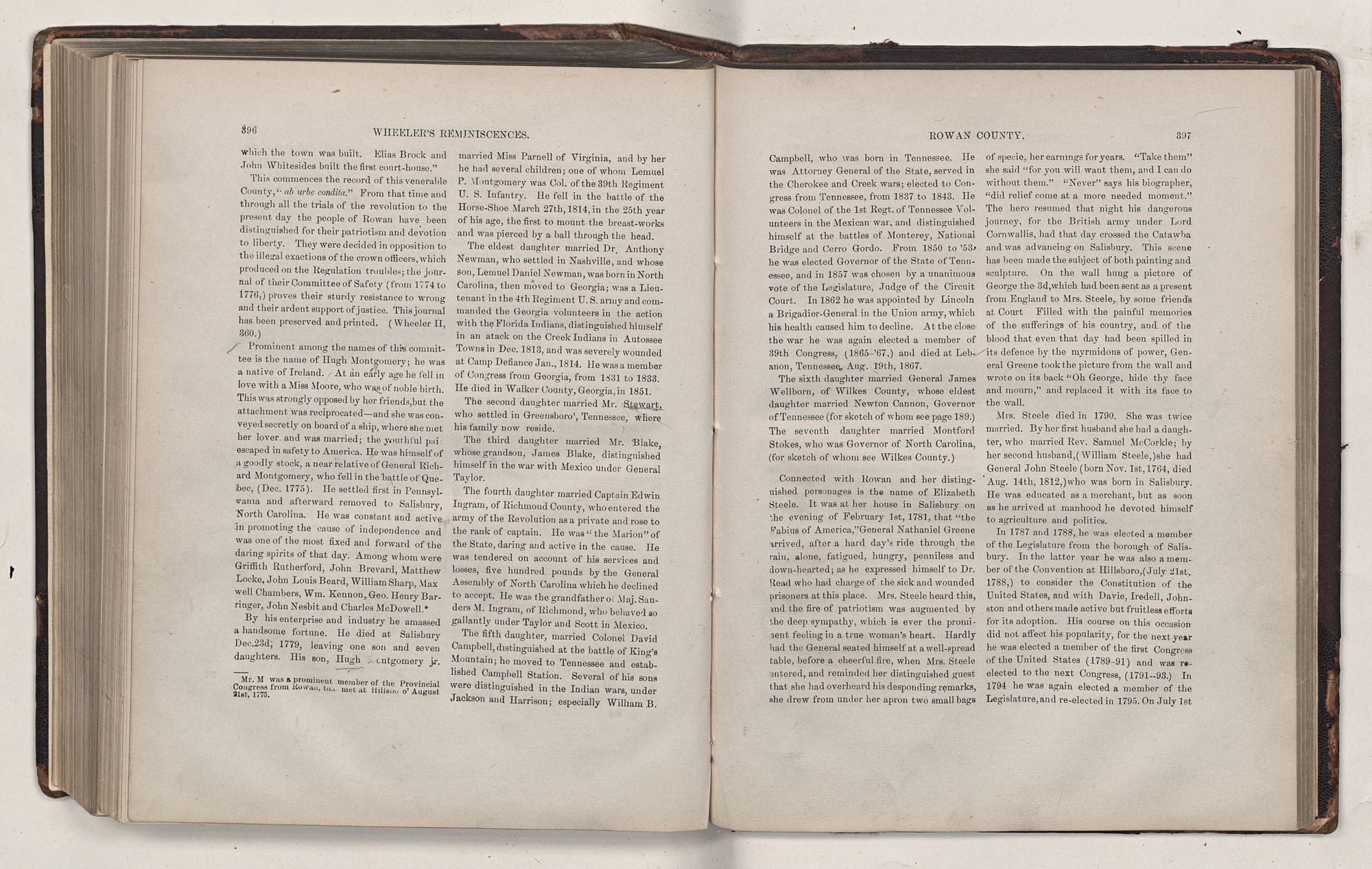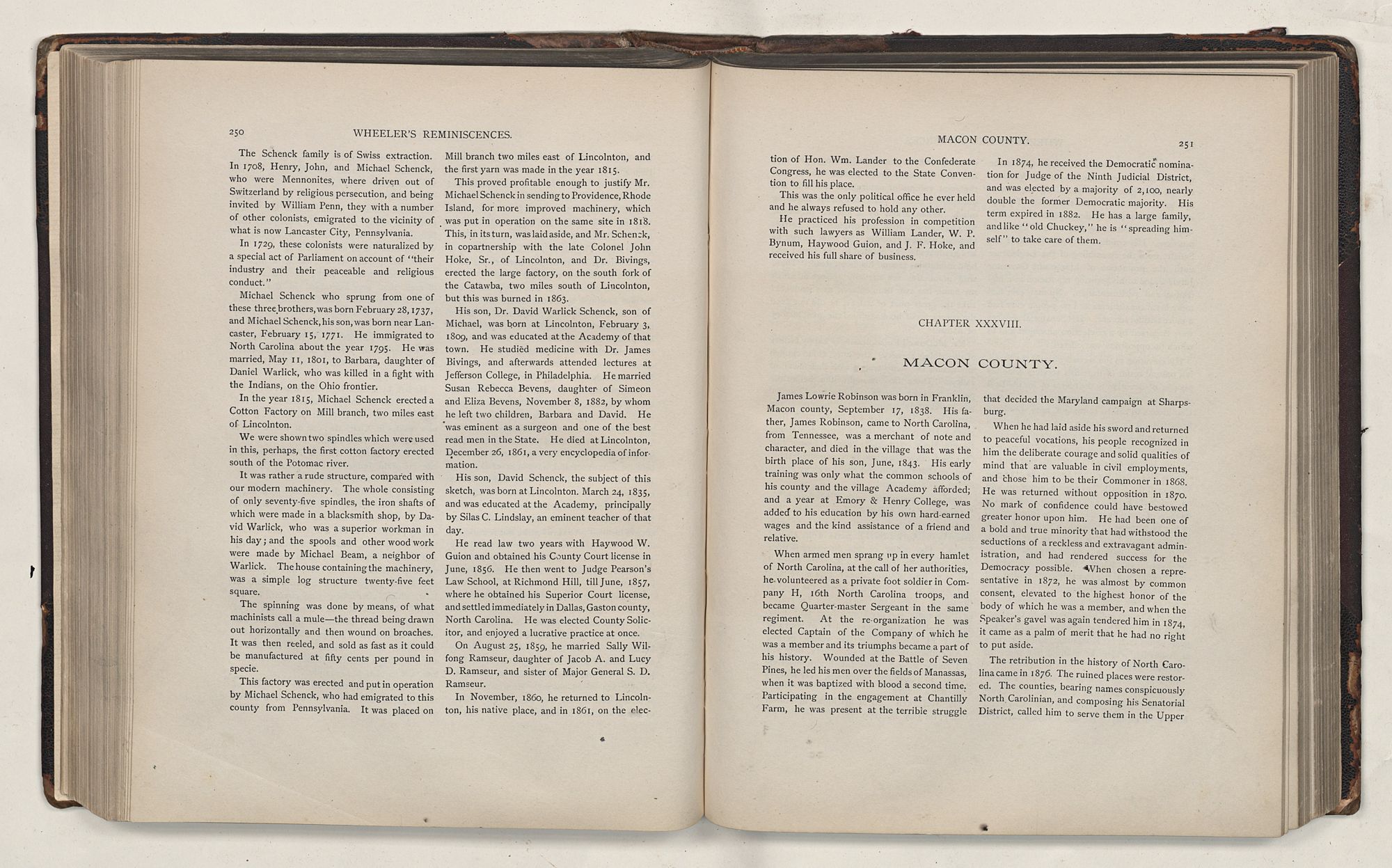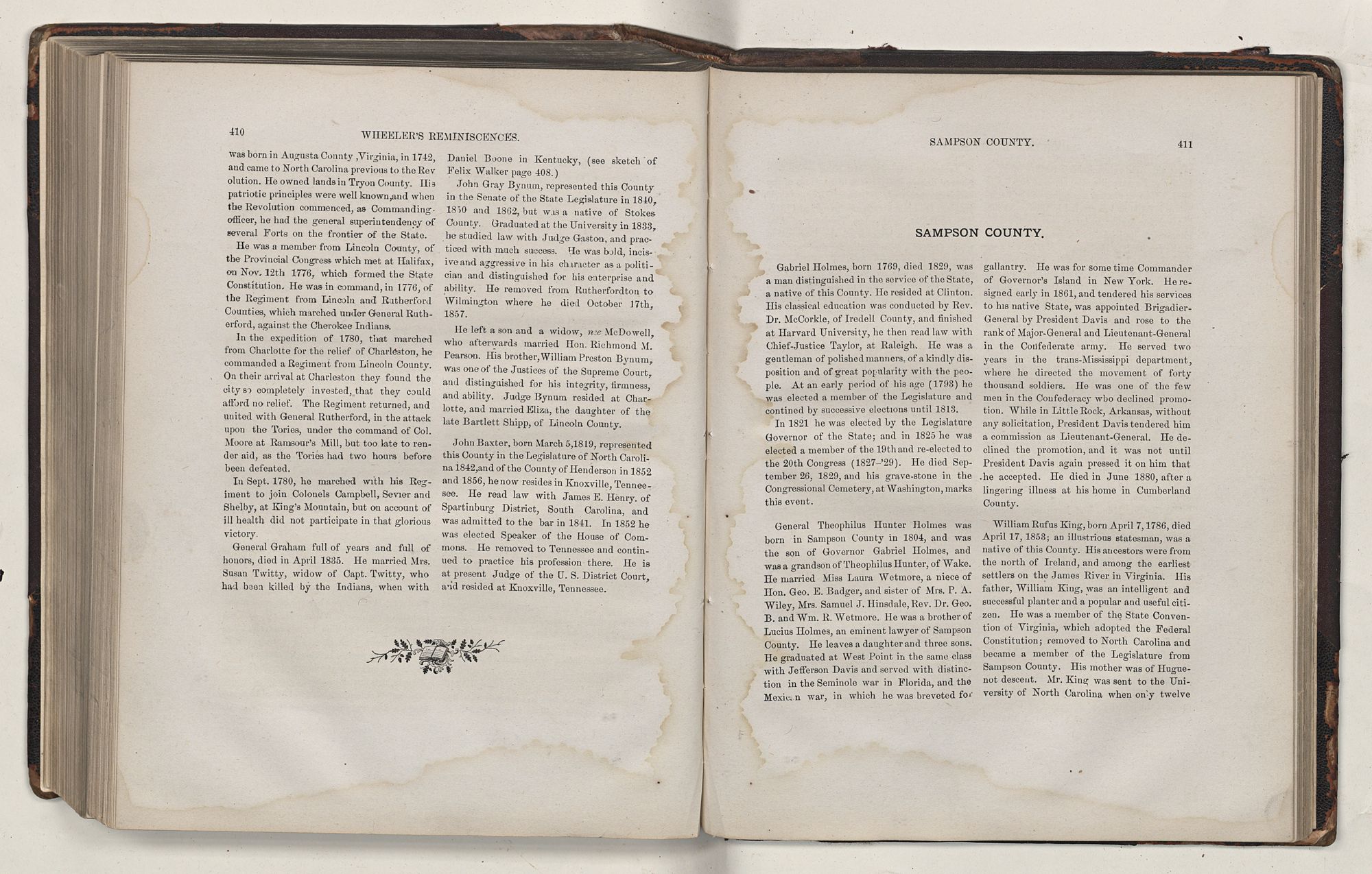 Sketch of James M. Leach of Davidson; of James Gillaspie; of Thomas and O. Kenan; of Charles Hooks of Duplin Co. Sketch of Henry Irwin, a Revolutionary hero; of Jonas Johnston; of John Haywood; genealogy of the Haywood family. Sketch of Henry T. Clark, Governor of North Carolina. The Battle Family, and their genealogy, including Judge Wm. H. Battle, and his son, Kemp P. Battle. Sketch of Duncan L. Clark, of U. S. Army; of Wm. D. Pender; of R. R. Bridgers; of Charles Price of Davie; of John B. Hussey of Davie.