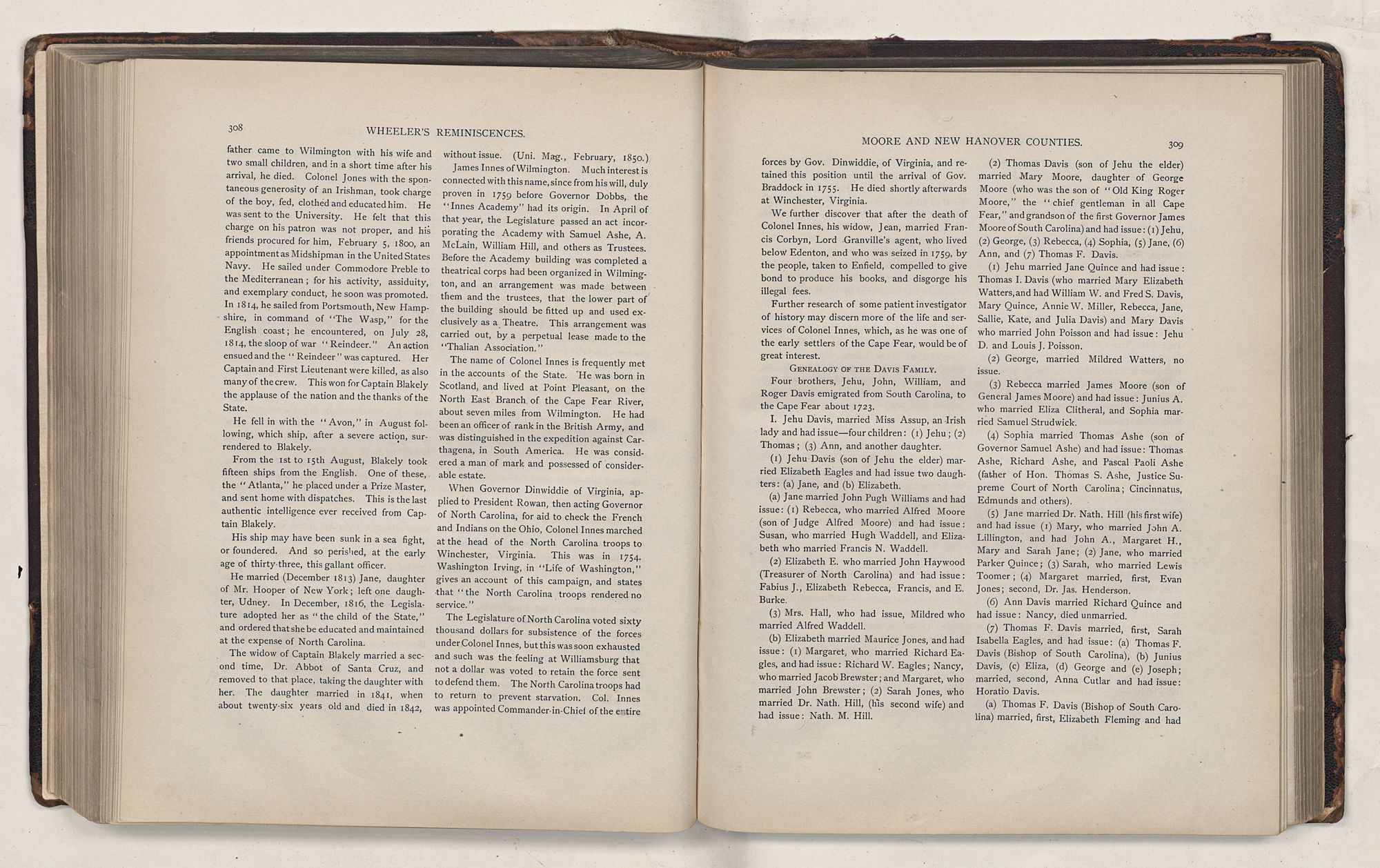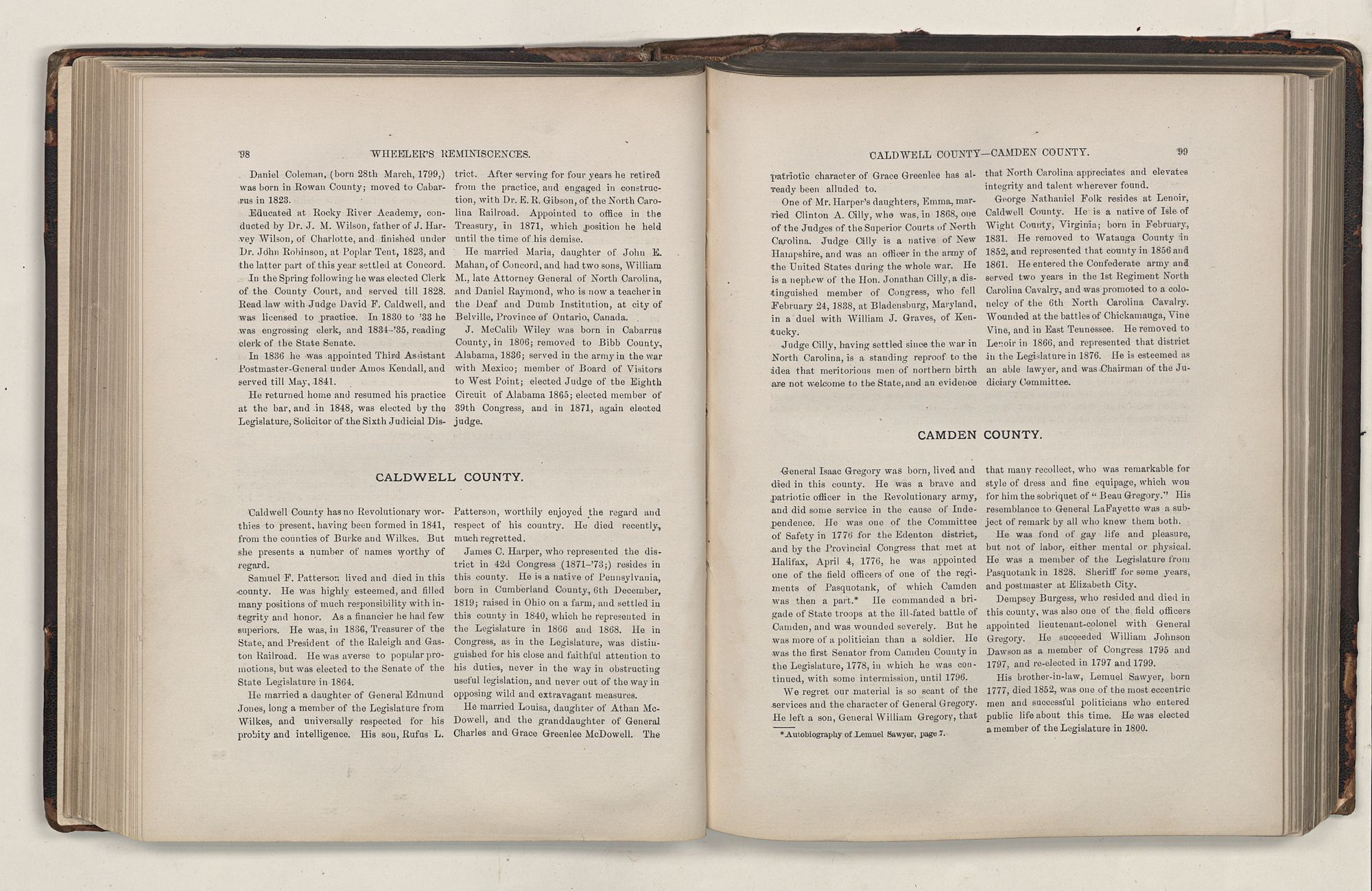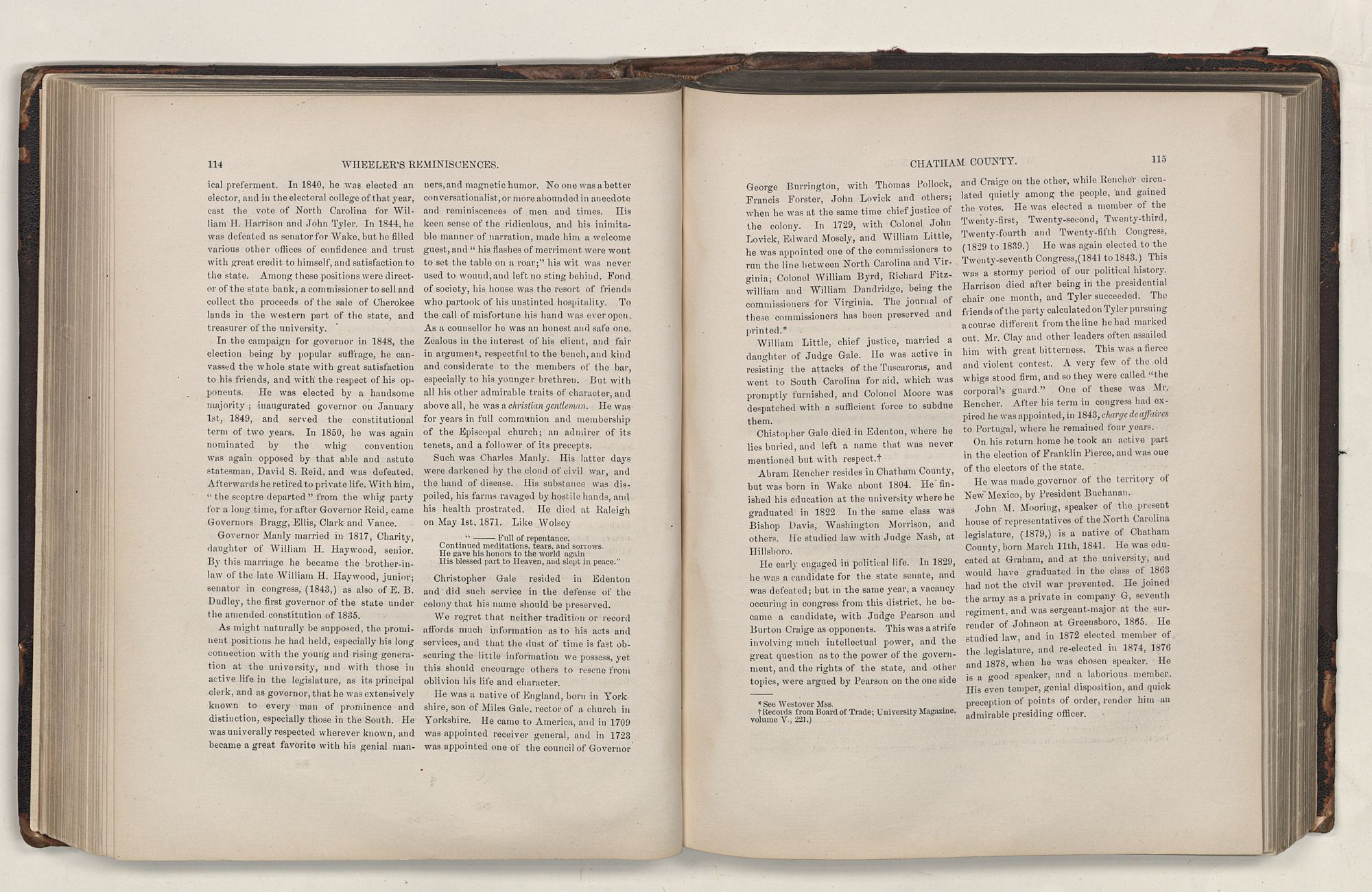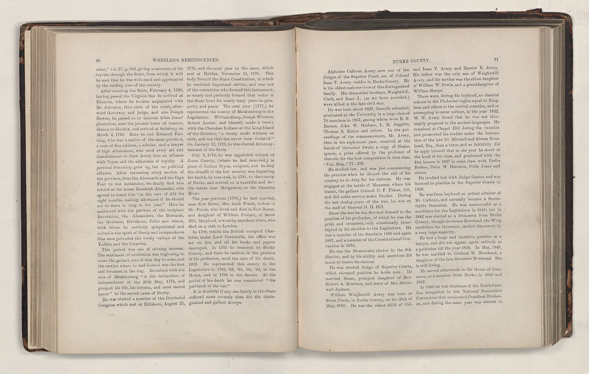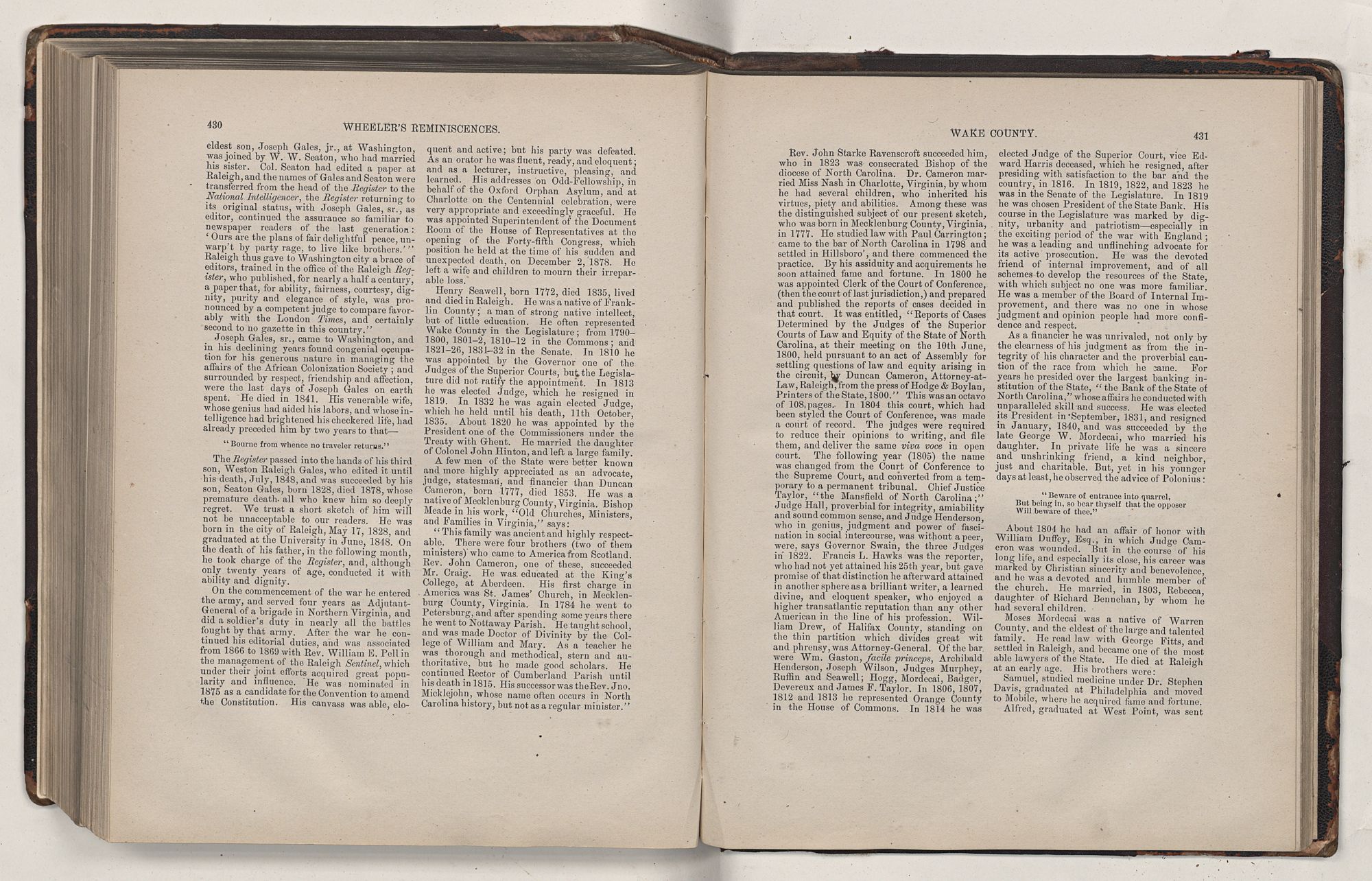 Reminiscences and memoirs of North Carolina and eminent North Carolinians. Baltimore : Genealogical Pub. Co., 1966. 15, lxxiv, 478 p. 24 cm. Reprint of the 1884 ed.