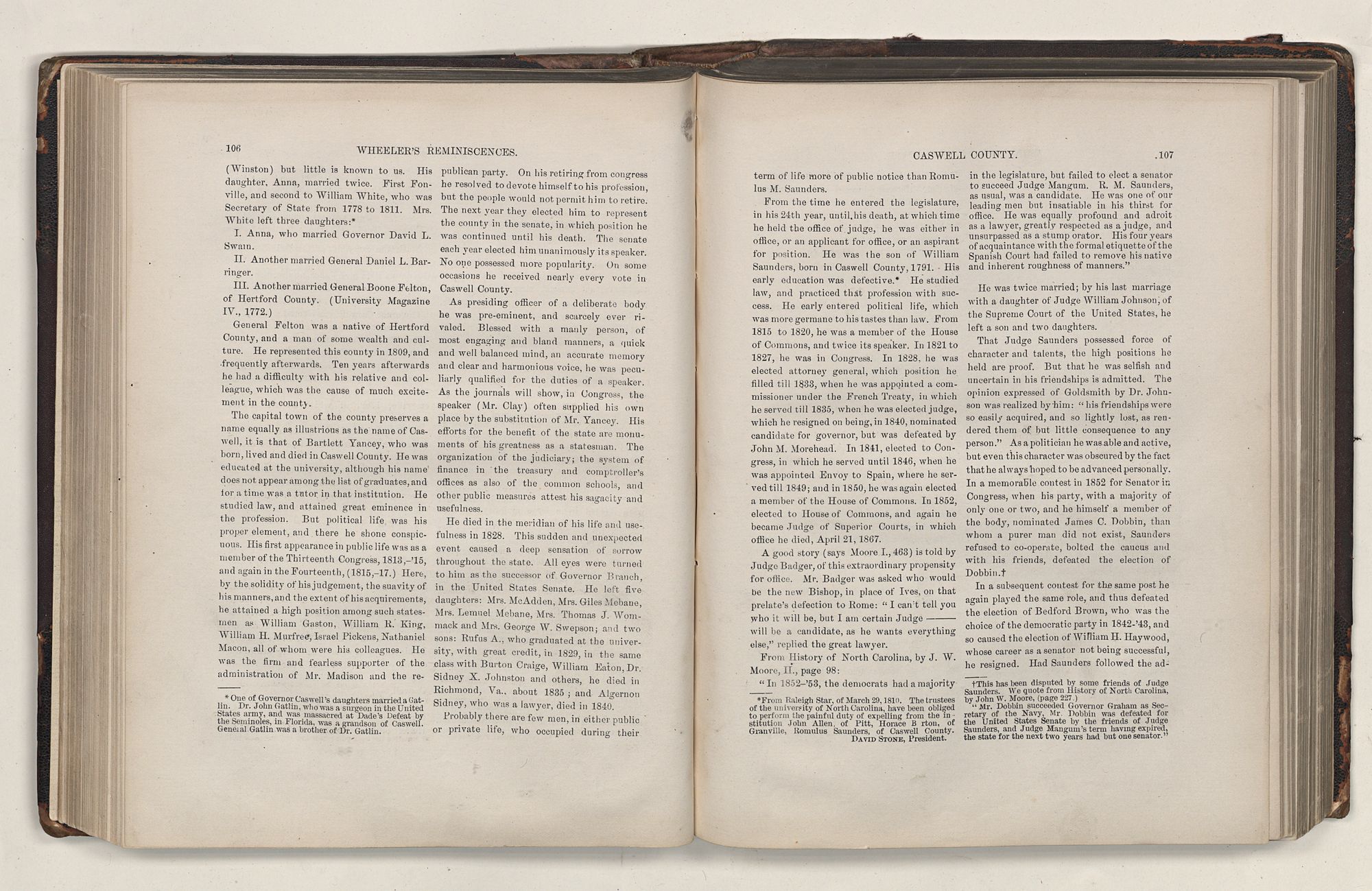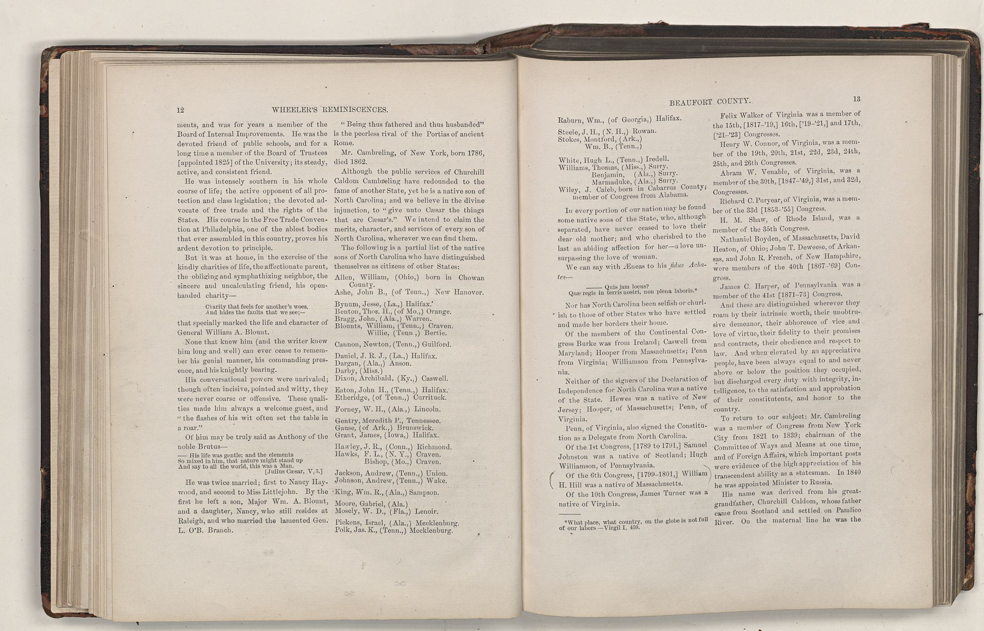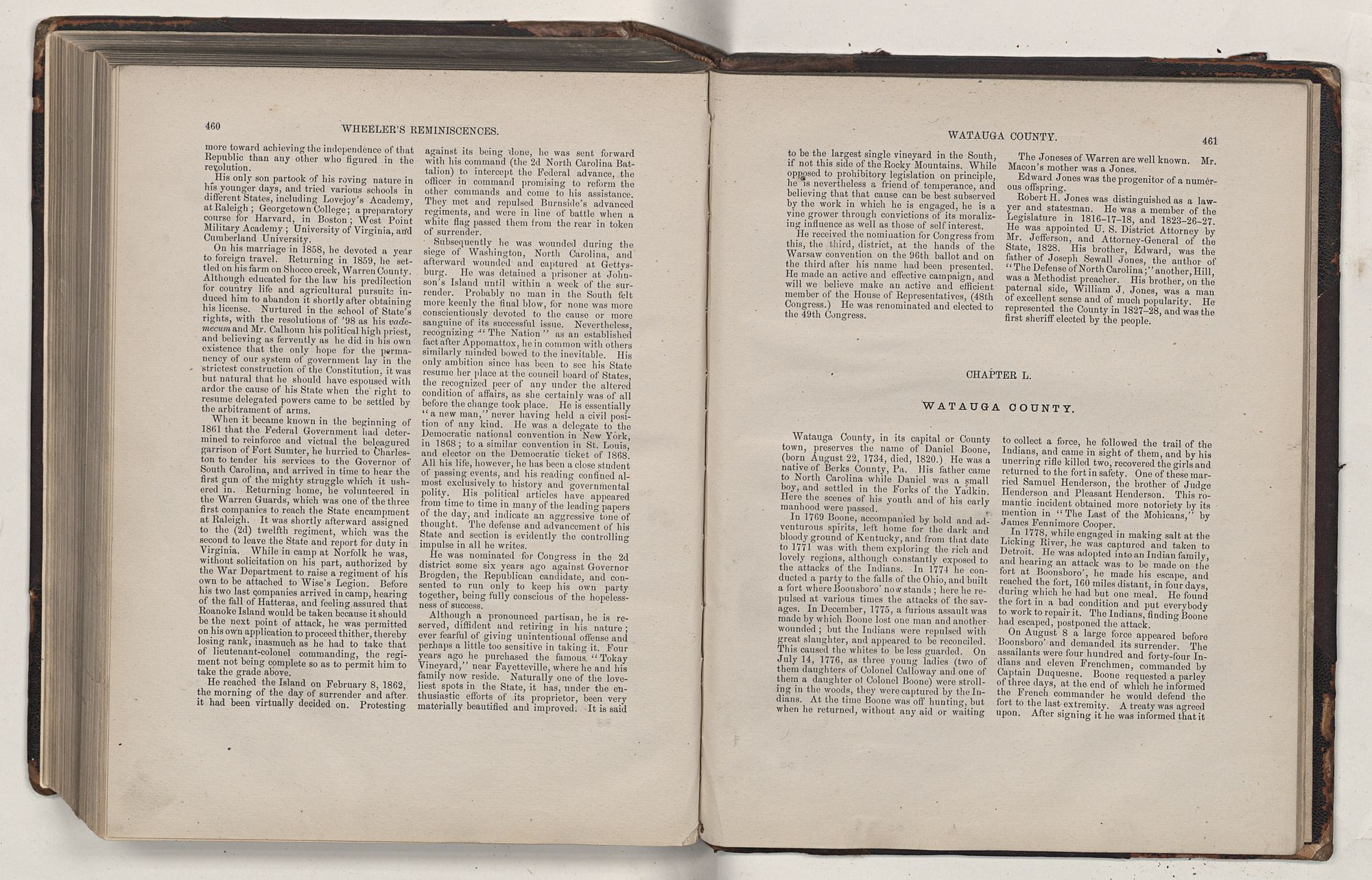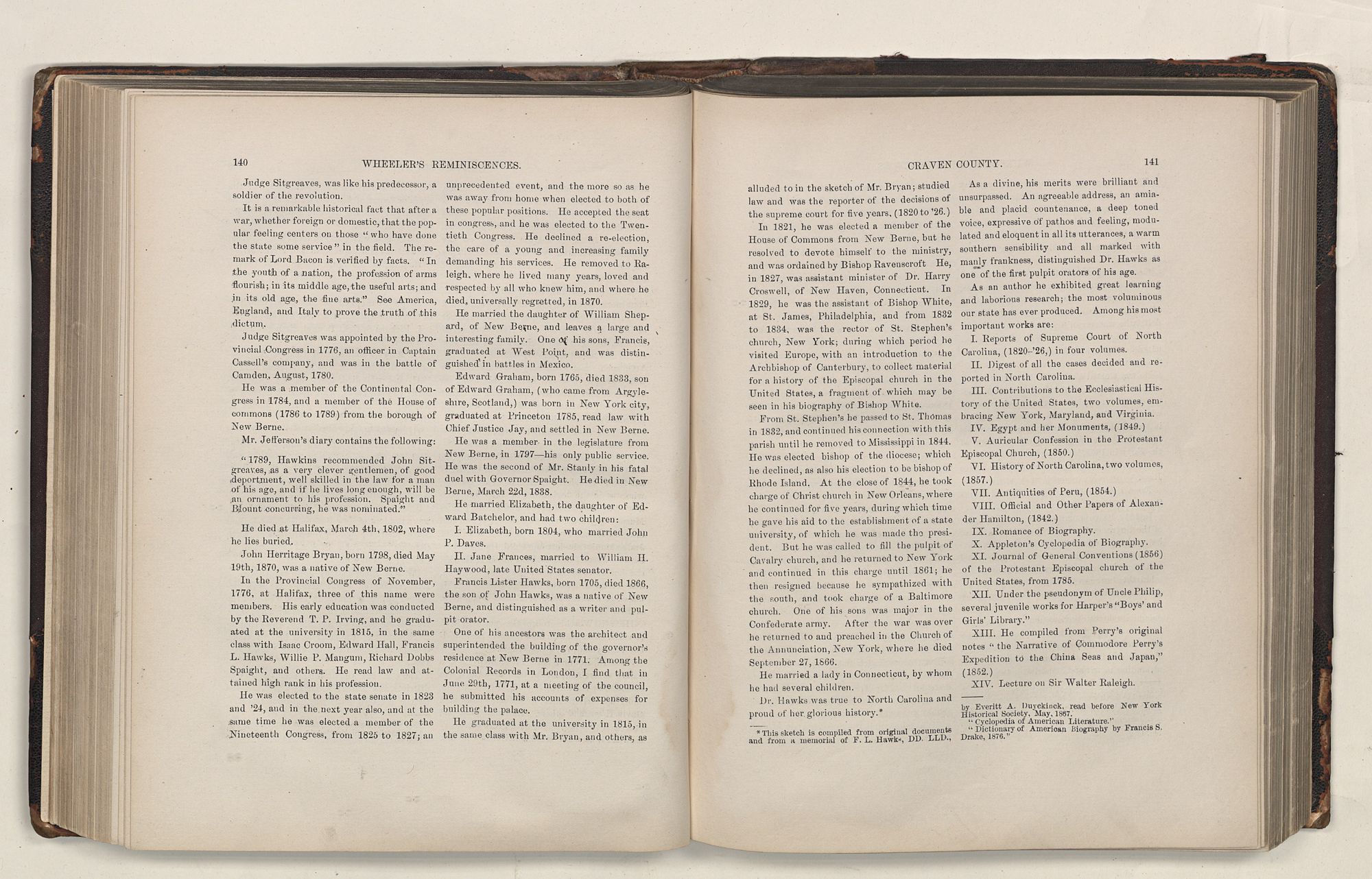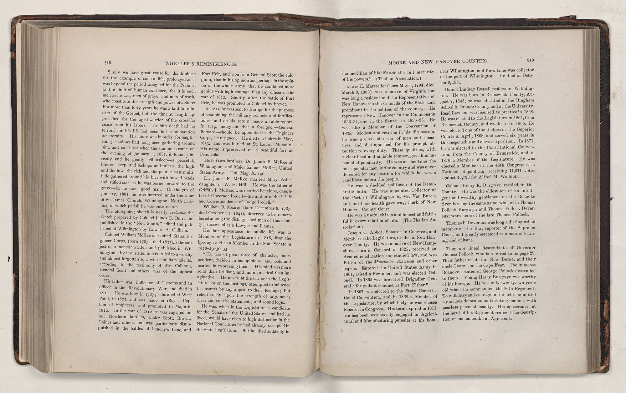Reminiscences and memoirs of North Carolina and eminent North Carolinians. Baltimore : Genealogical Pub. Co., 1966. 15, lxxiv, 478 p. 24 cm. Reprint of the 1884 ed.