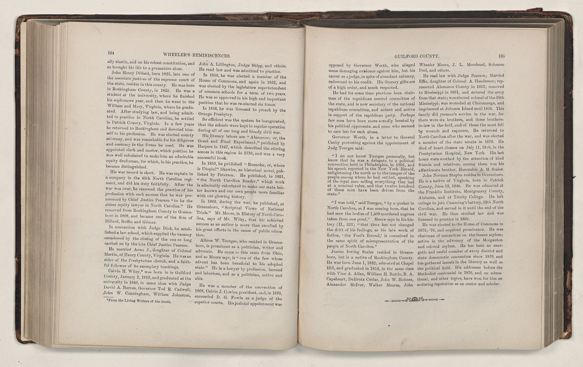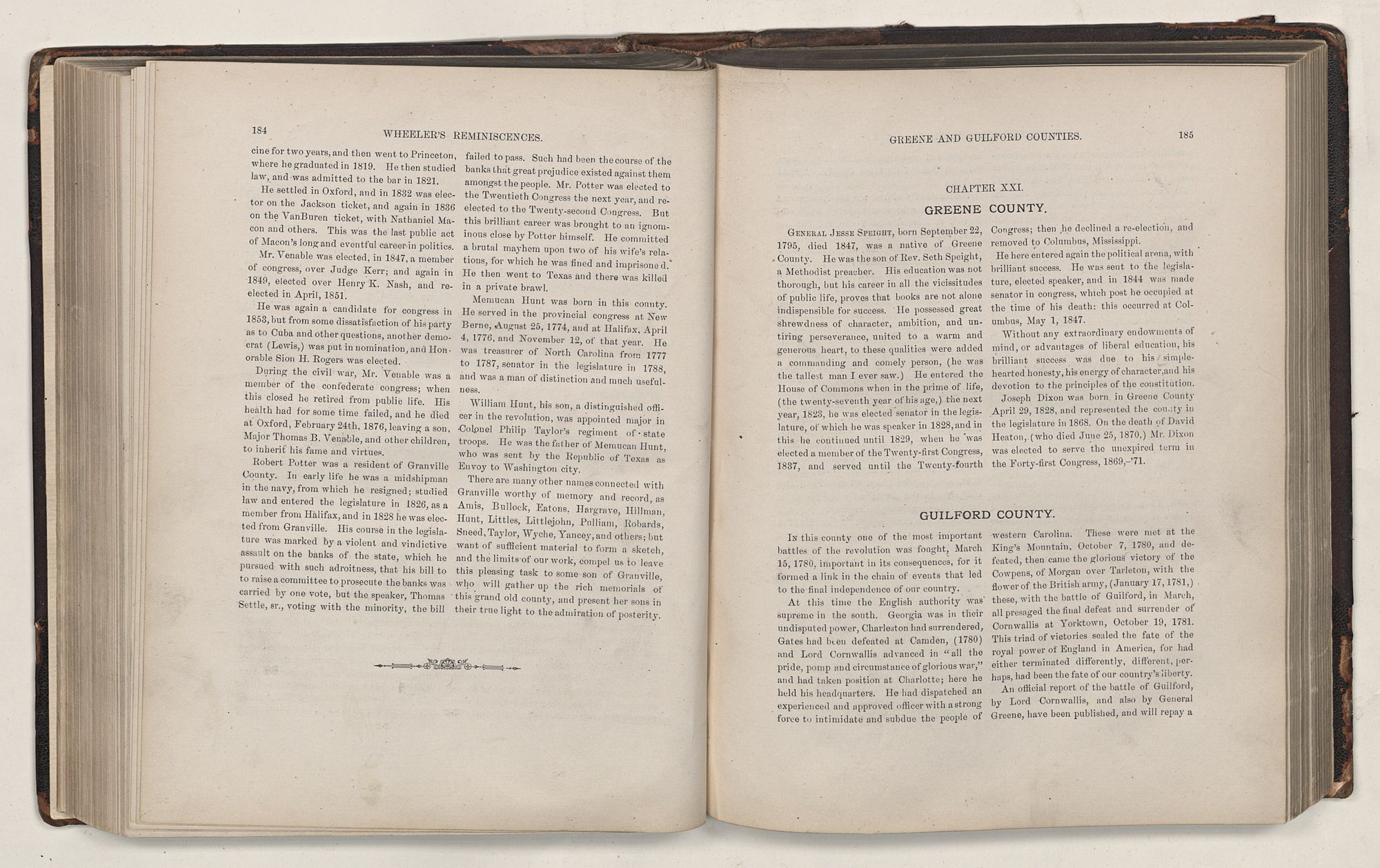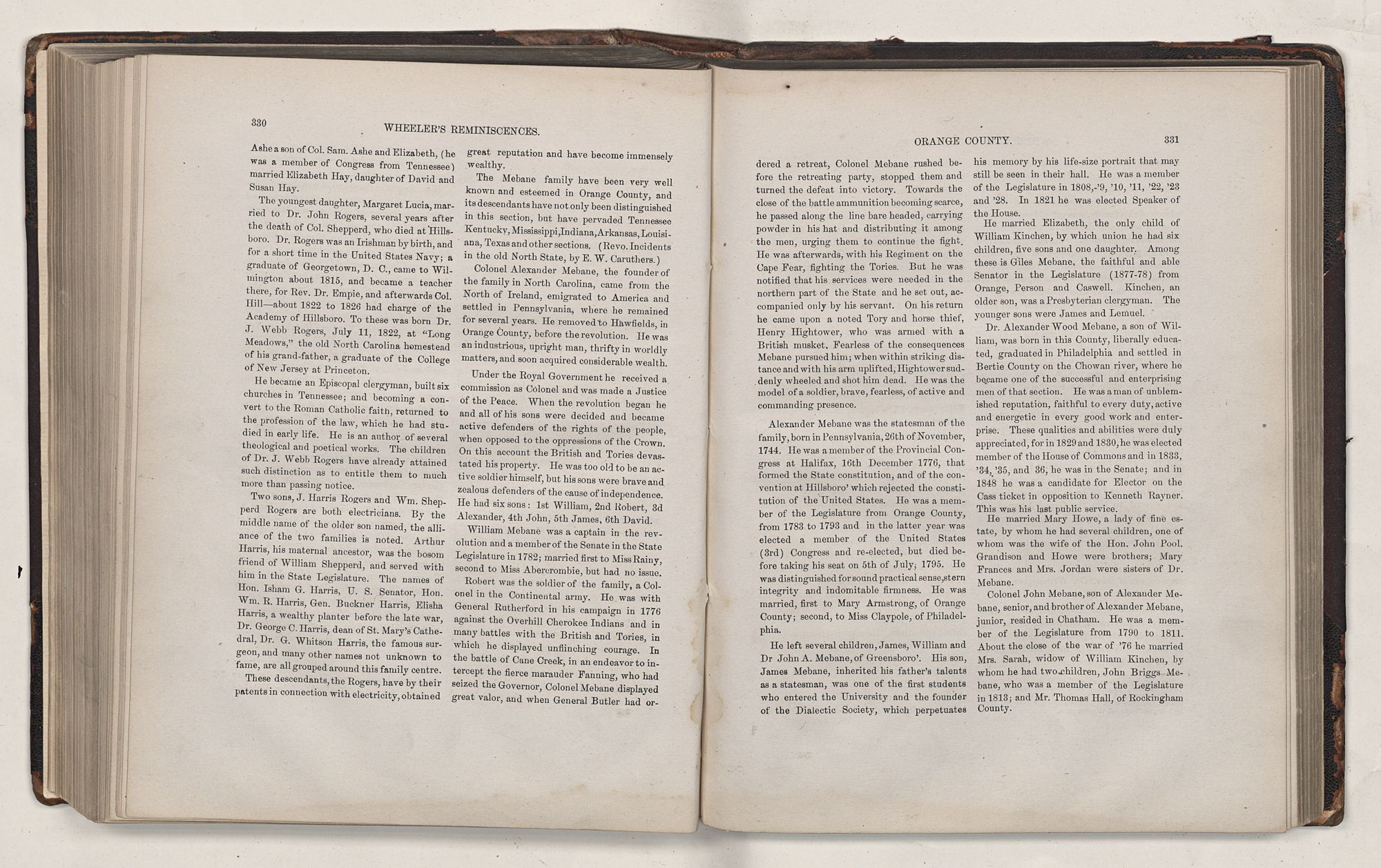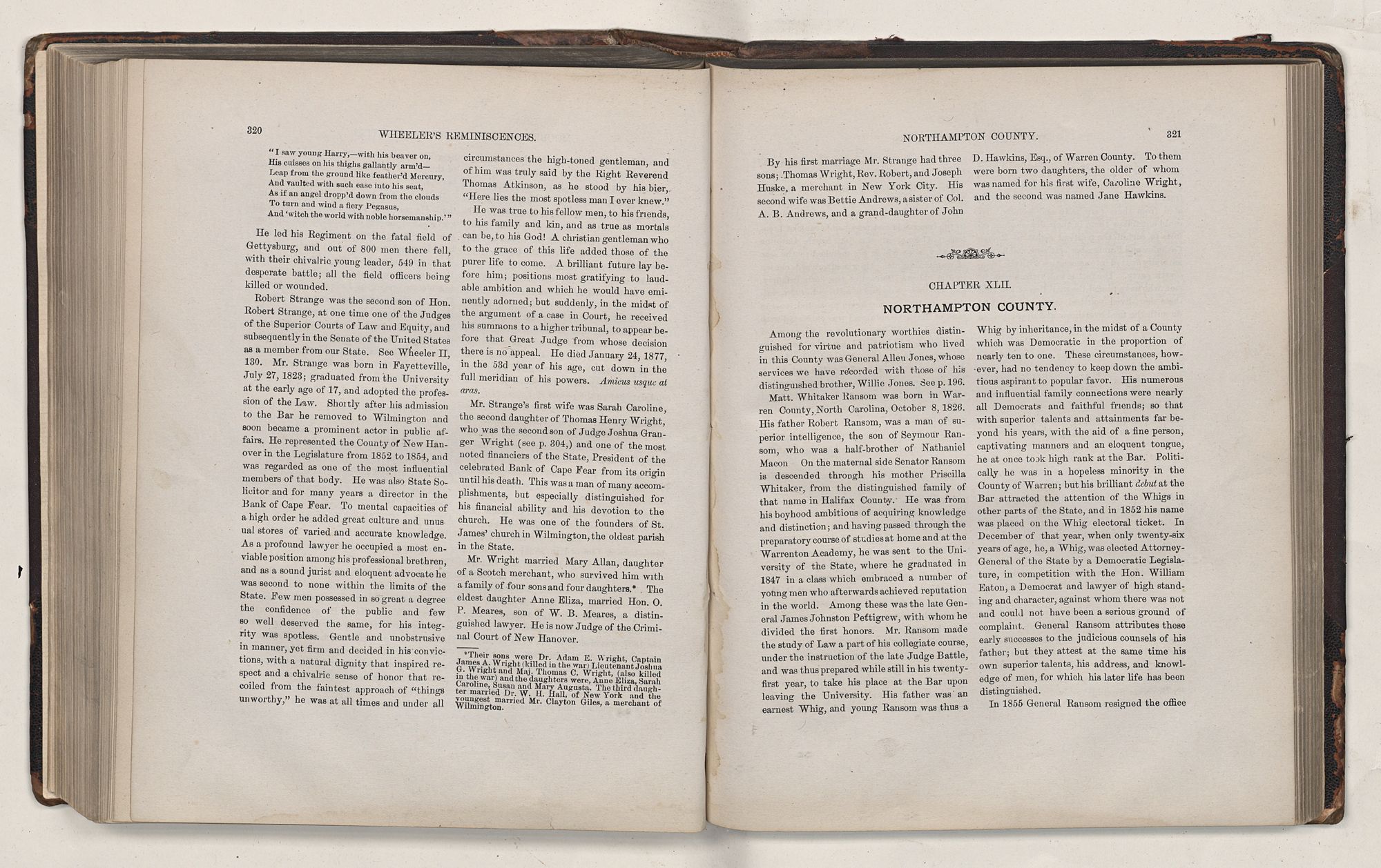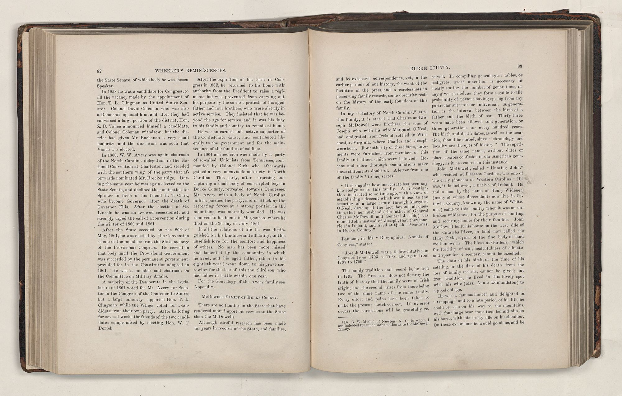 Reminiscences and memoirs of North Carolina and eminent North Carolinians. Baltimore : Genealogical Pub. Co., 1966. 15, lxxiv, 478 p. 24 cm. Reprint of the 1884 ed.