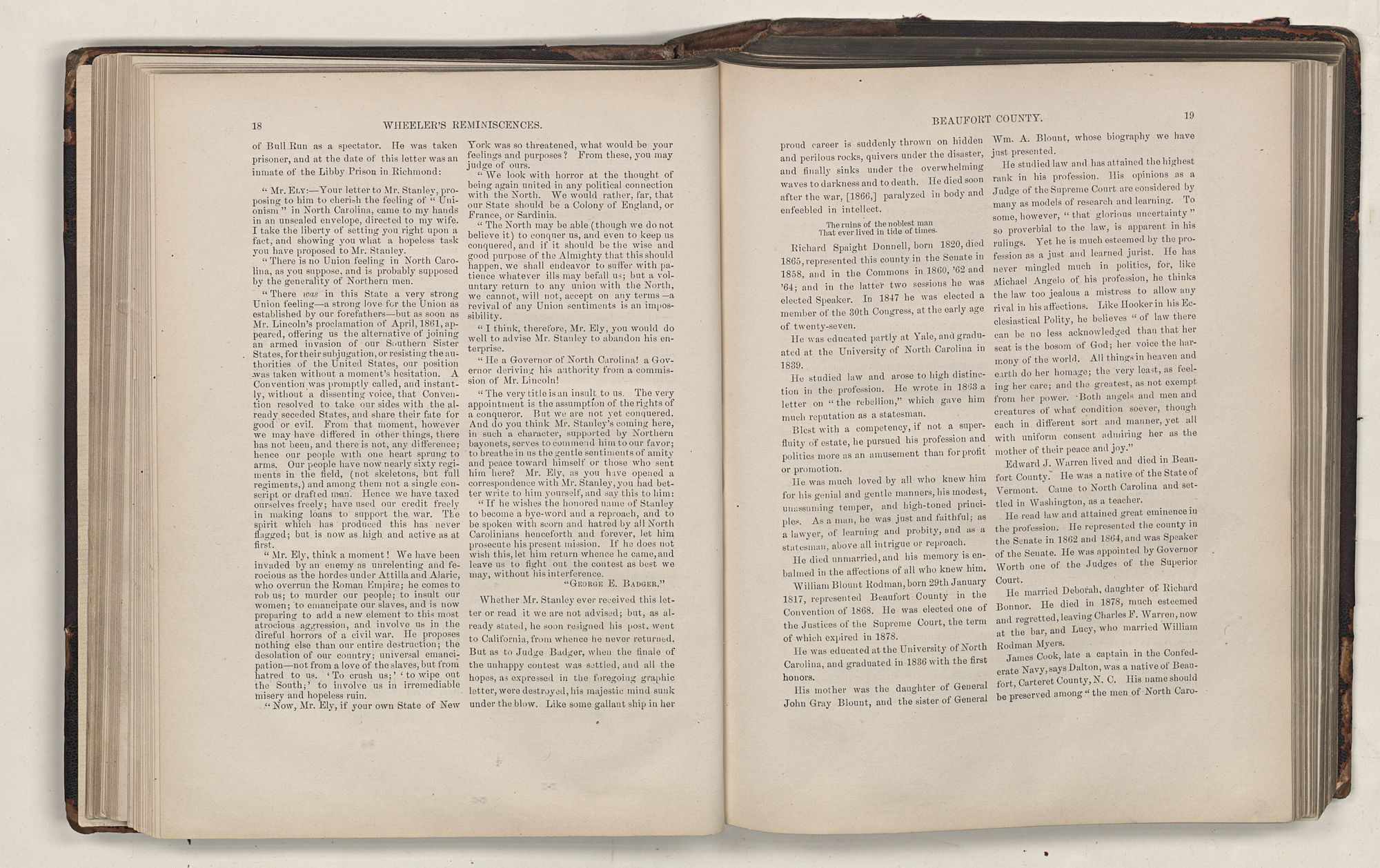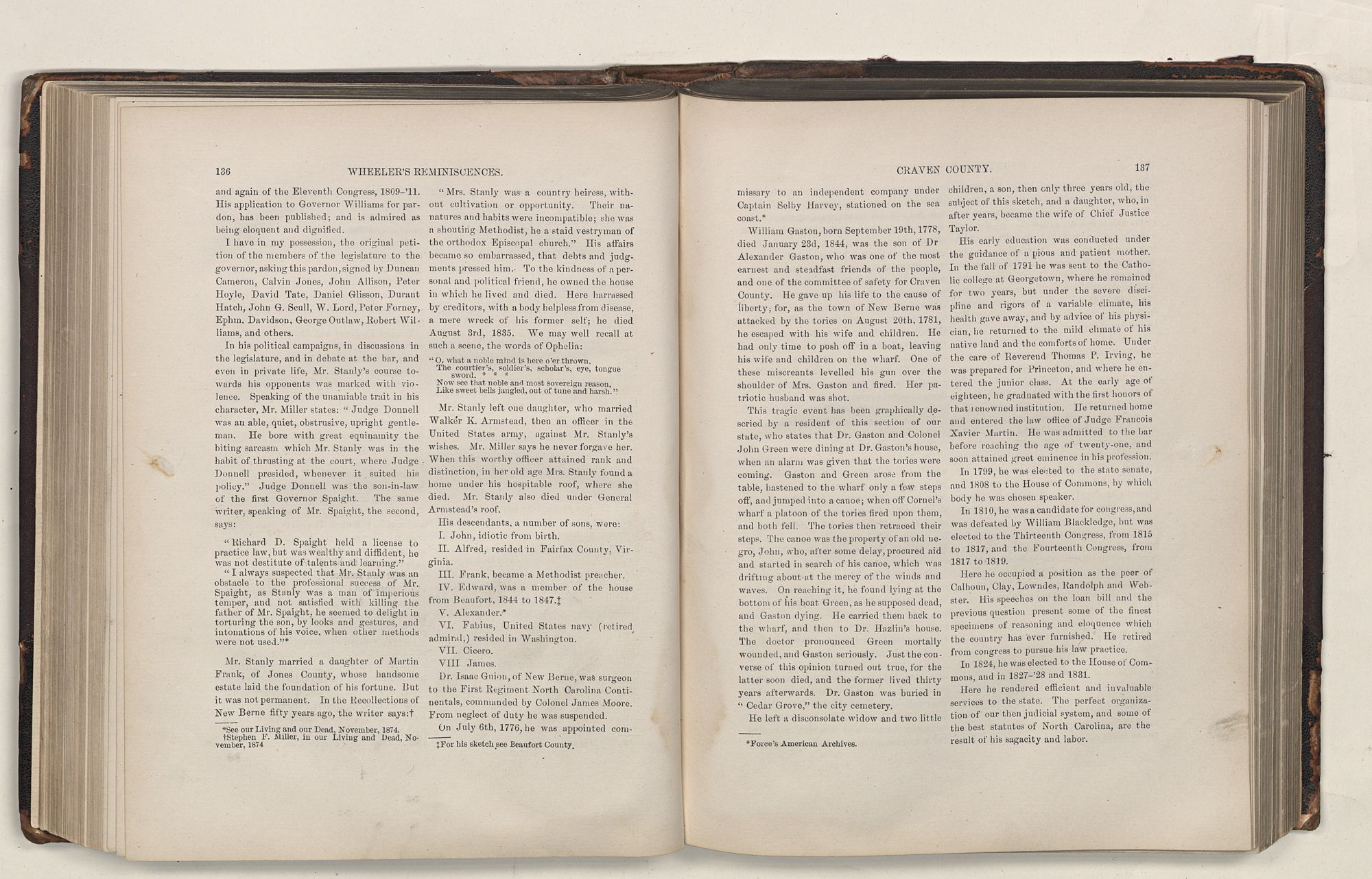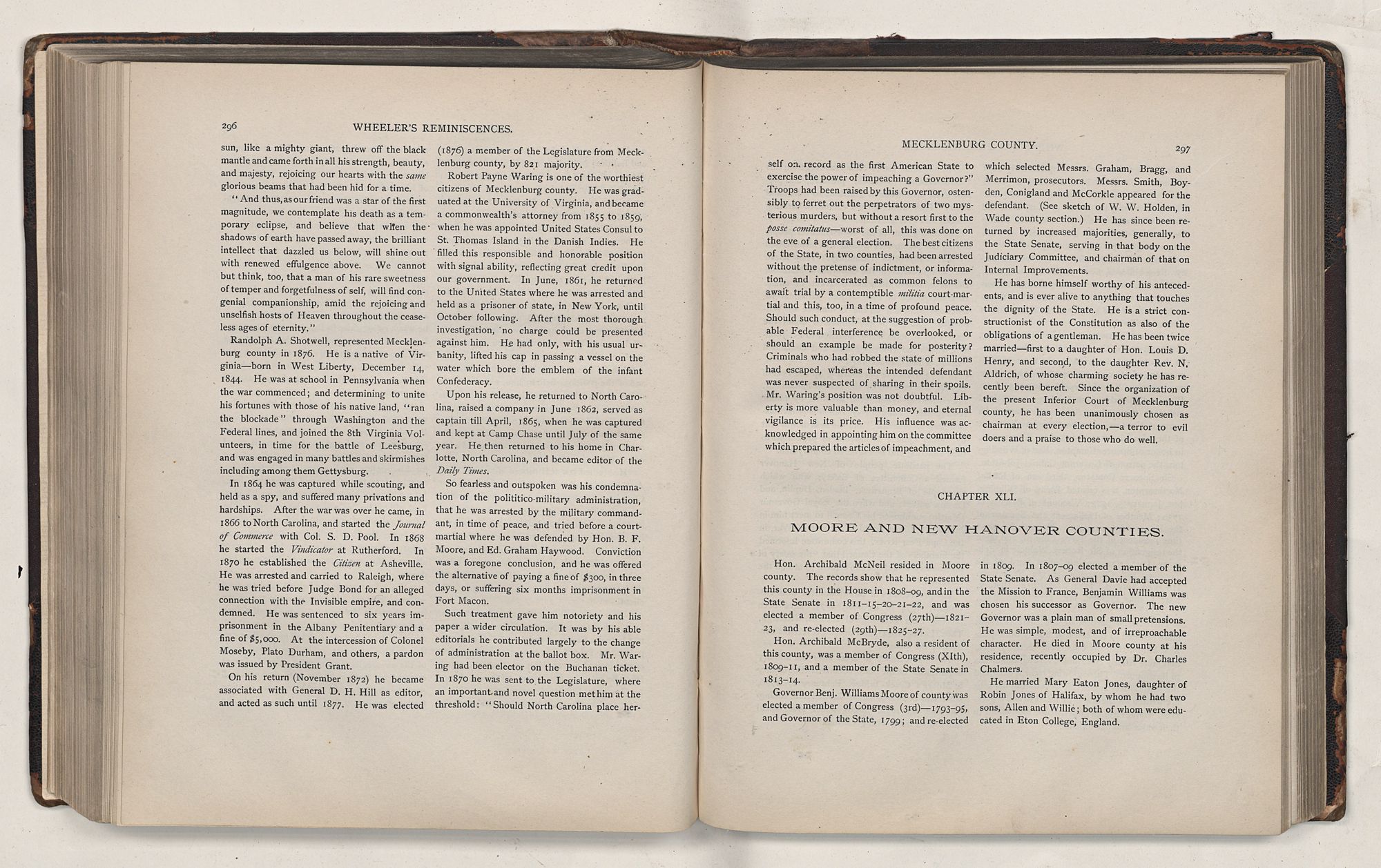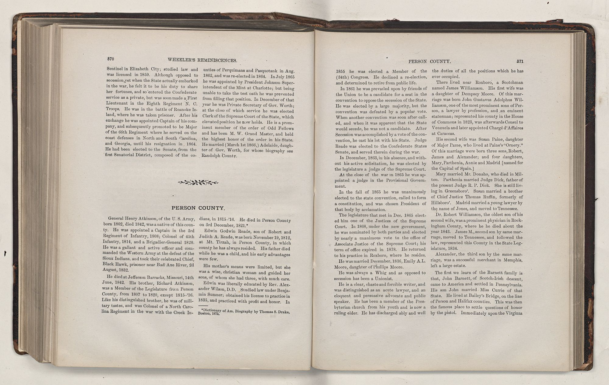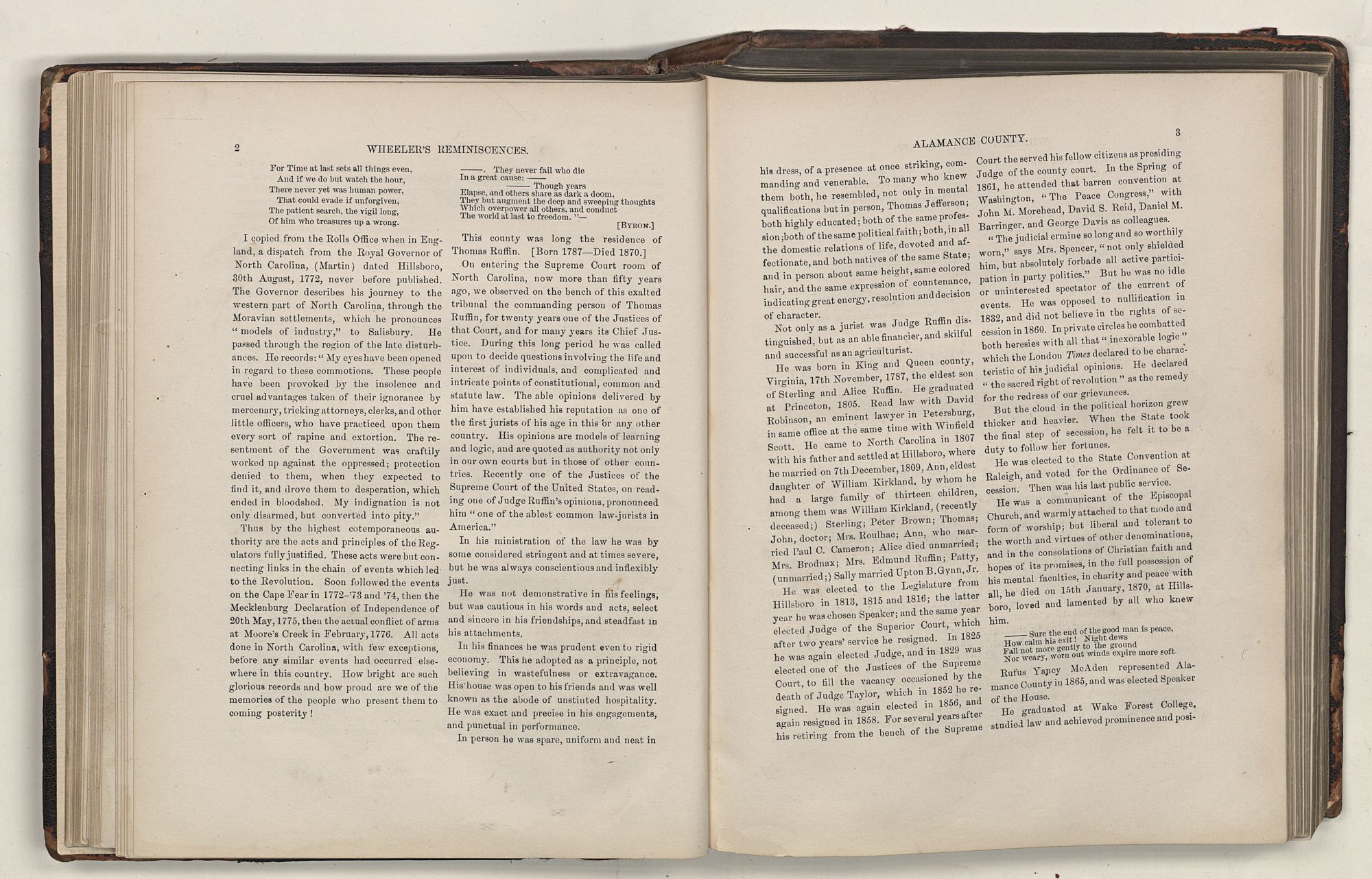 Reminiscences and memoirs of North Carolina and eminent North Carolinians. Baltimore : Genealogical Pub. Co., 1966. 15, lxxiv, 478 p. 24 cm. Reprint of the 1884 ed.