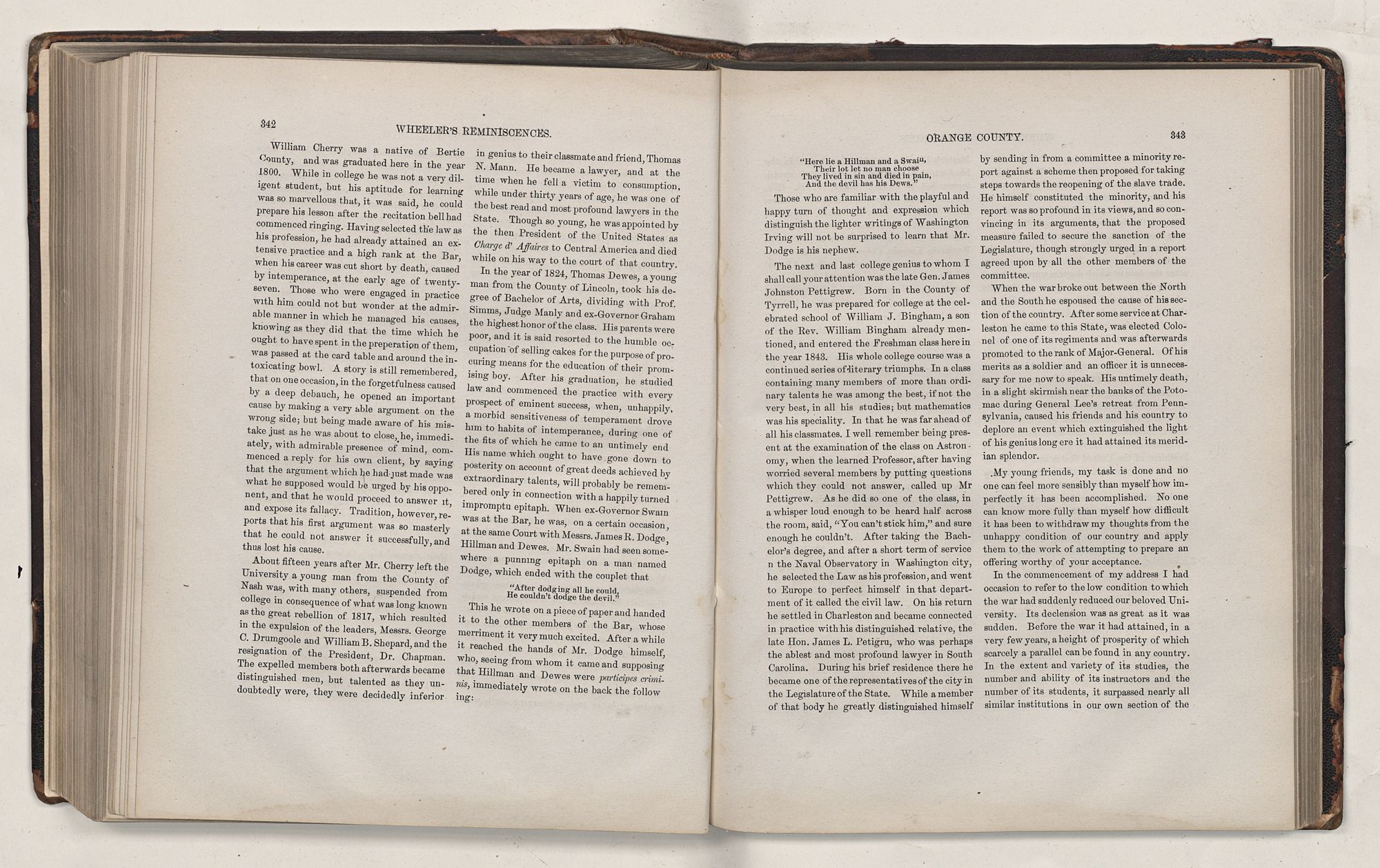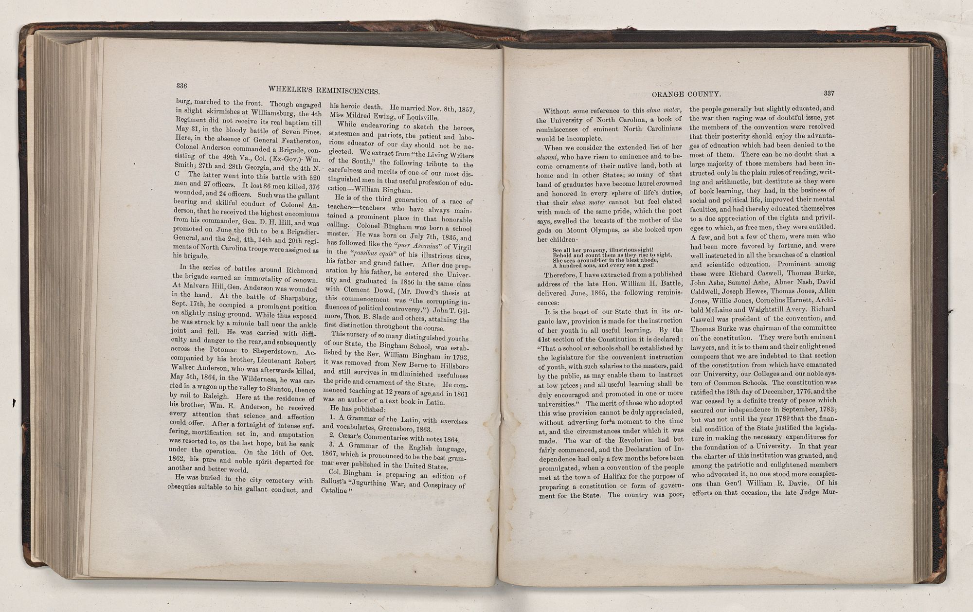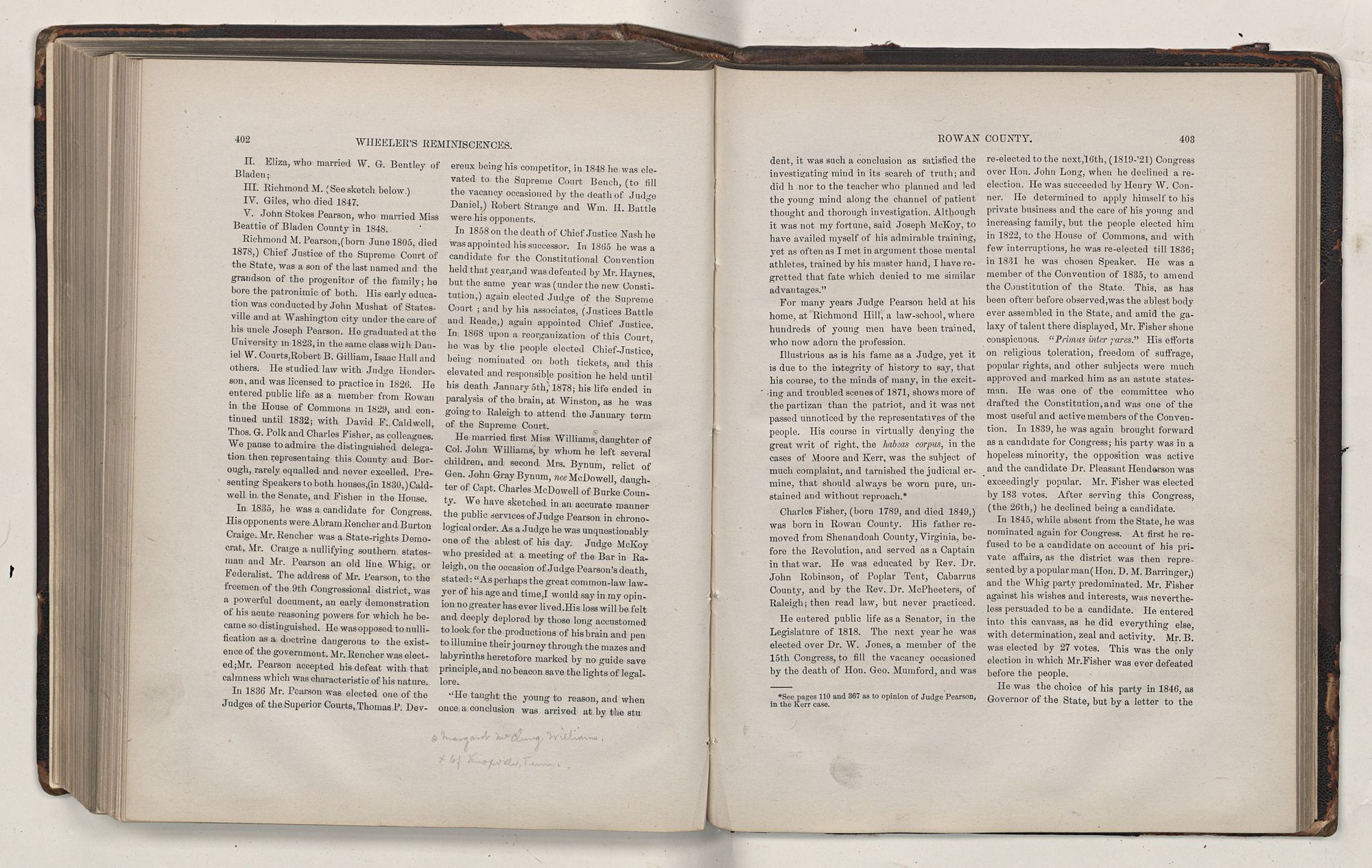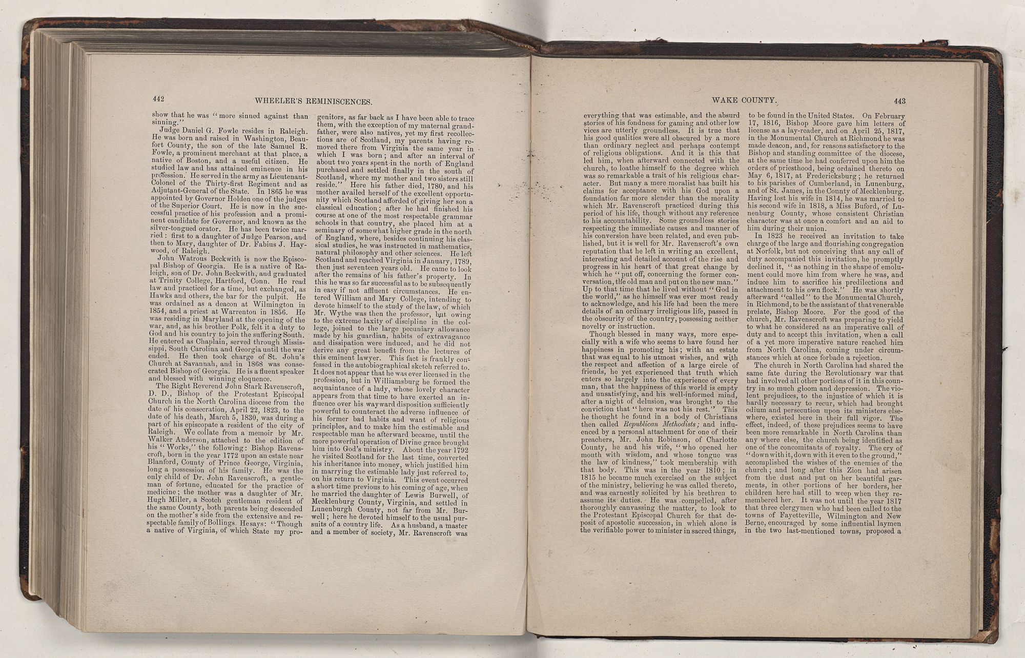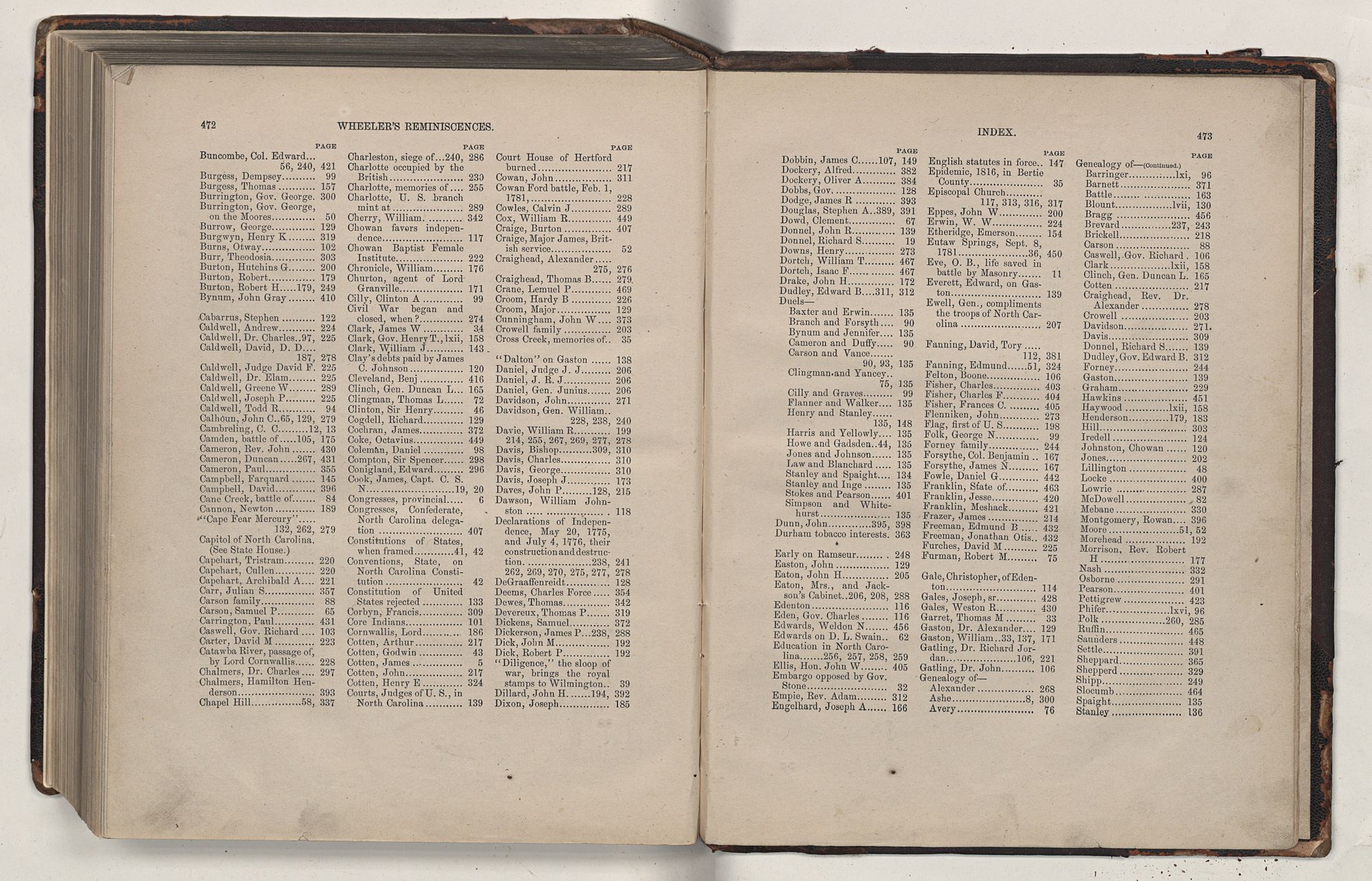 Reminiscences and memoirs of North Carolina and eminent North Carolinians. Baltimore : Genealogical Pub. Co., 1966. 15, lxxiv, 478 p. 24 cm. Reprint of the 1884 ed.