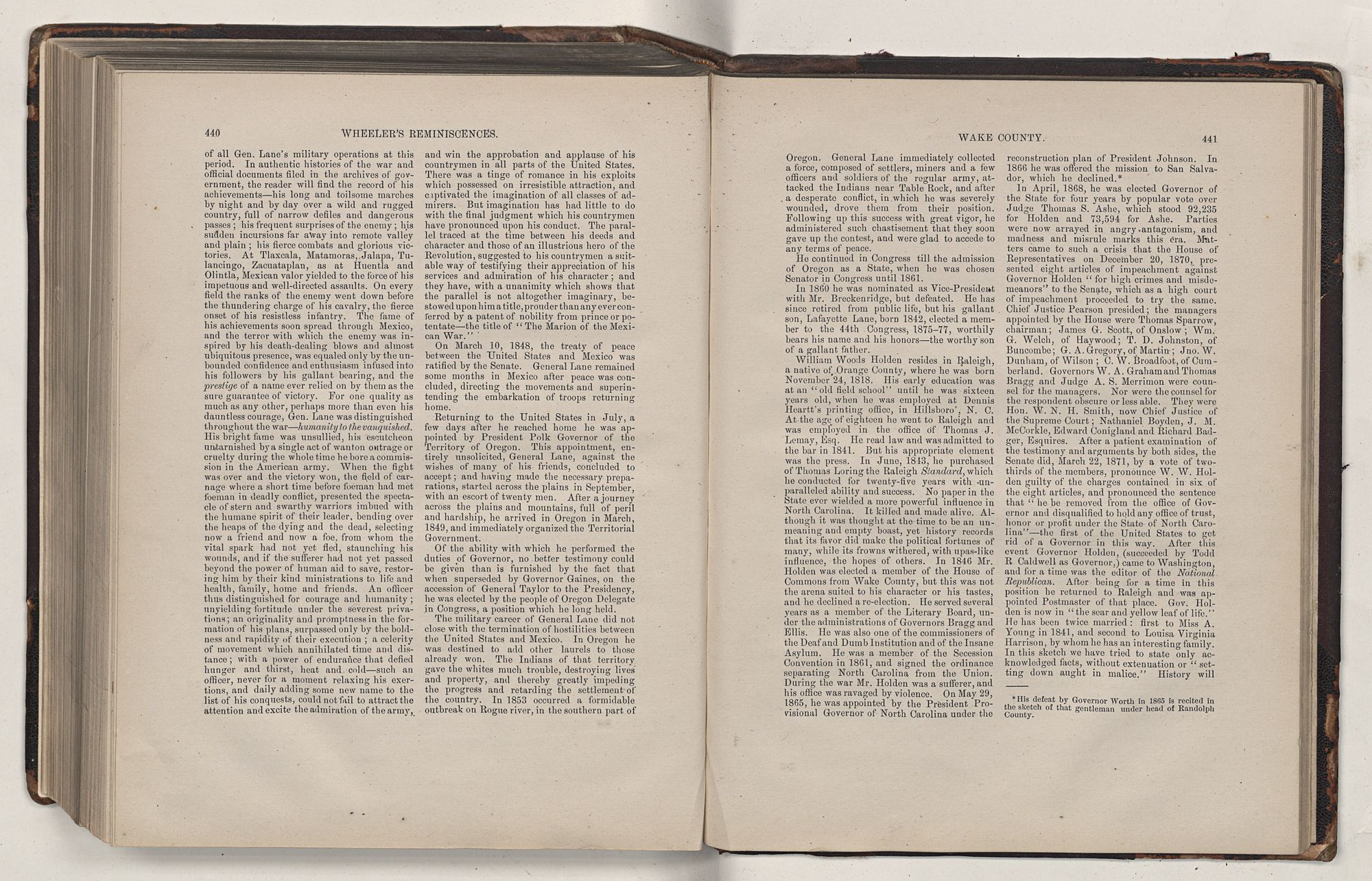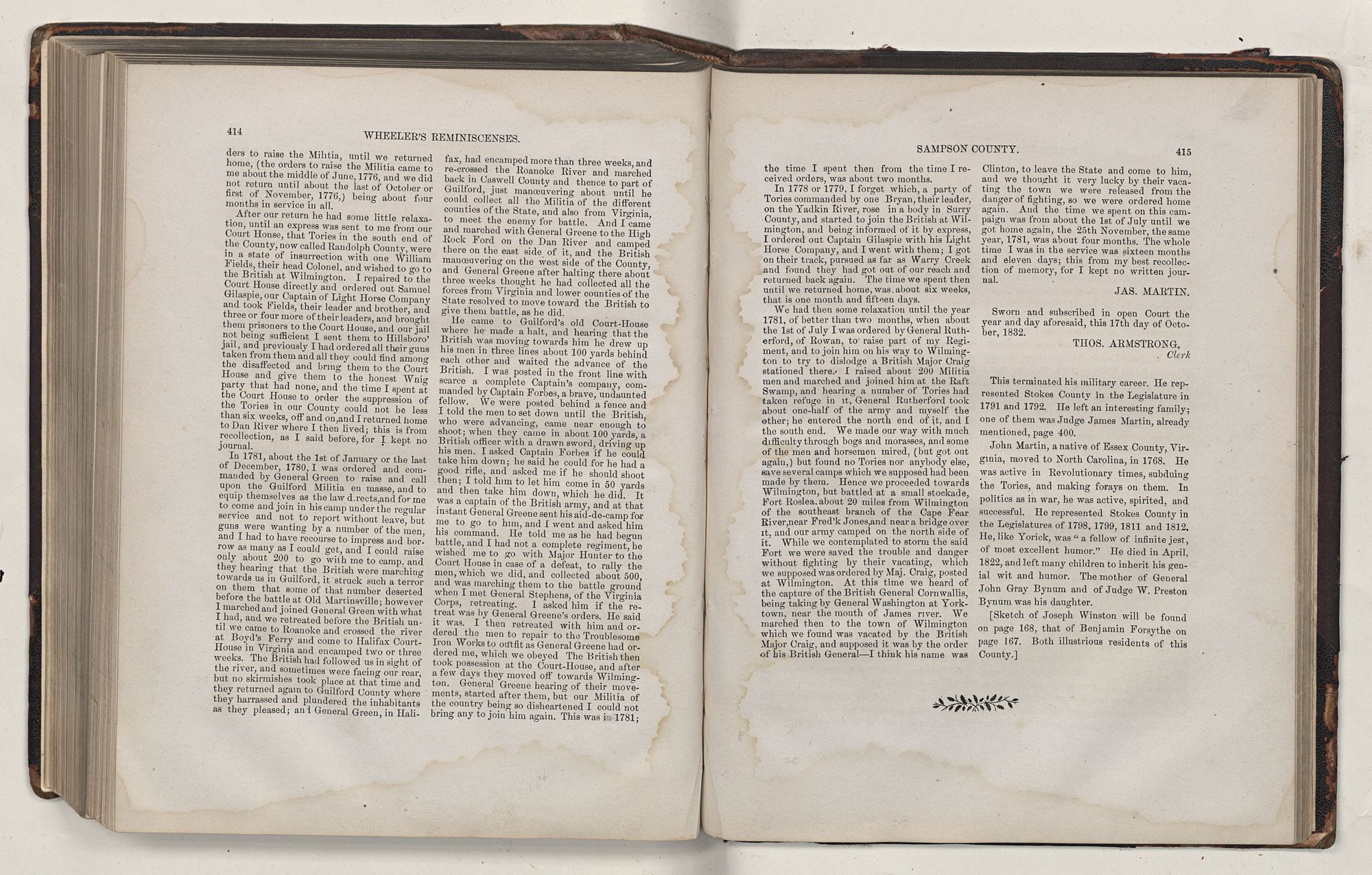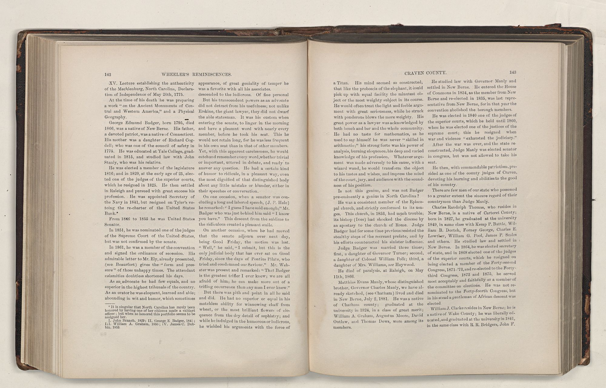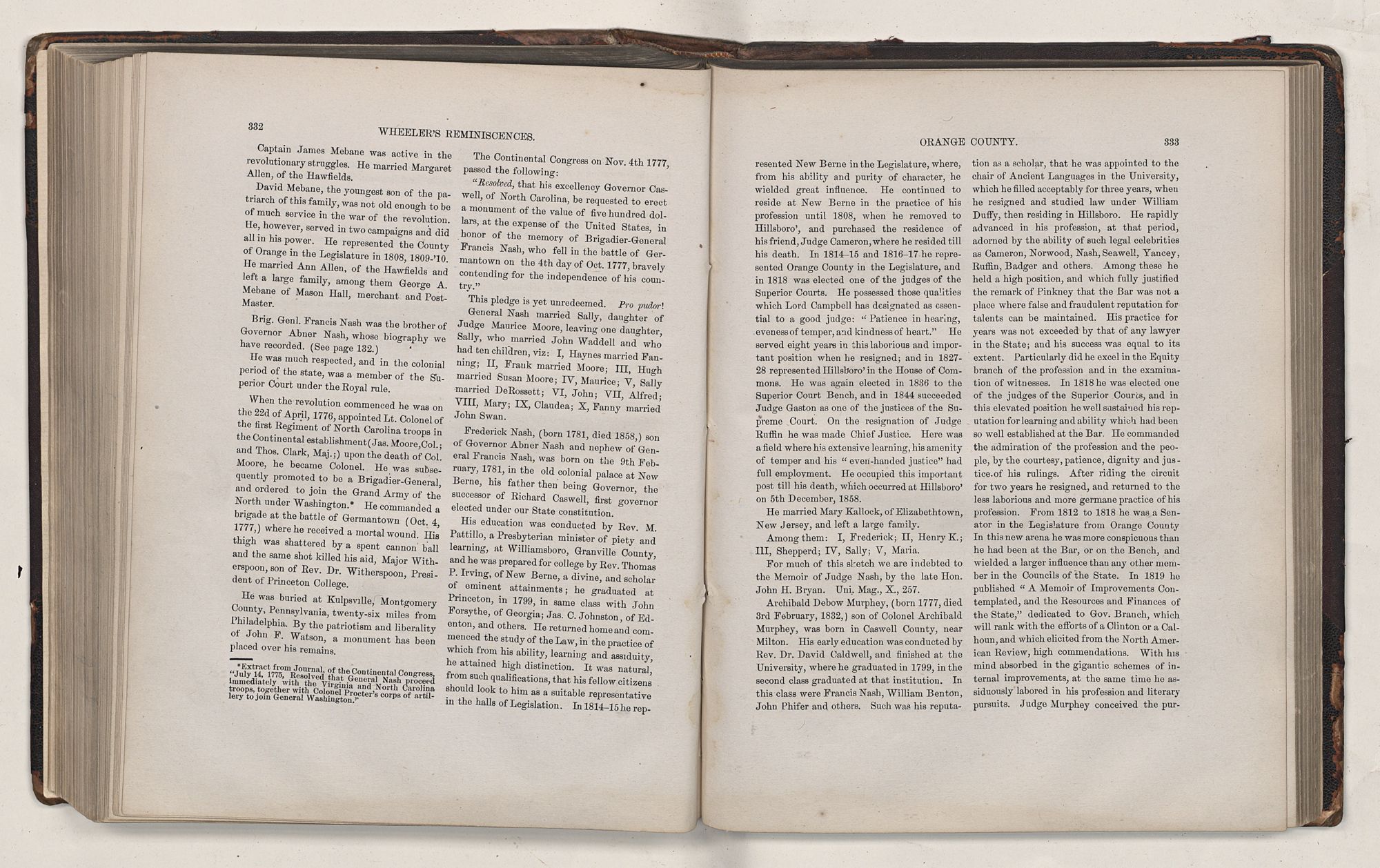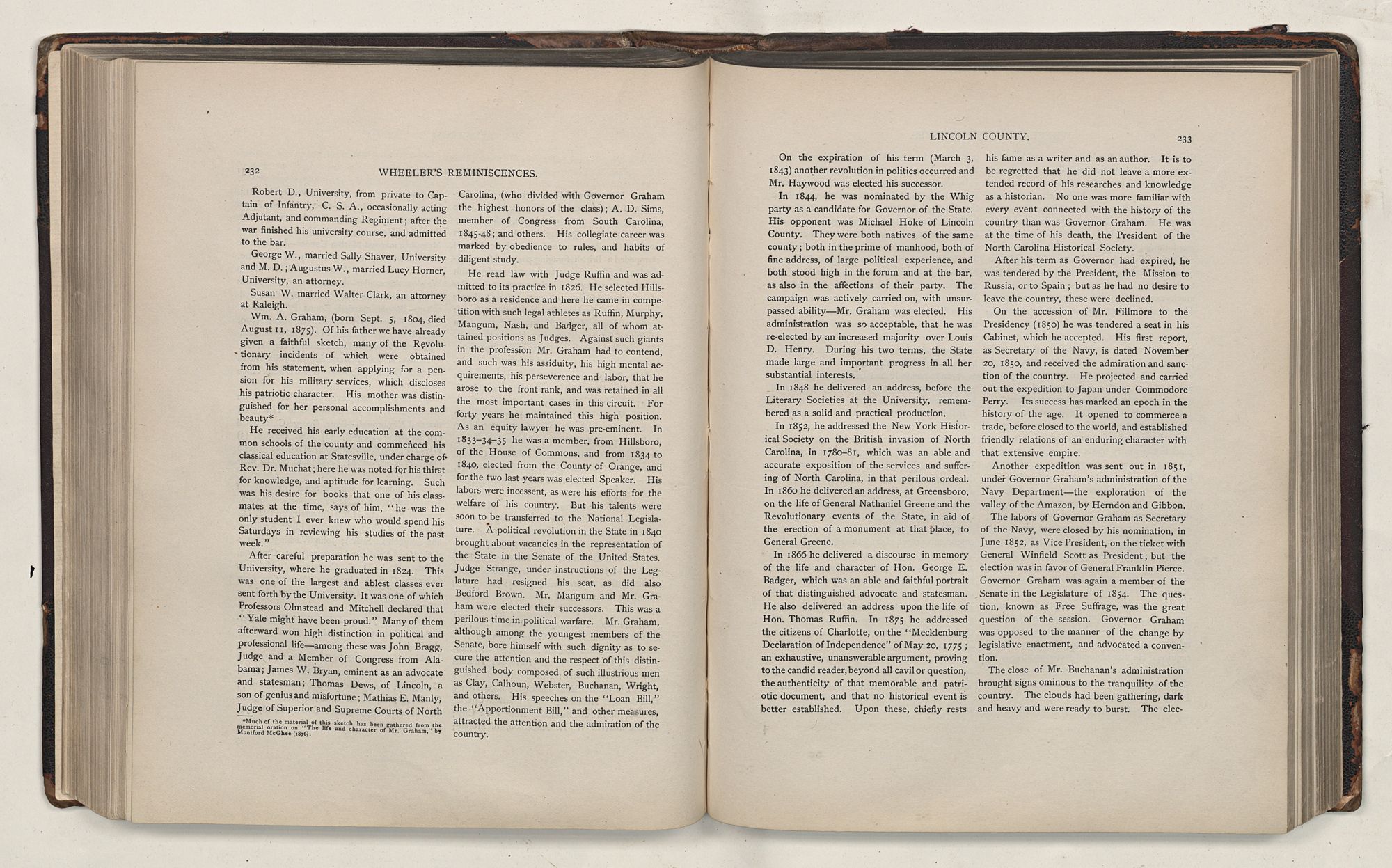 Reminiscences and memoirs of North Carolina and eminent North Carolinians. Baltimore : Genealogical Pub. Co., 1966. 15, lxxiv, 478 p. 24 cm. Reprint of the 1884 ed.