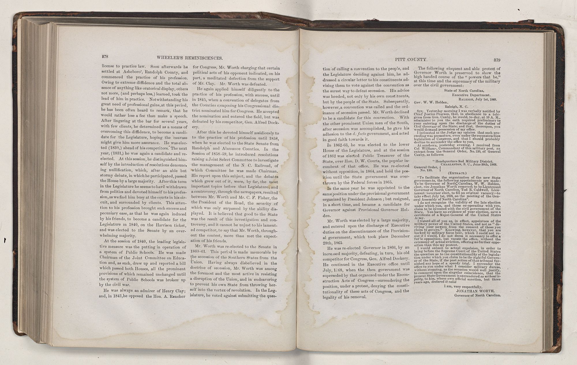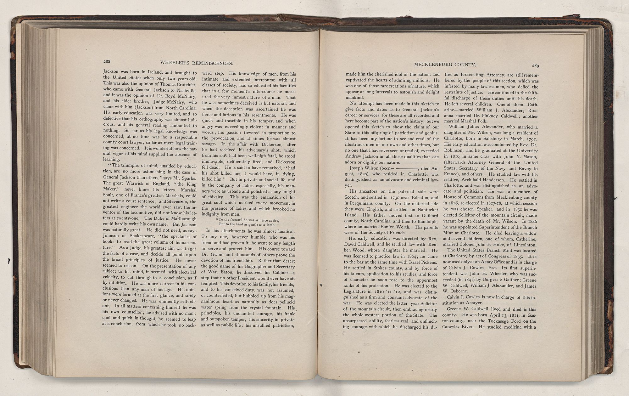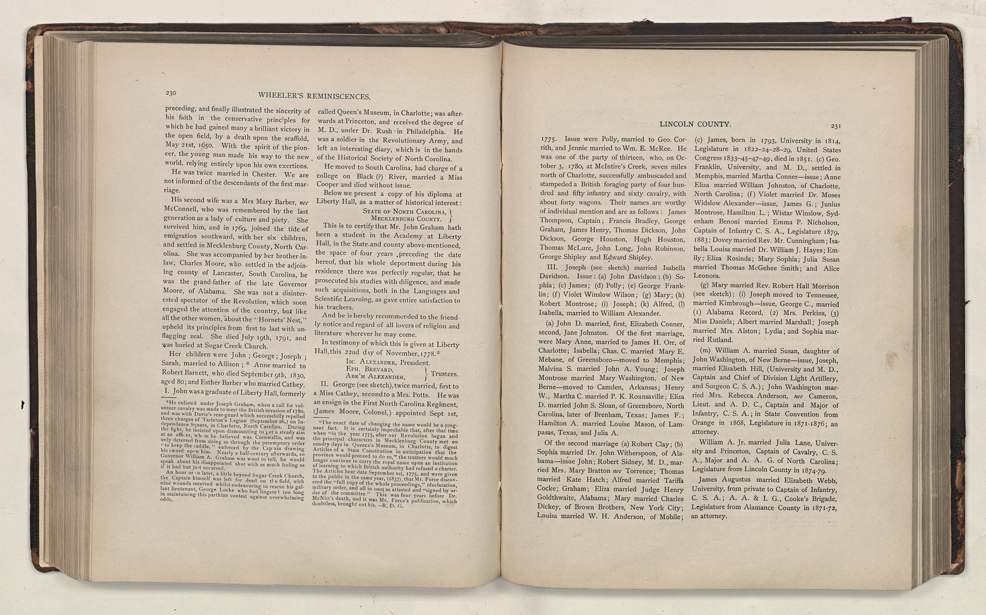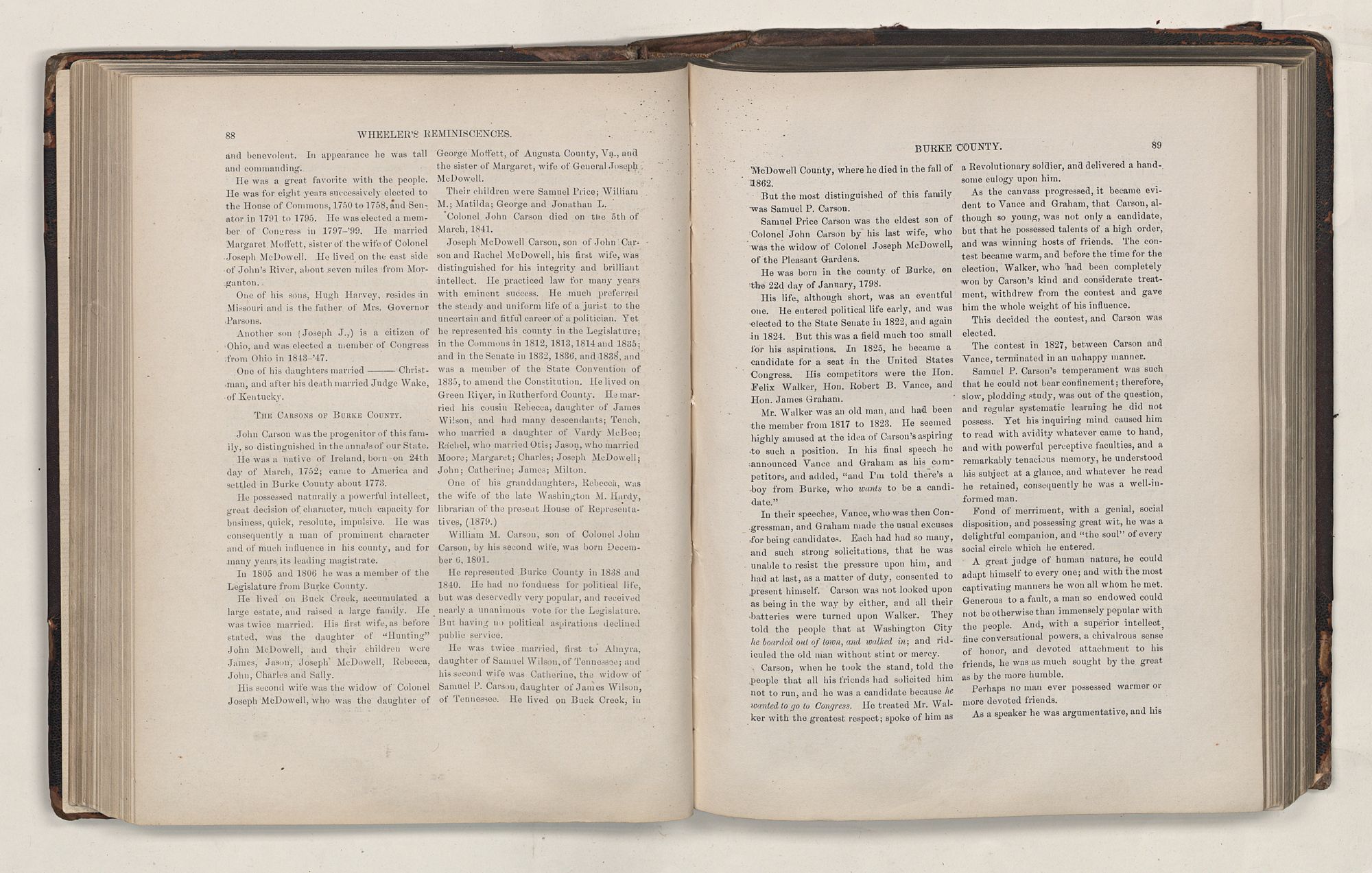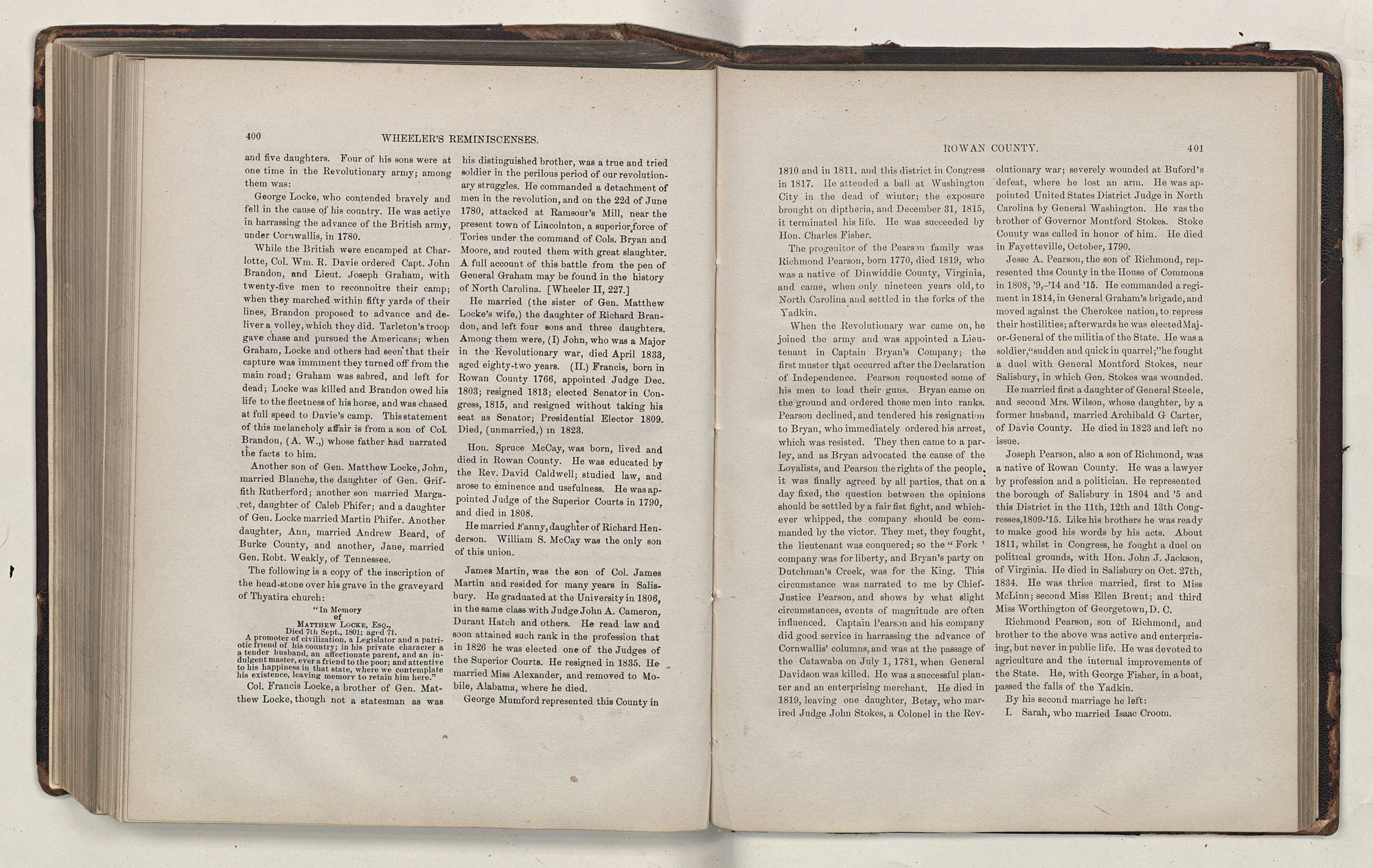 Reminiscences and memoirs of North Carolina and eminent North Carolinians. Baltimore : Genealogical Pub. Co., 1966. 15, lxxiv, 478 p. 24 cm. Reprint of the 1884 ed.
