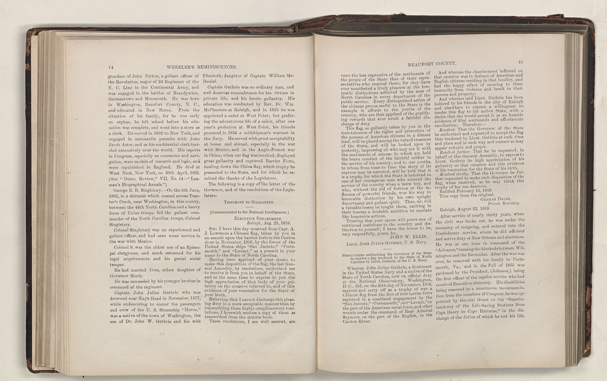 While Virginia on one side and South Carolina on the other, have presented to the world the glowing record of the patriotism, valor and virtues of their sons, North Carolina equally rich or richer in such reminiscences; and with traits of virtue, and honor, and sacrifices to patriotism, deserving of record, allows this record to be obscured by time, and to