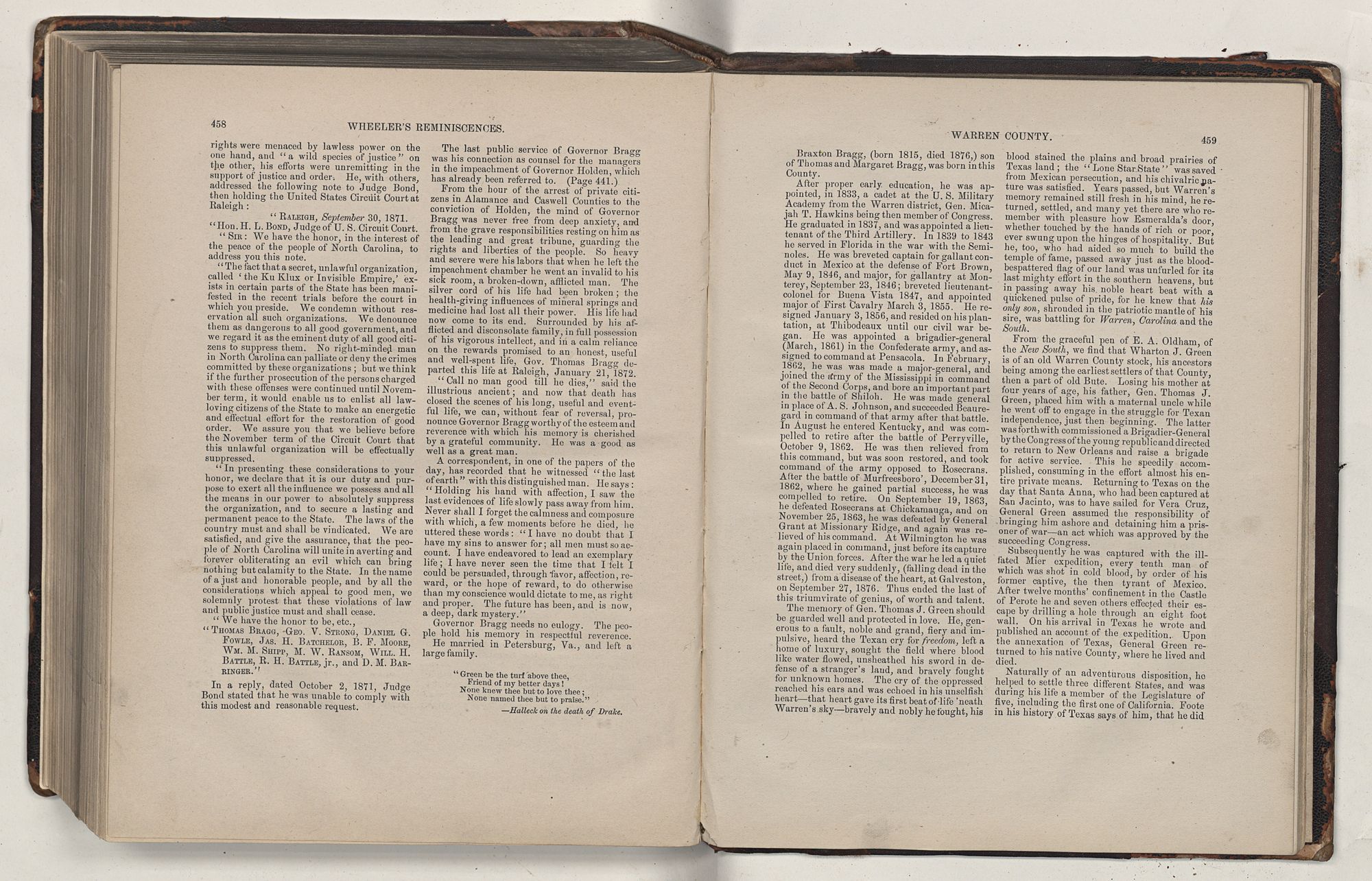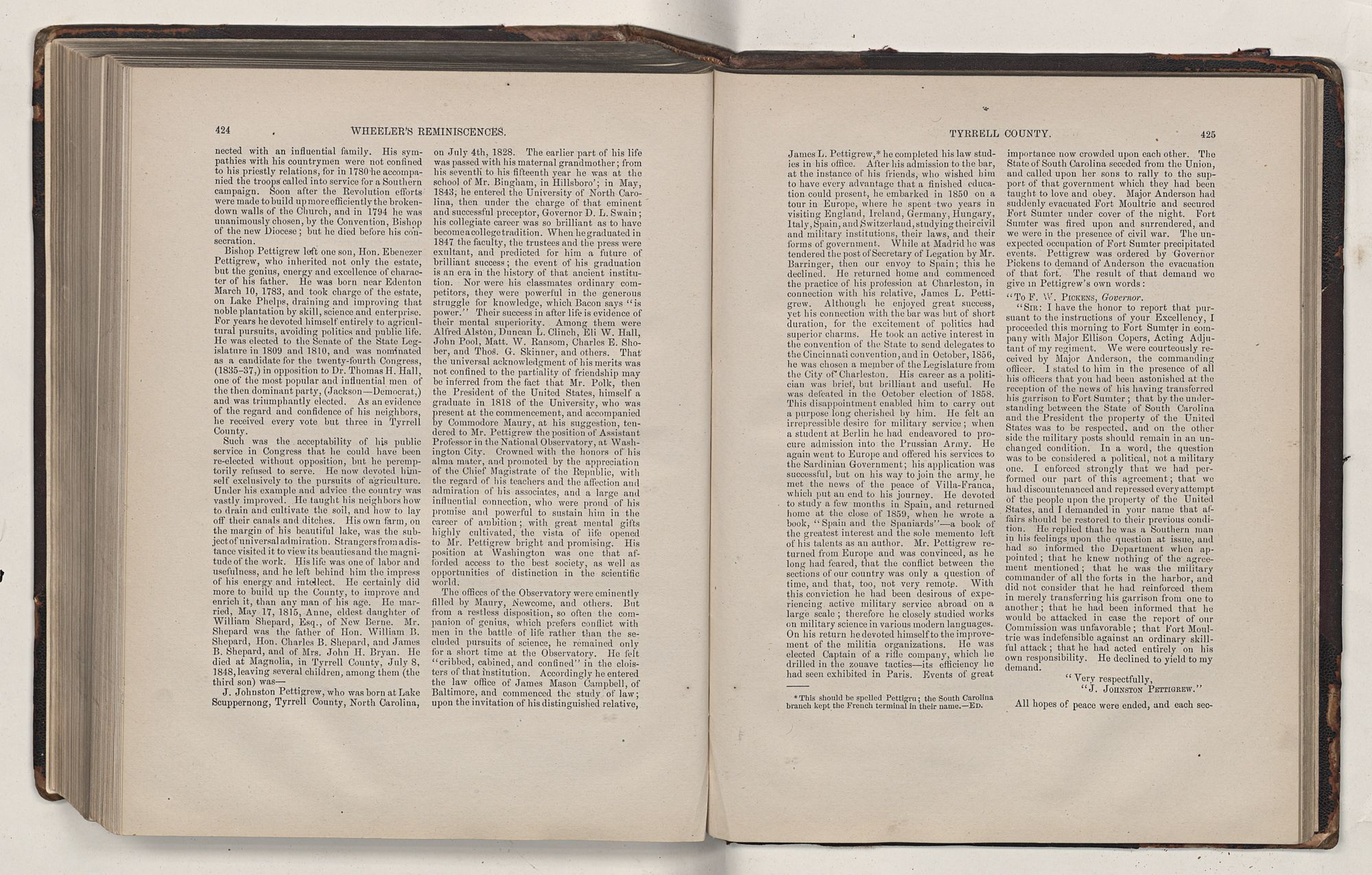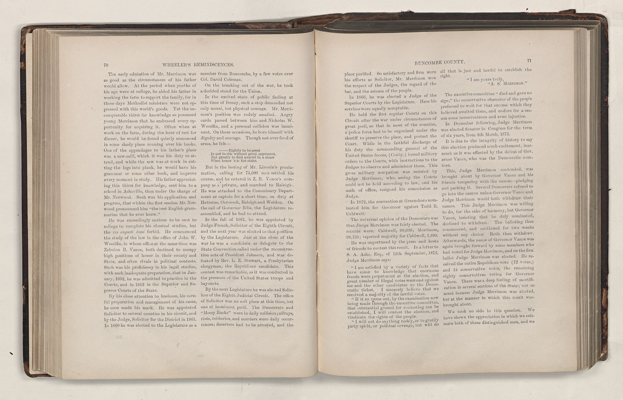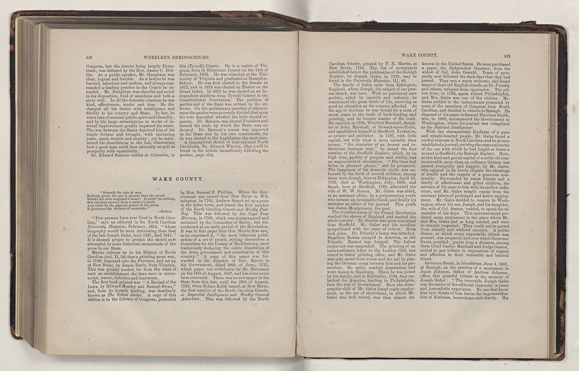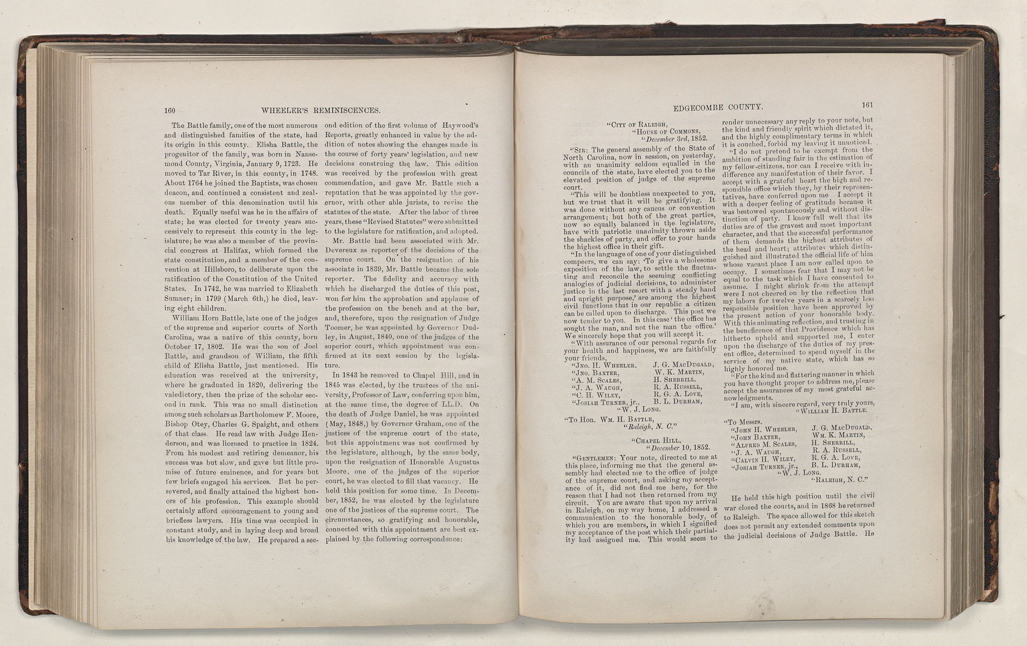Your letter further adds, that you “have seen in the Raleigh Observer, a handsome tribute to the value and usefulness of my History of North Carolina, expressing a wish for an early publication of a second edition, uniting yourself in a similar request.